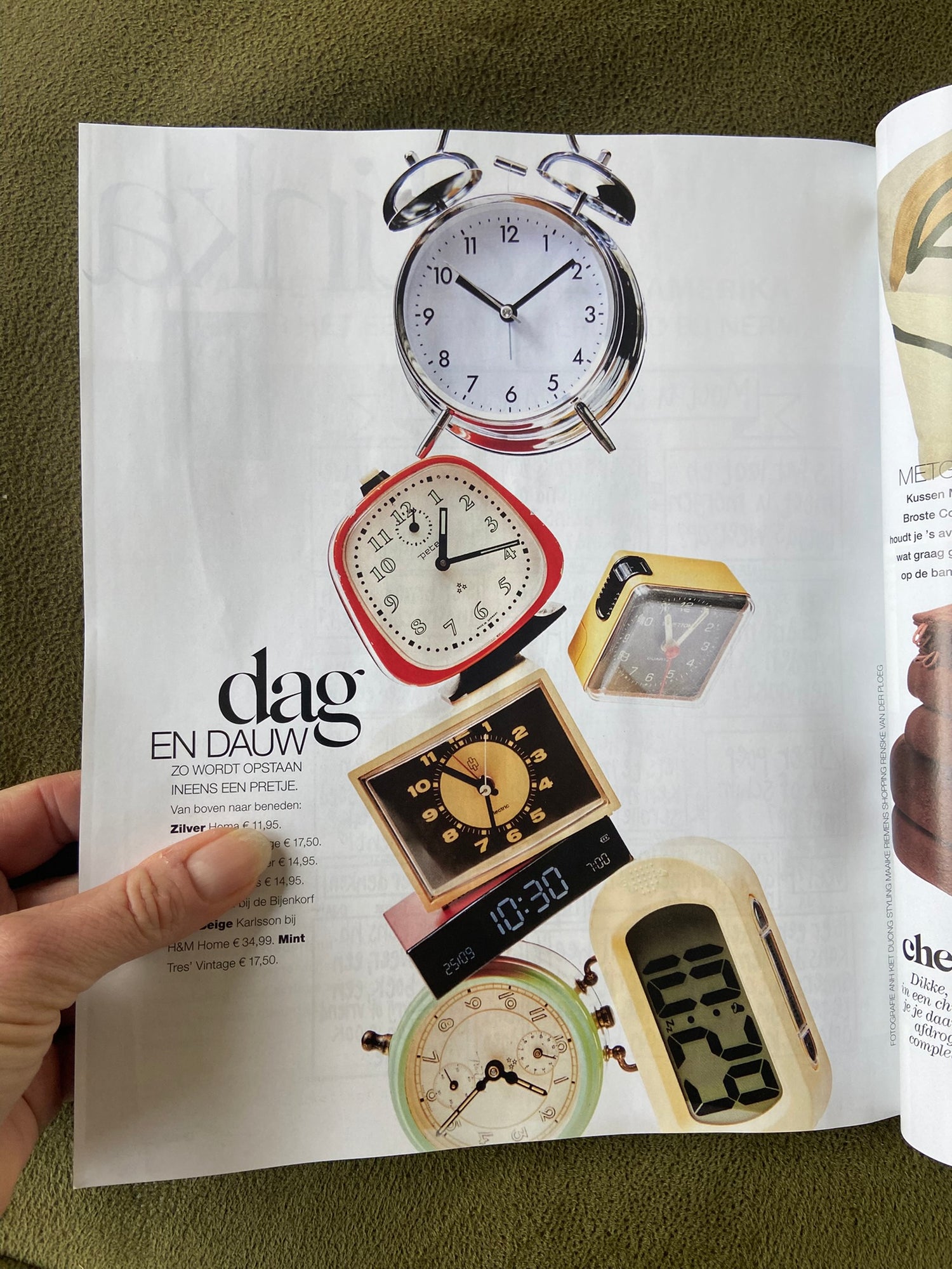 In het laatste nummer van 2024 van de Linda. (246), stonden een paar van mijn vintage wekkers! Wat staan ze tof op de foto zeg. Zo blij mee.