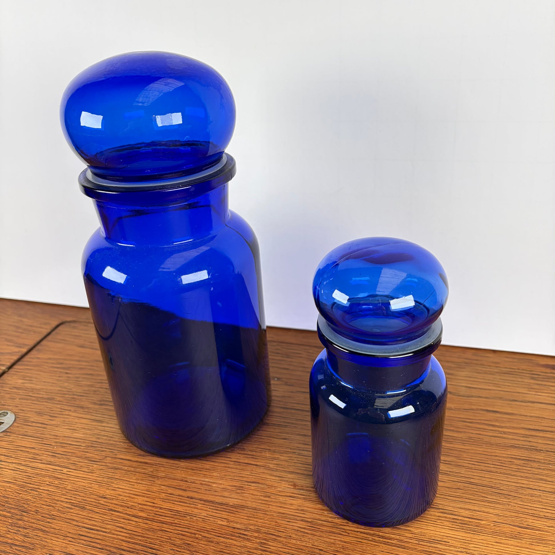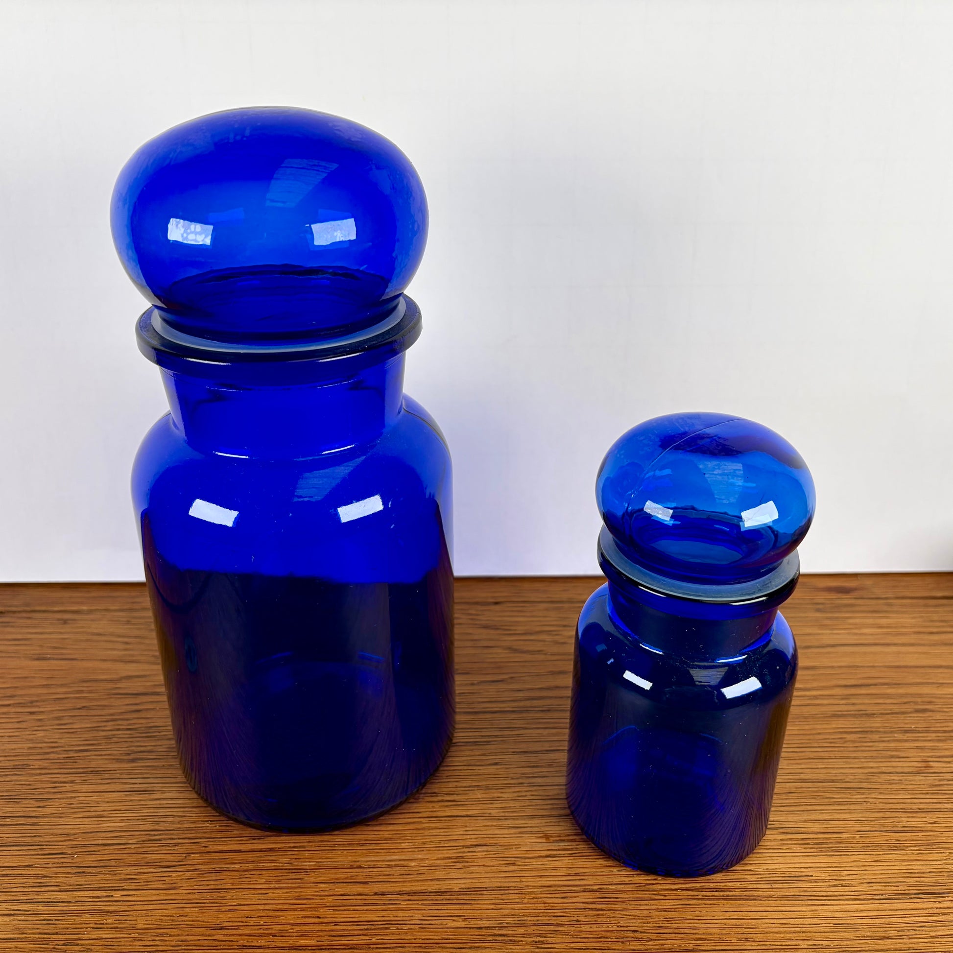 Prachtige set van 2 blauw apothekerspotten van blauw glas.