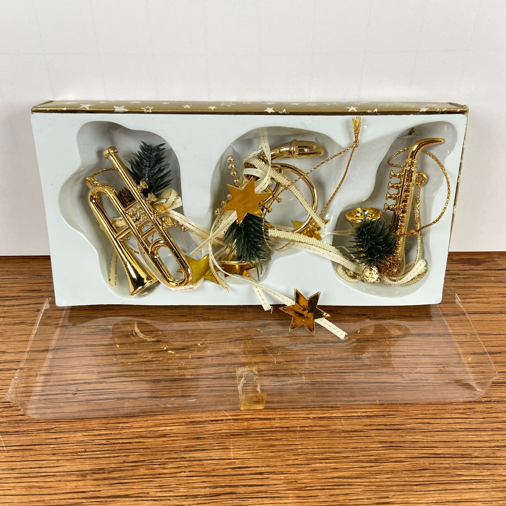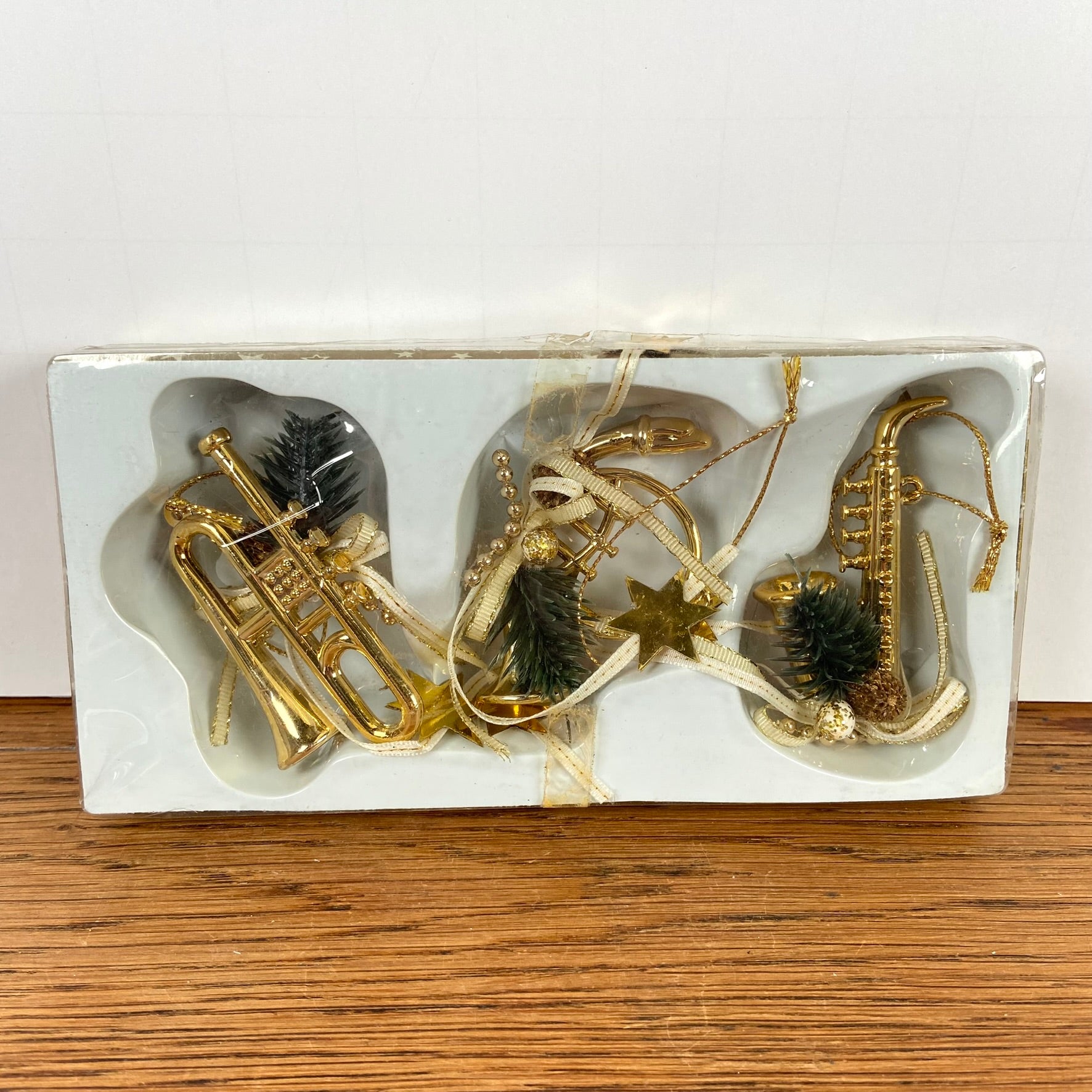 - 3 messing - goudkleurige plastic muziek hangers voor in de kerstboom.