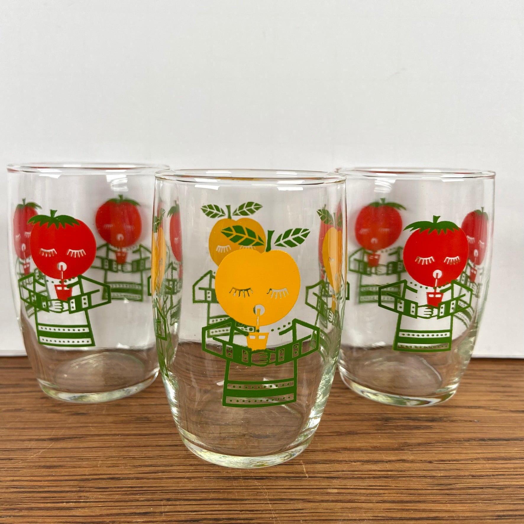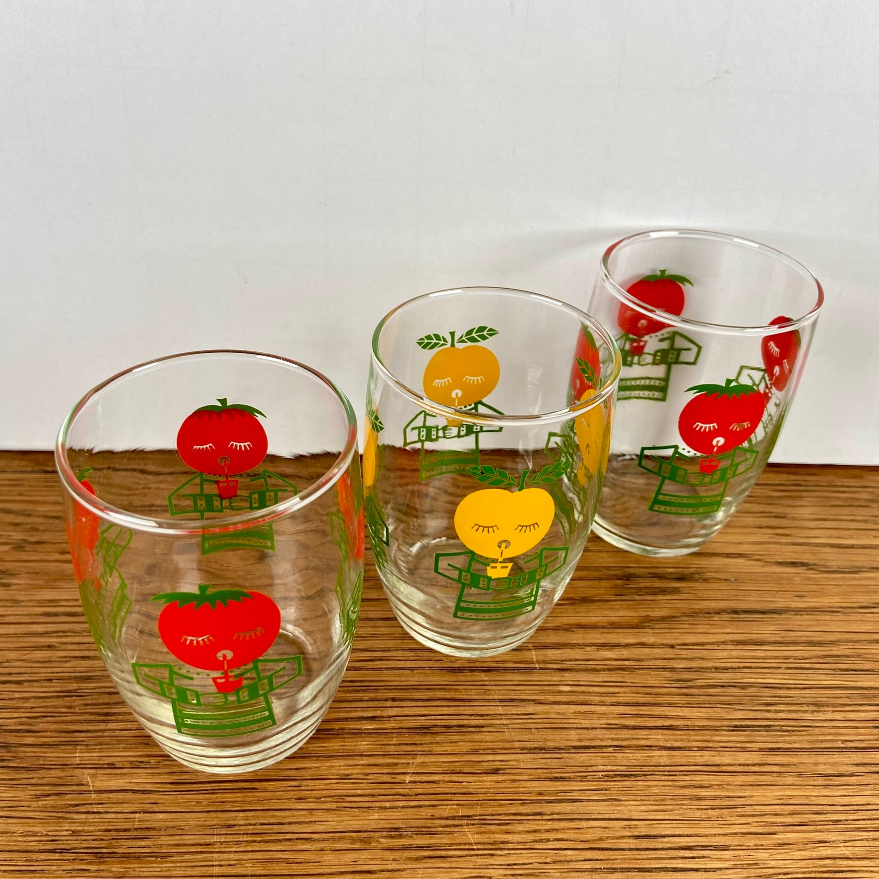 3 vintage glaasjes rood geel
