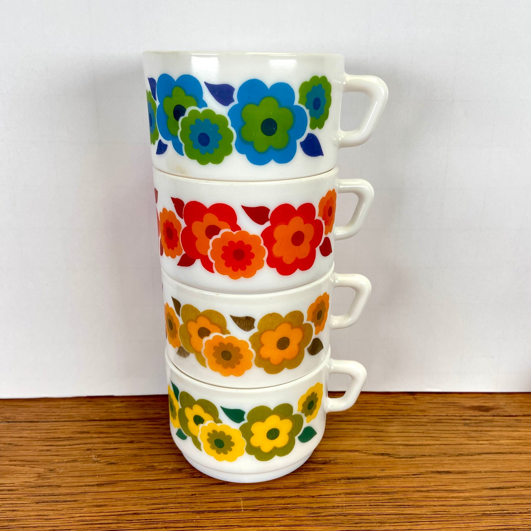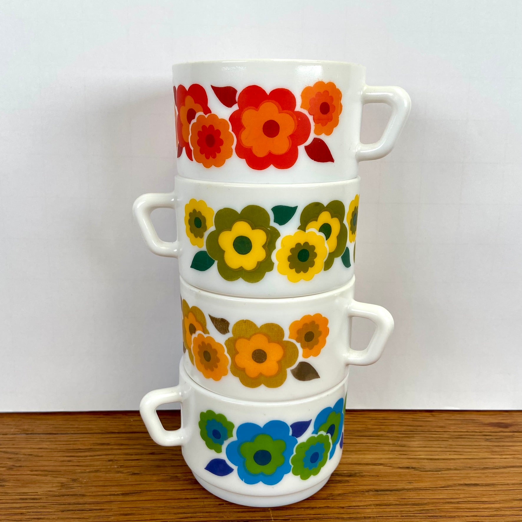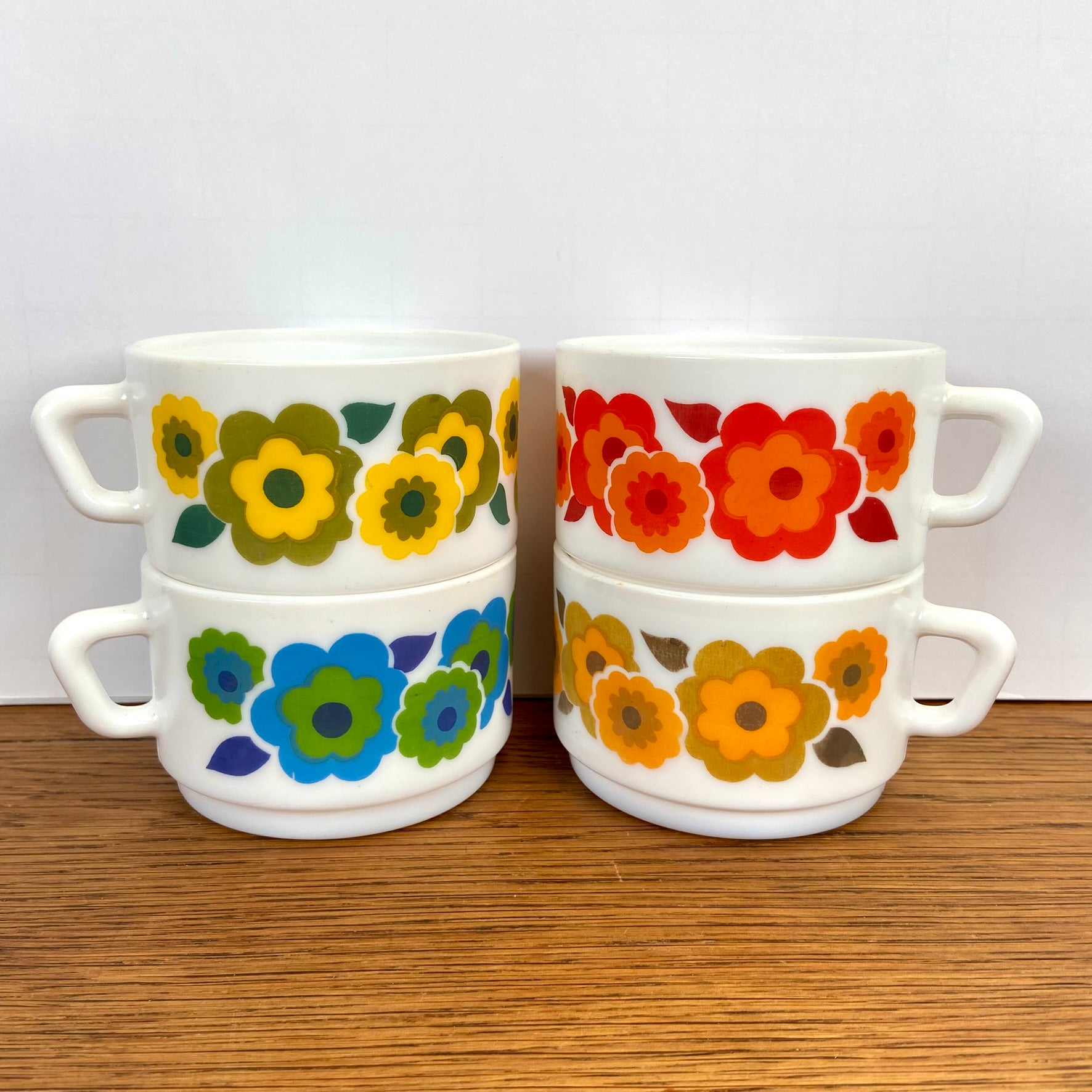 - 4 grote vintage mokken van het Arcopal Lotus servies