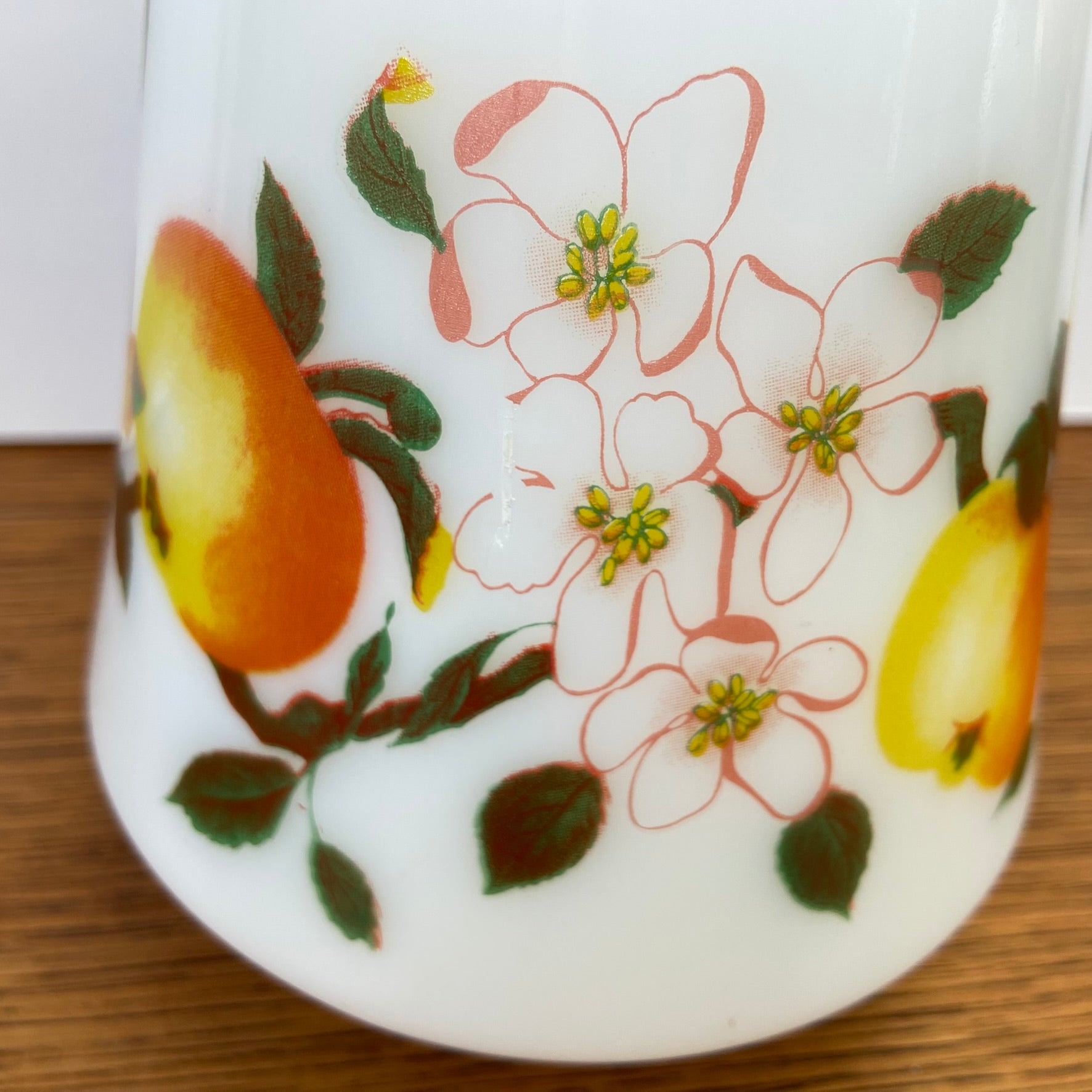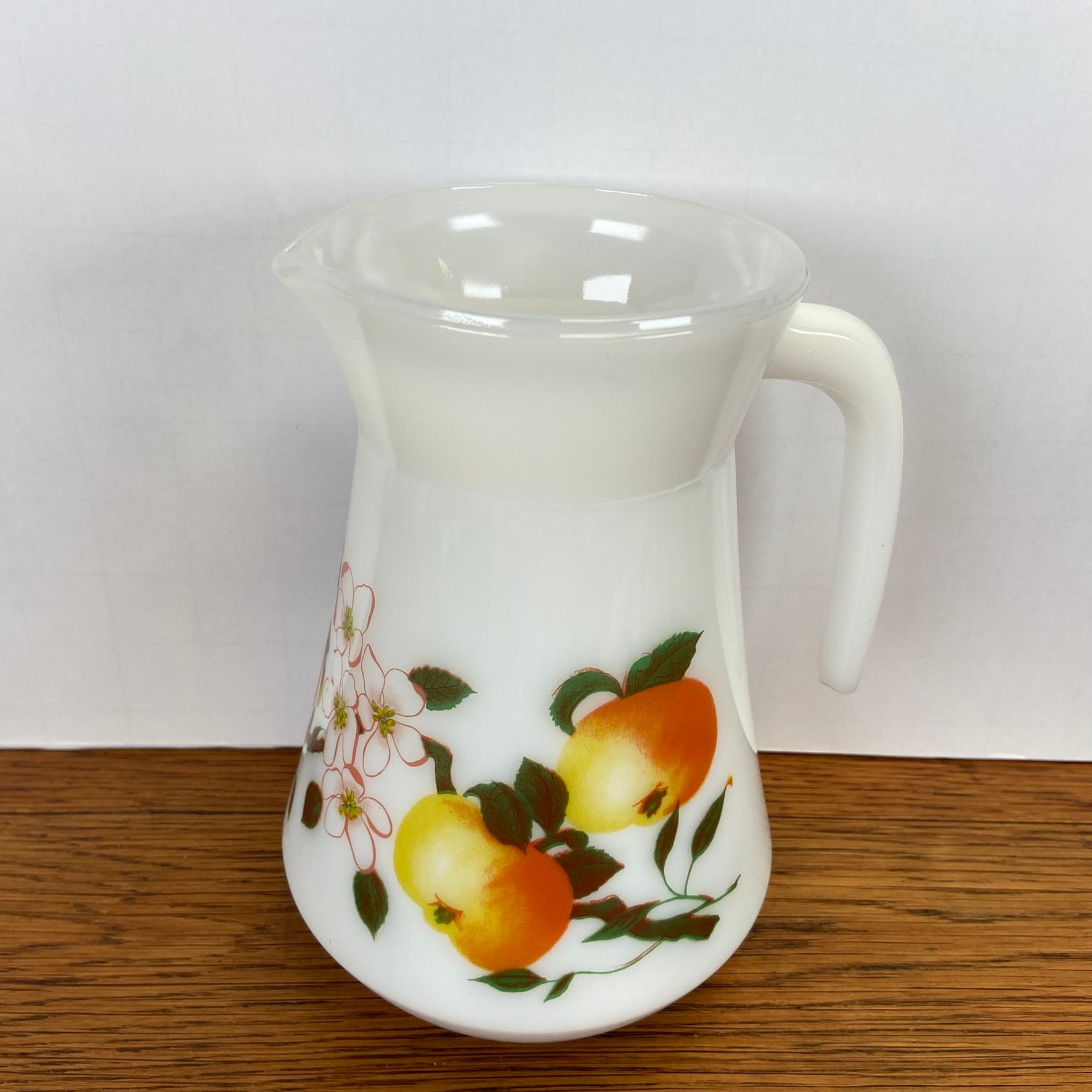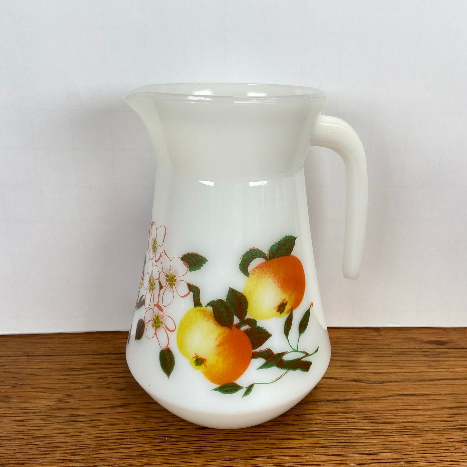 - Deze mooie kan heeft 2 kleine plekjes/beschadigingen. 1 aan de buitenkant op de appel en 1 aan de binnenkant. Prijs erop aangepast