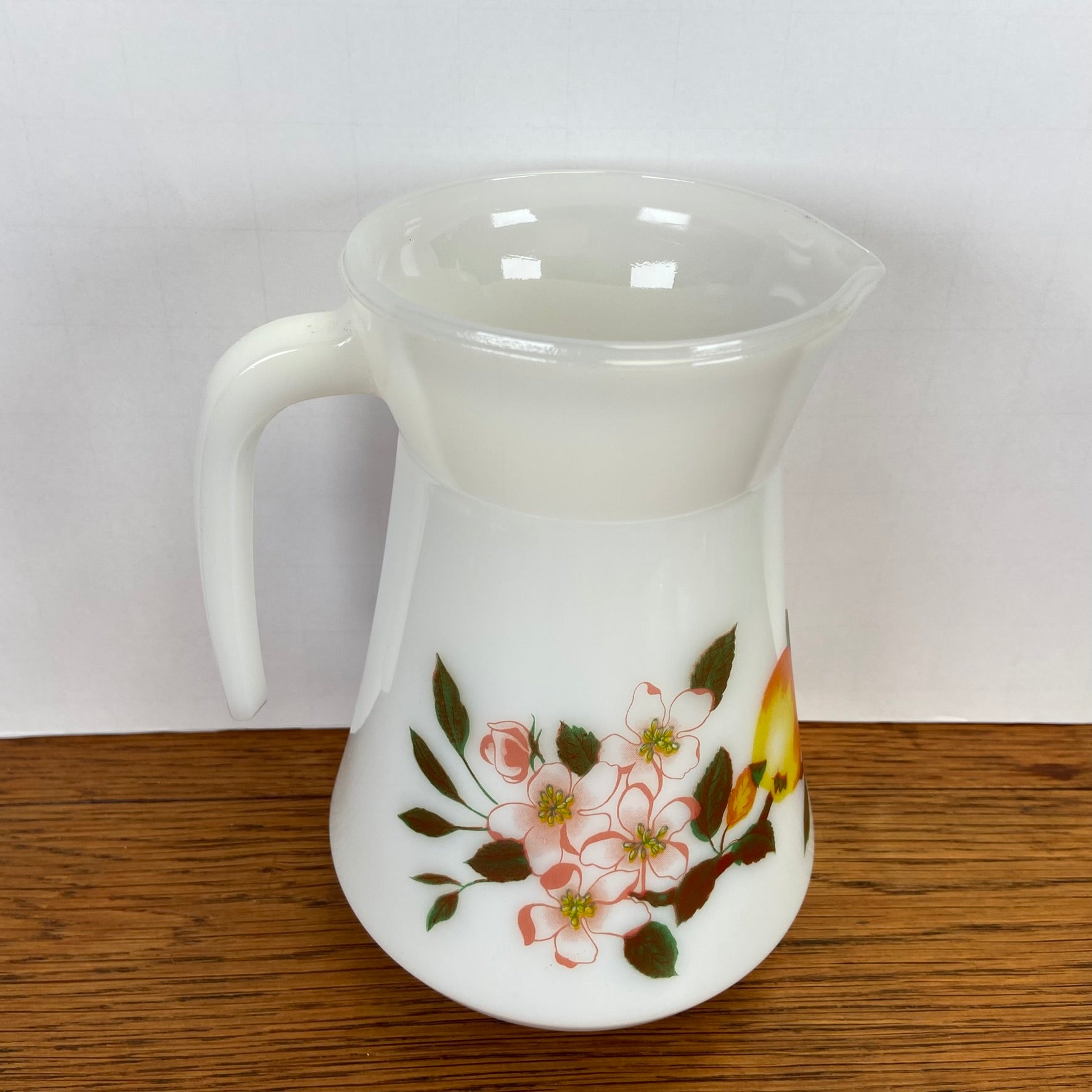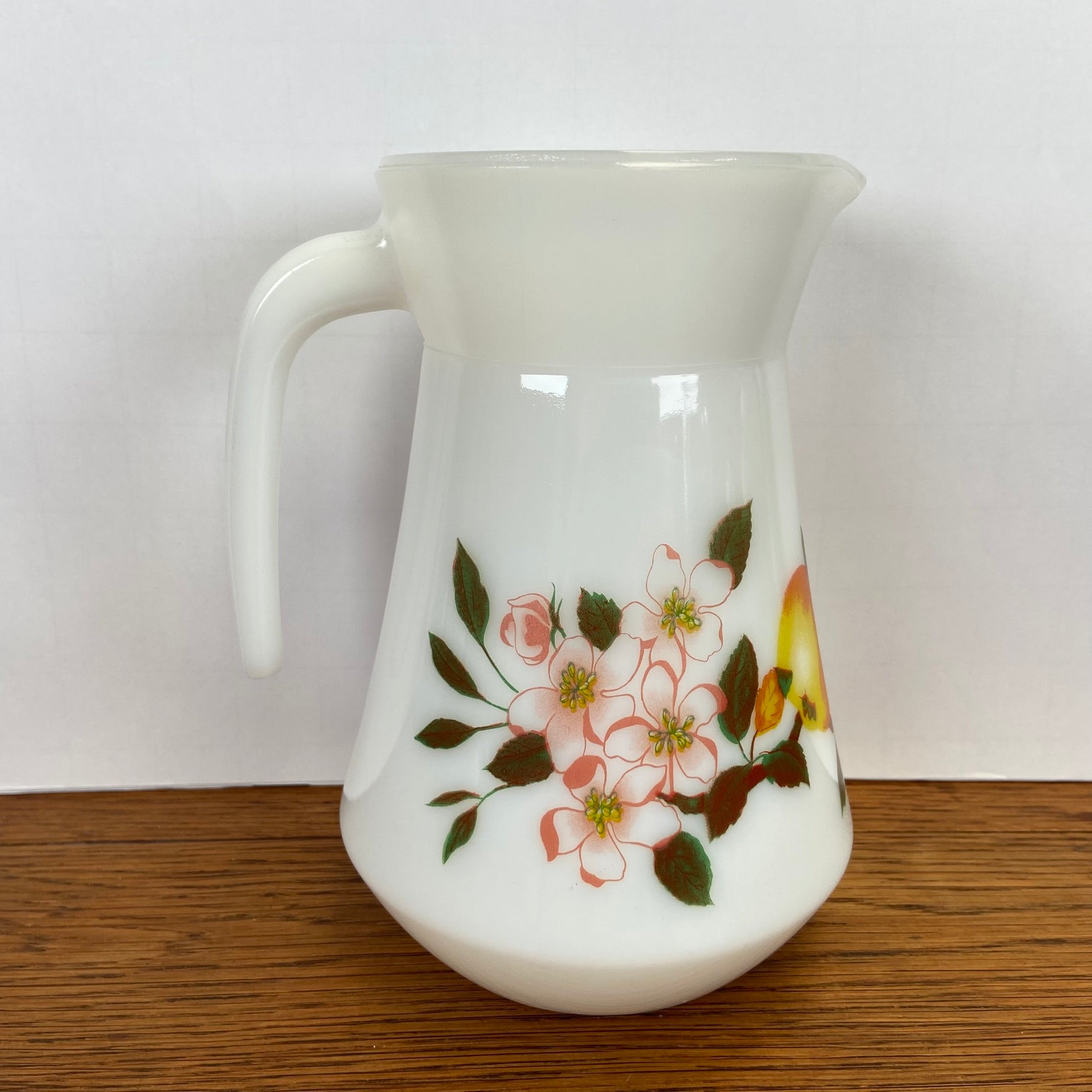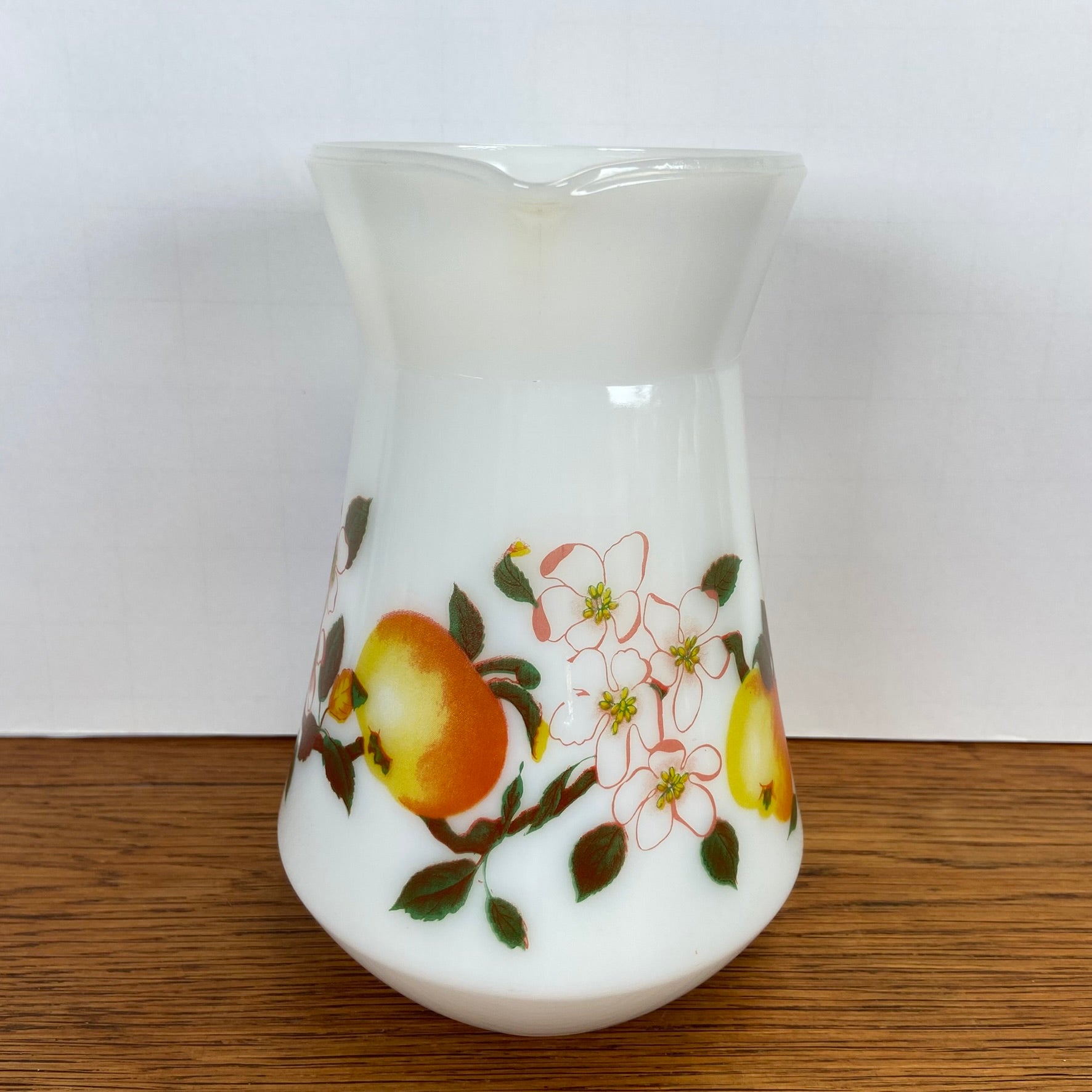 - Deze mooie kan heeft 2 kleine plekjes/beschadigingen. 1 aan de buitenkant op de appel en 1 aan de binnenkant. Prijs erop aangepast