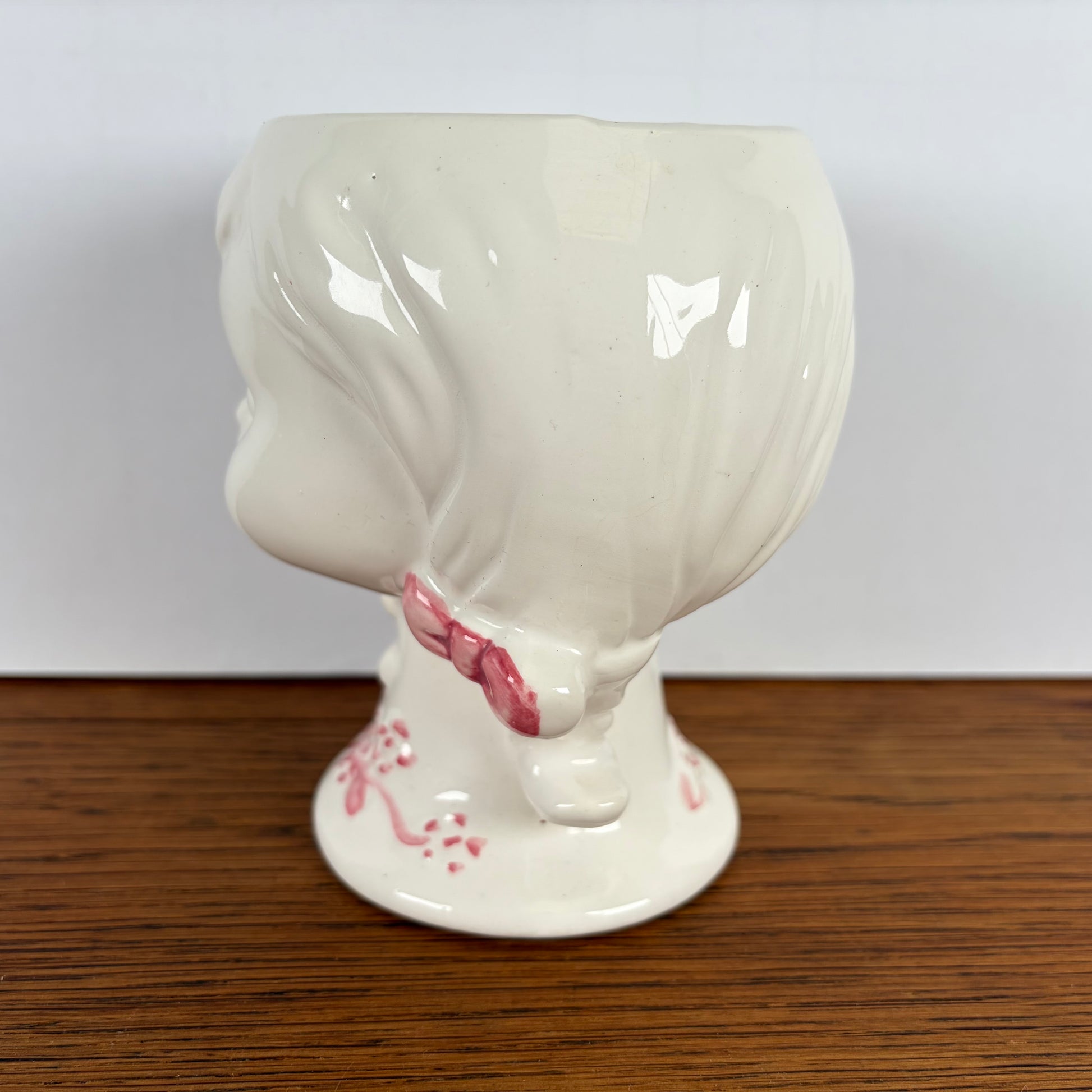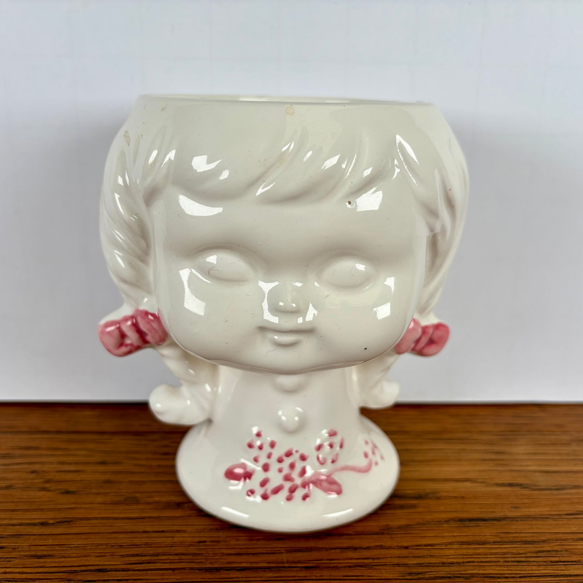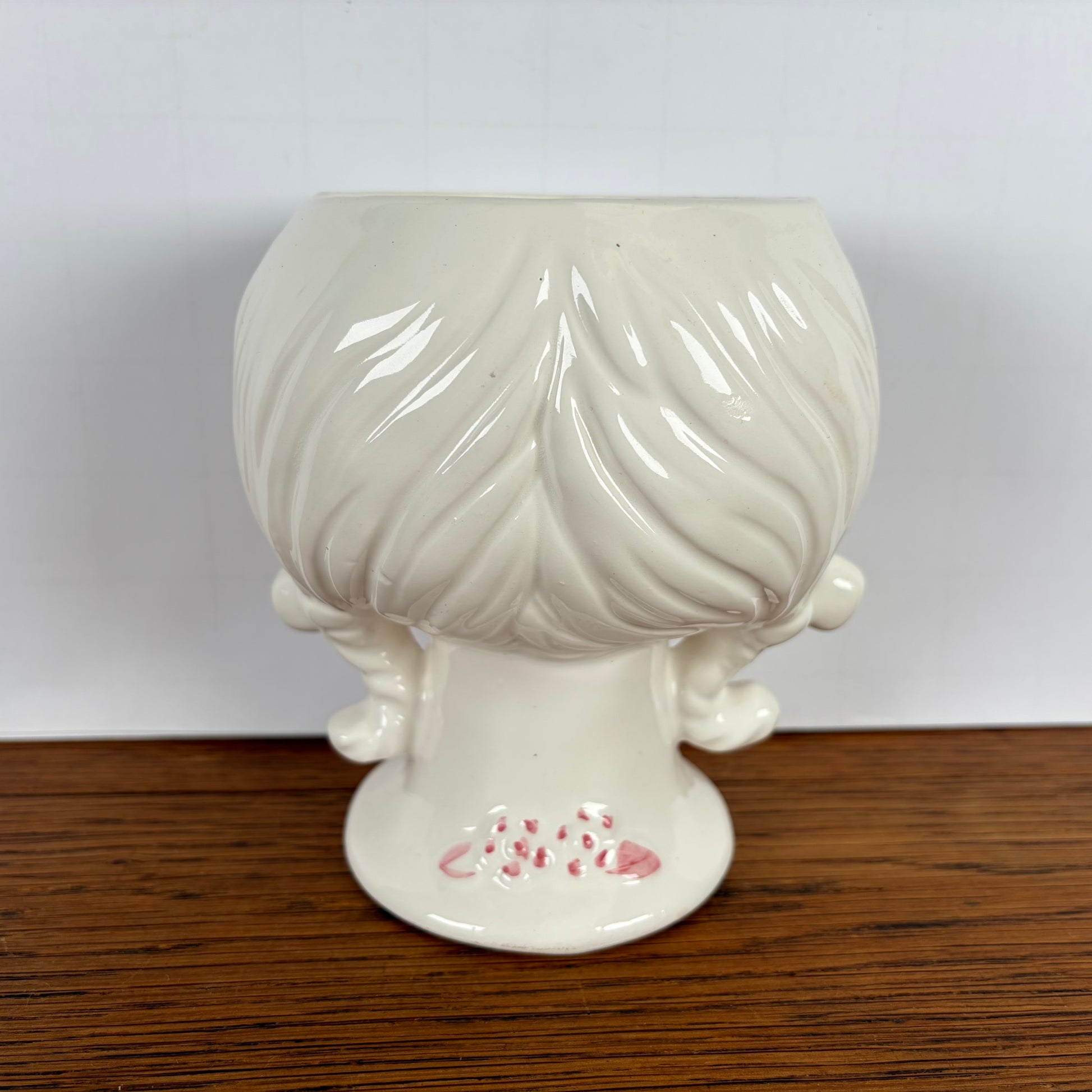 - Vintage bloempotje in de vorm van een meisjeshoofd met vlechtjes.