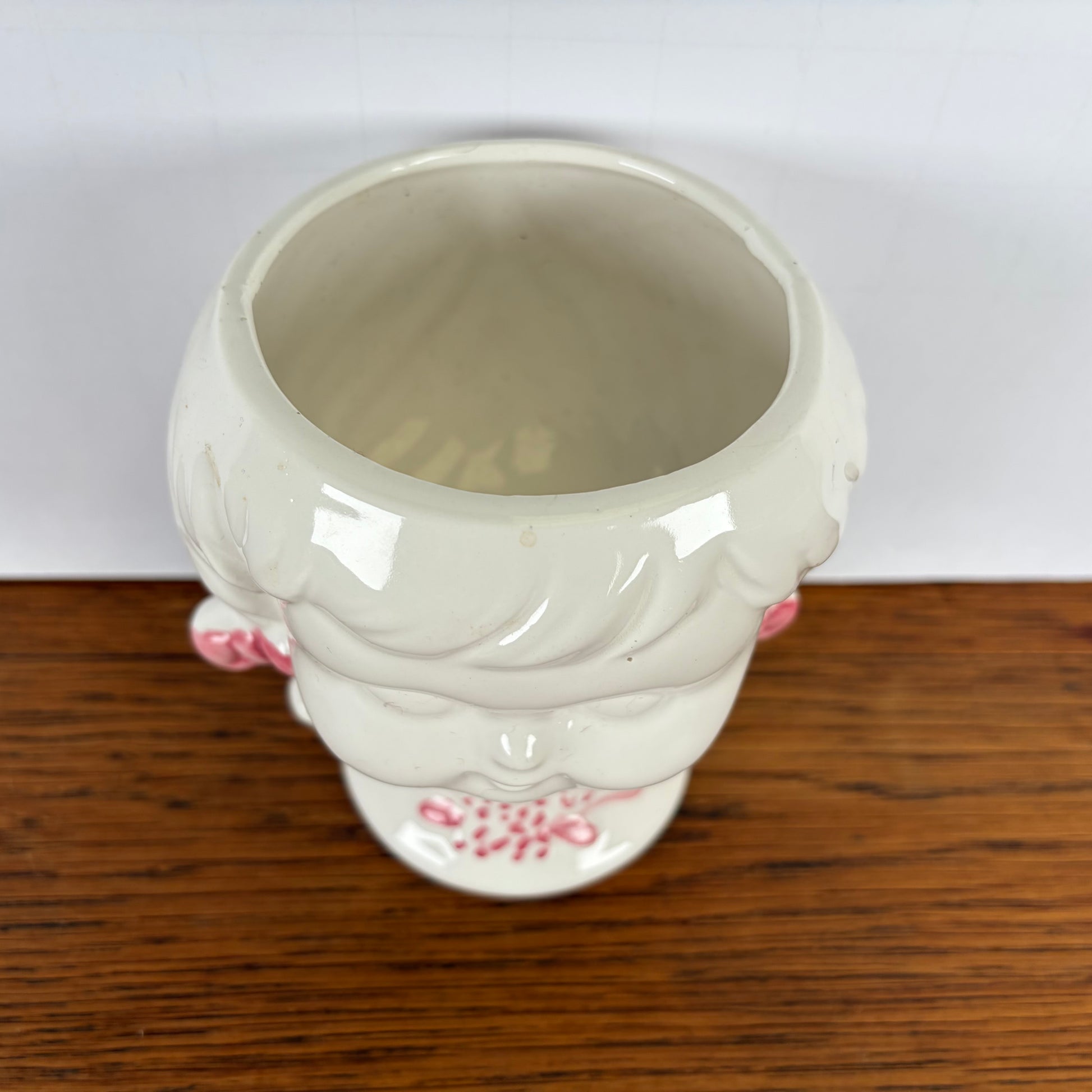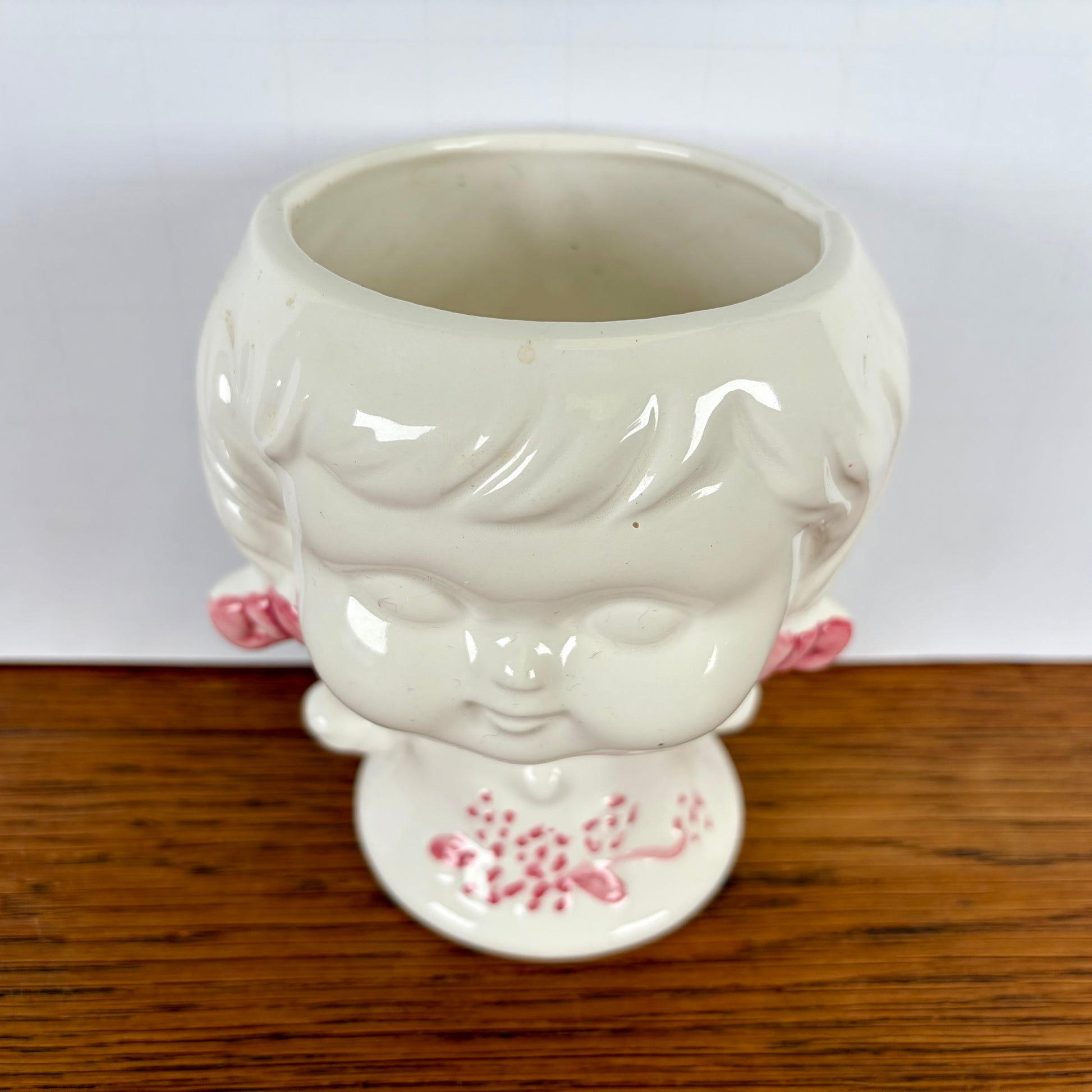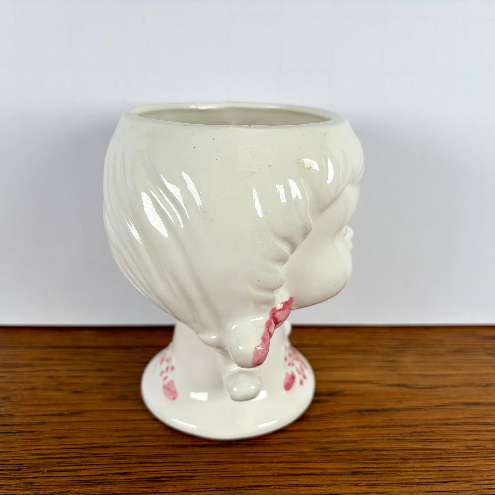 - Vintage bloempotje in de vorm van een meisjeshoofd met vlechtjes.