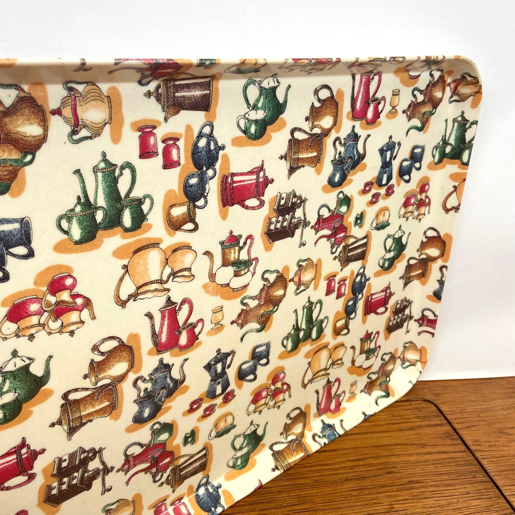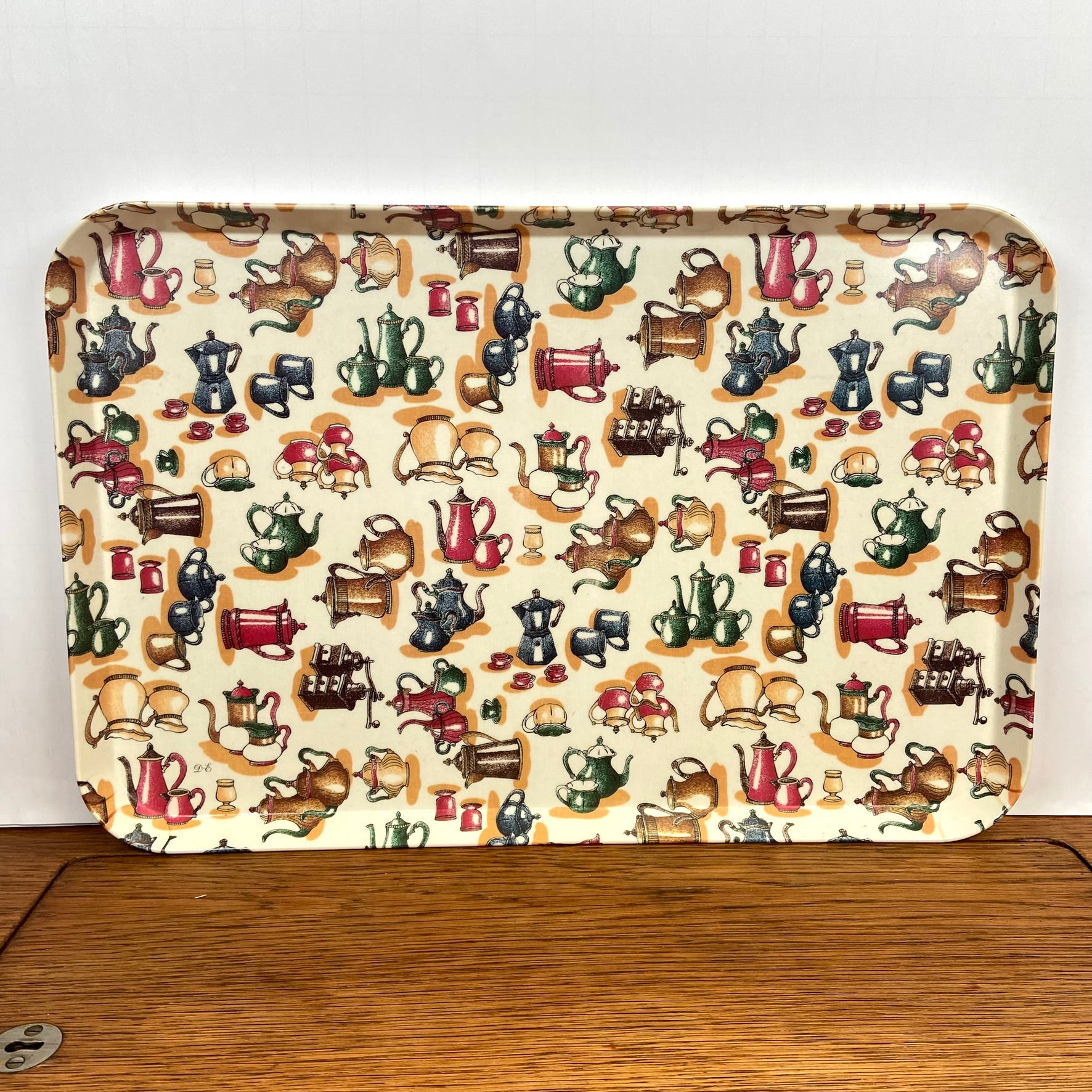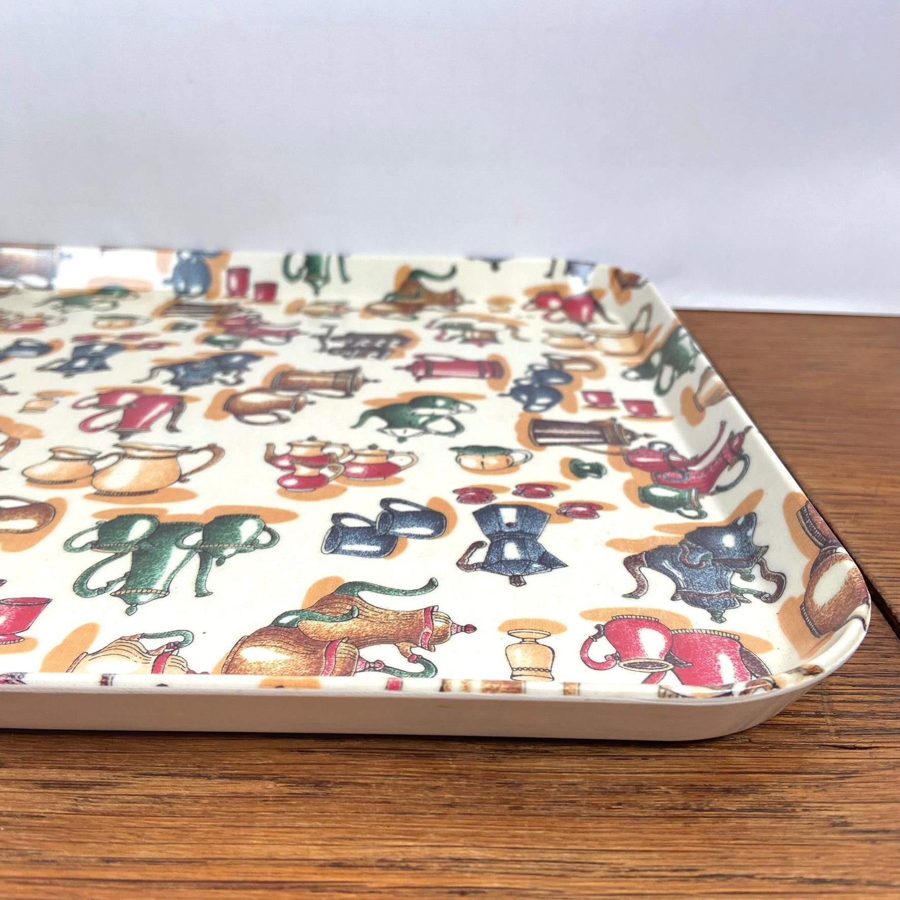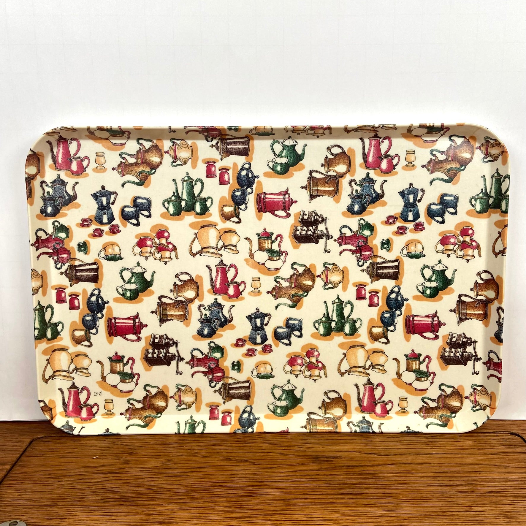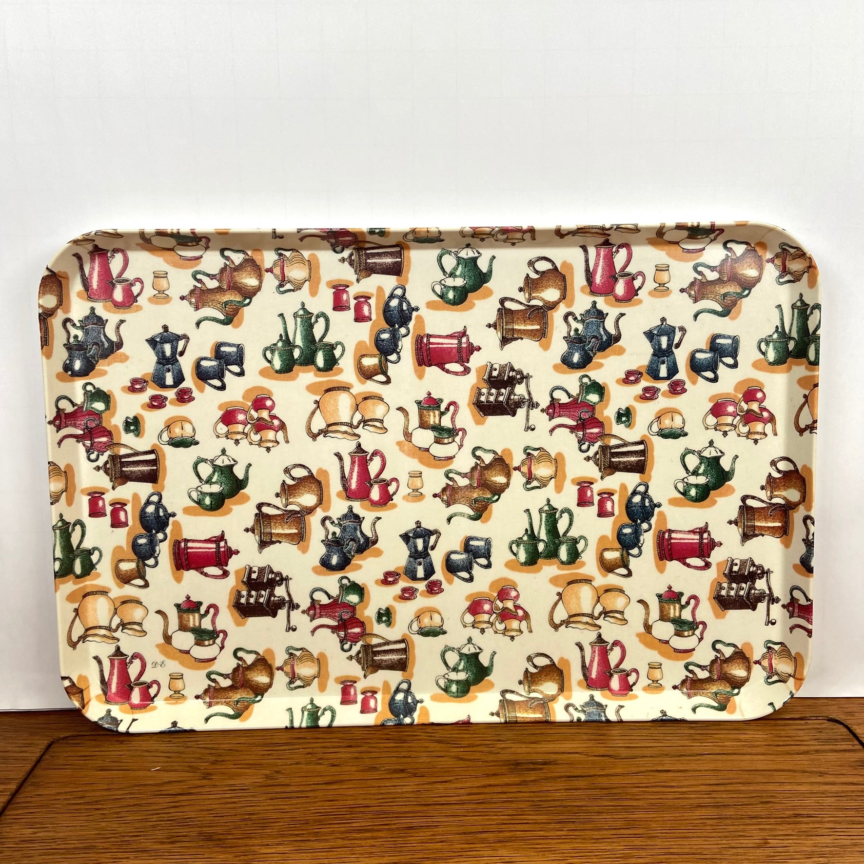 - Super tof dienblad met afbeeldingen van diverse theepotten.