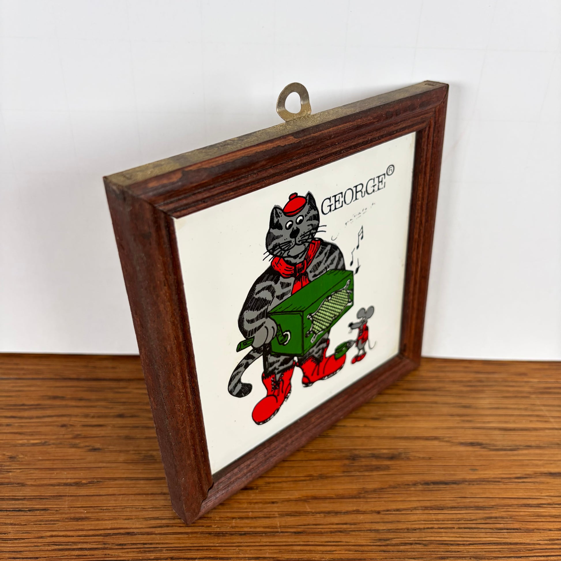 - Vintage tegeltje in houten lijstje van Happy Cat Design, Jacques Delange