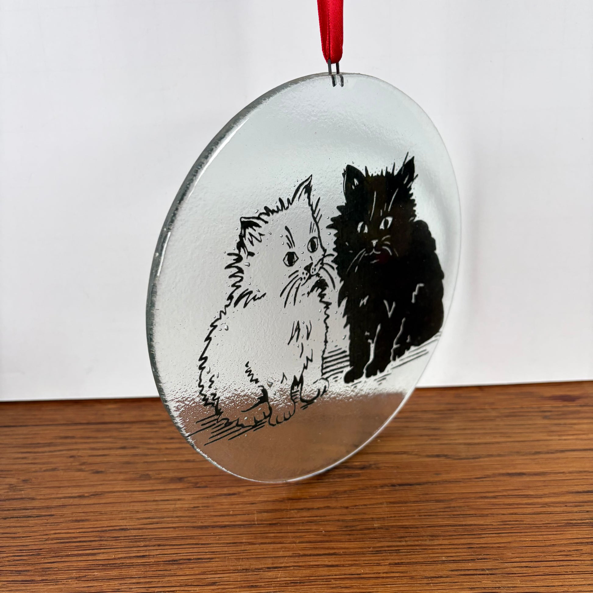 - Mooie ronde glazen raamhanger met 2 katten.