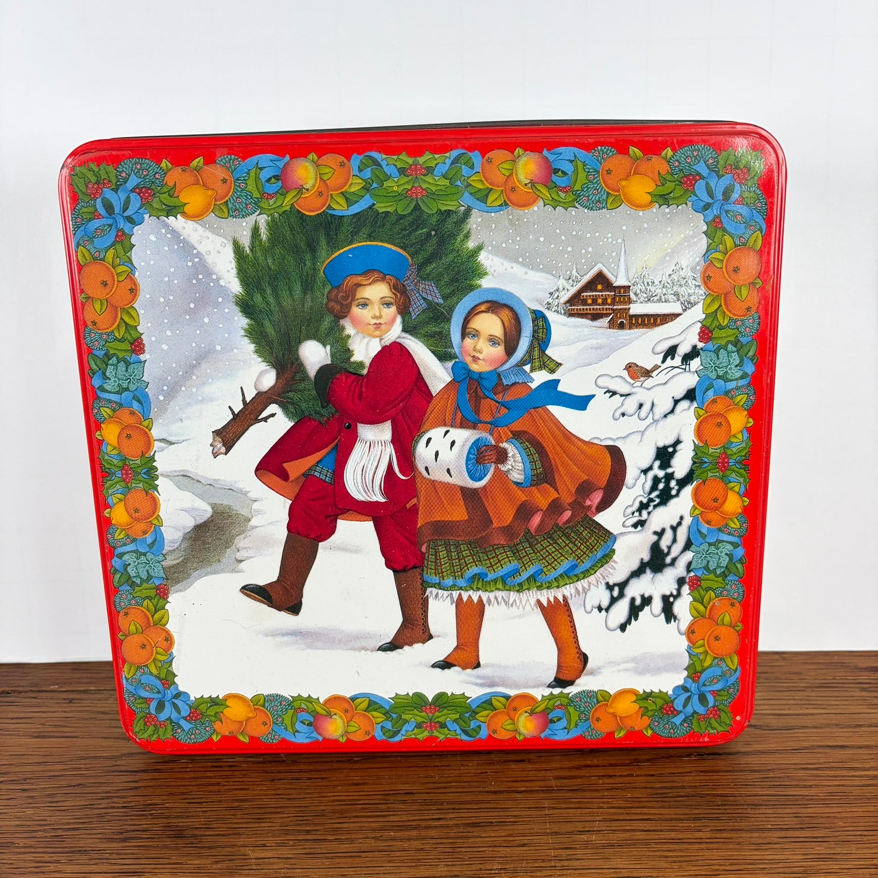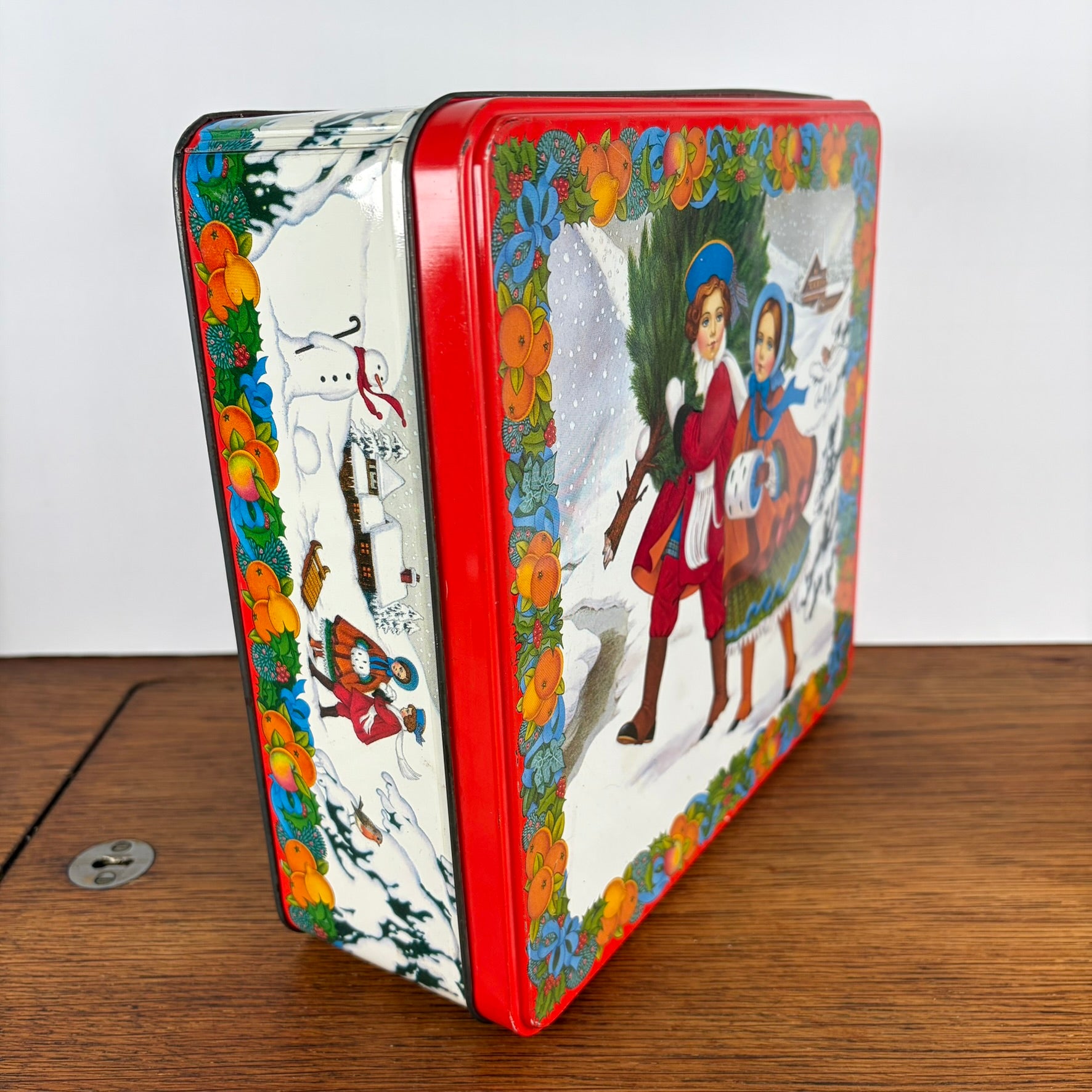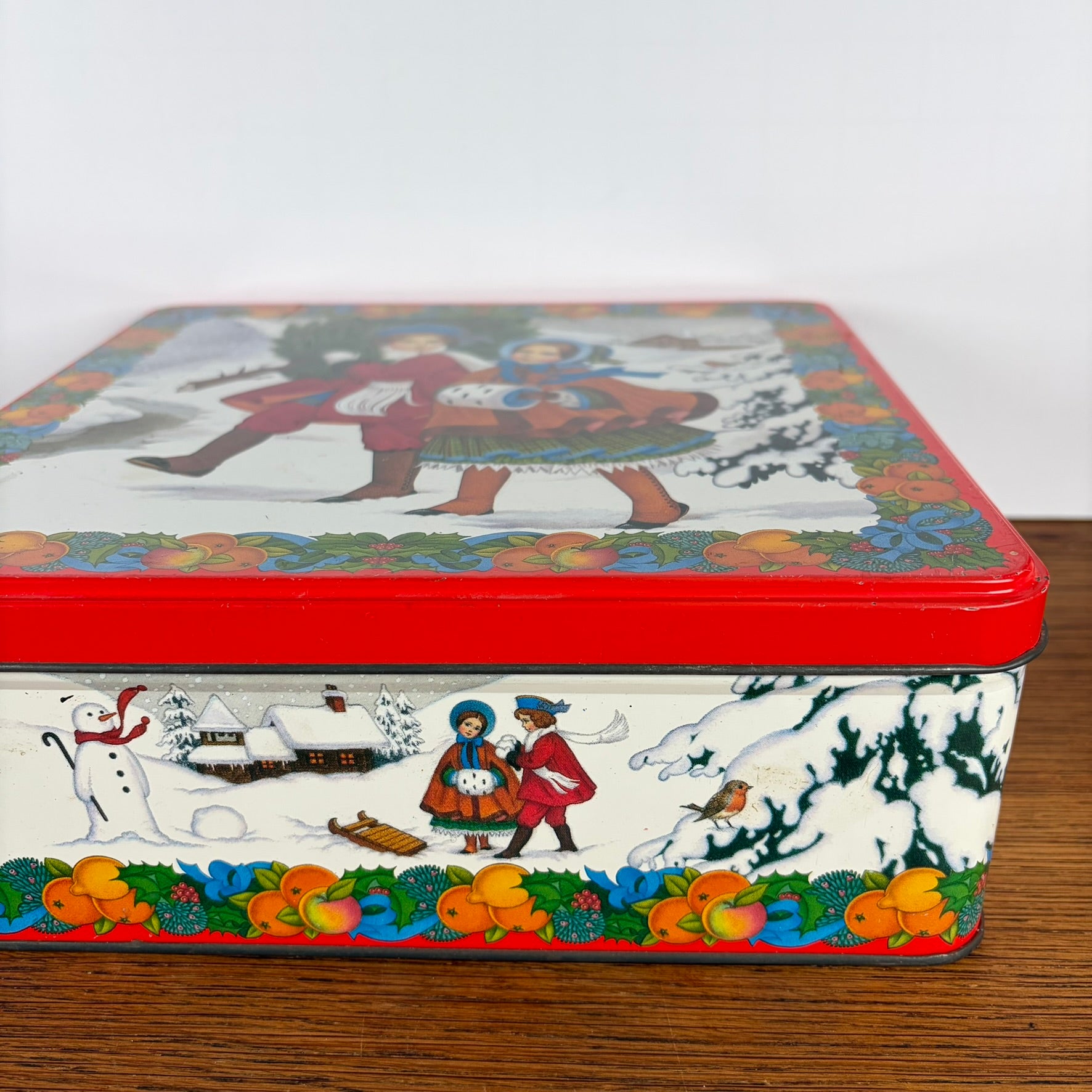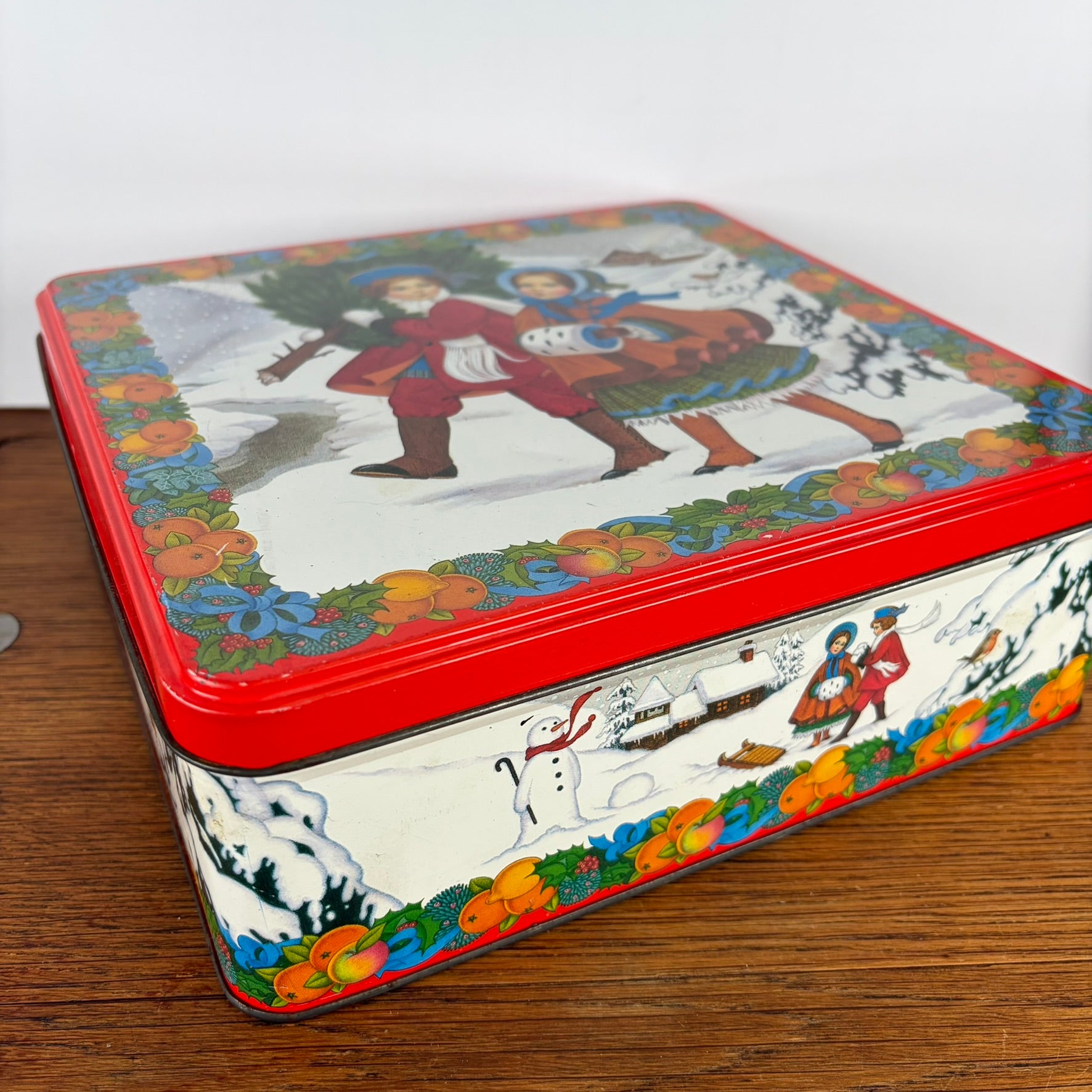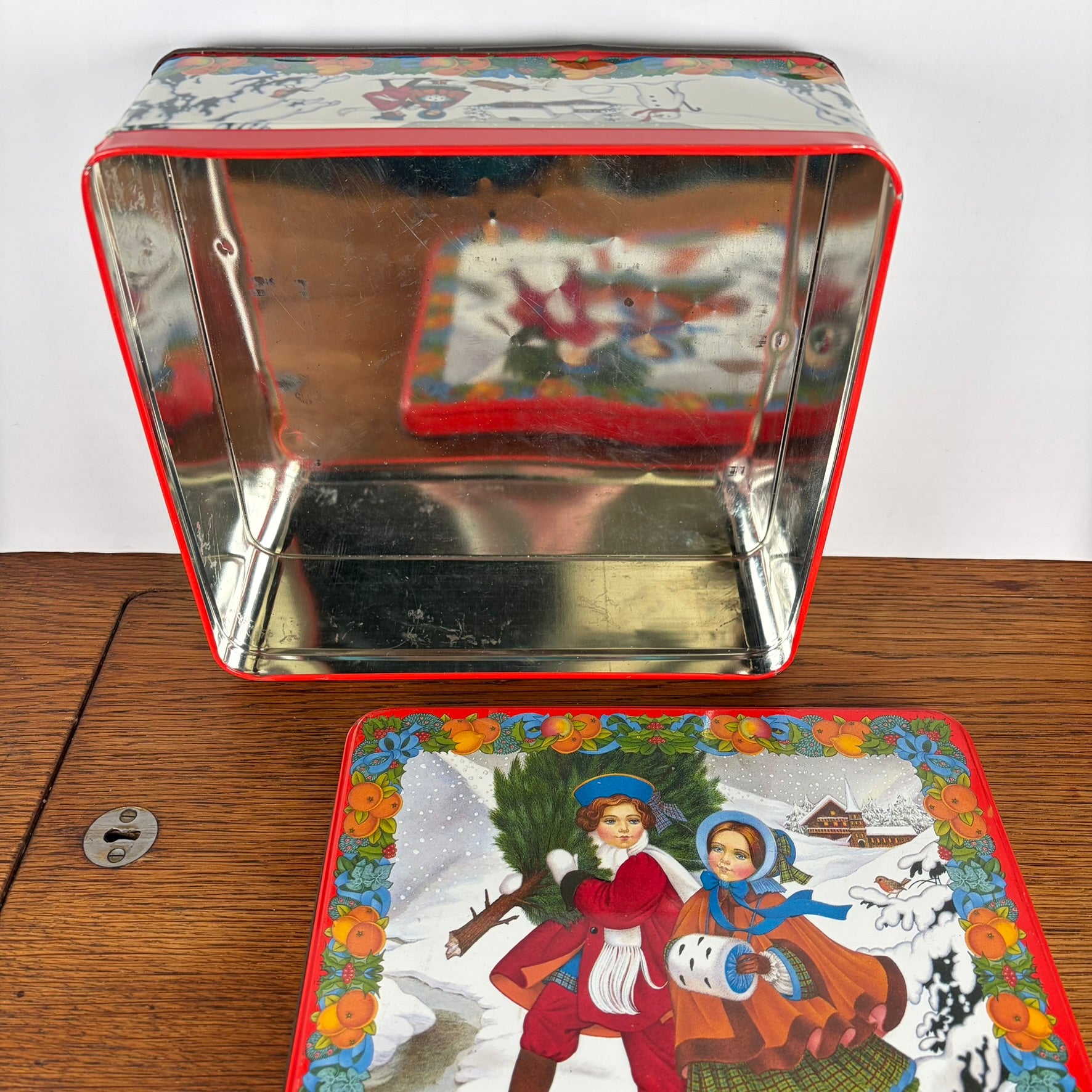 - Mooi groot vierkant kerstblik, koekjestrommel.