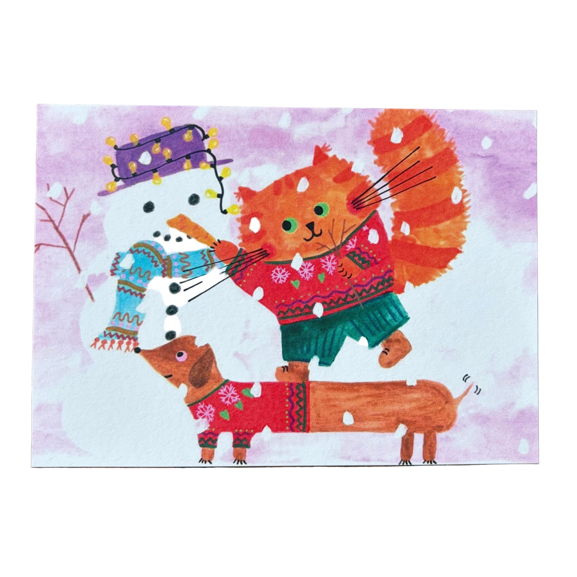 - Kaart van Poes Pompoen met teckel en sneeuwpop.