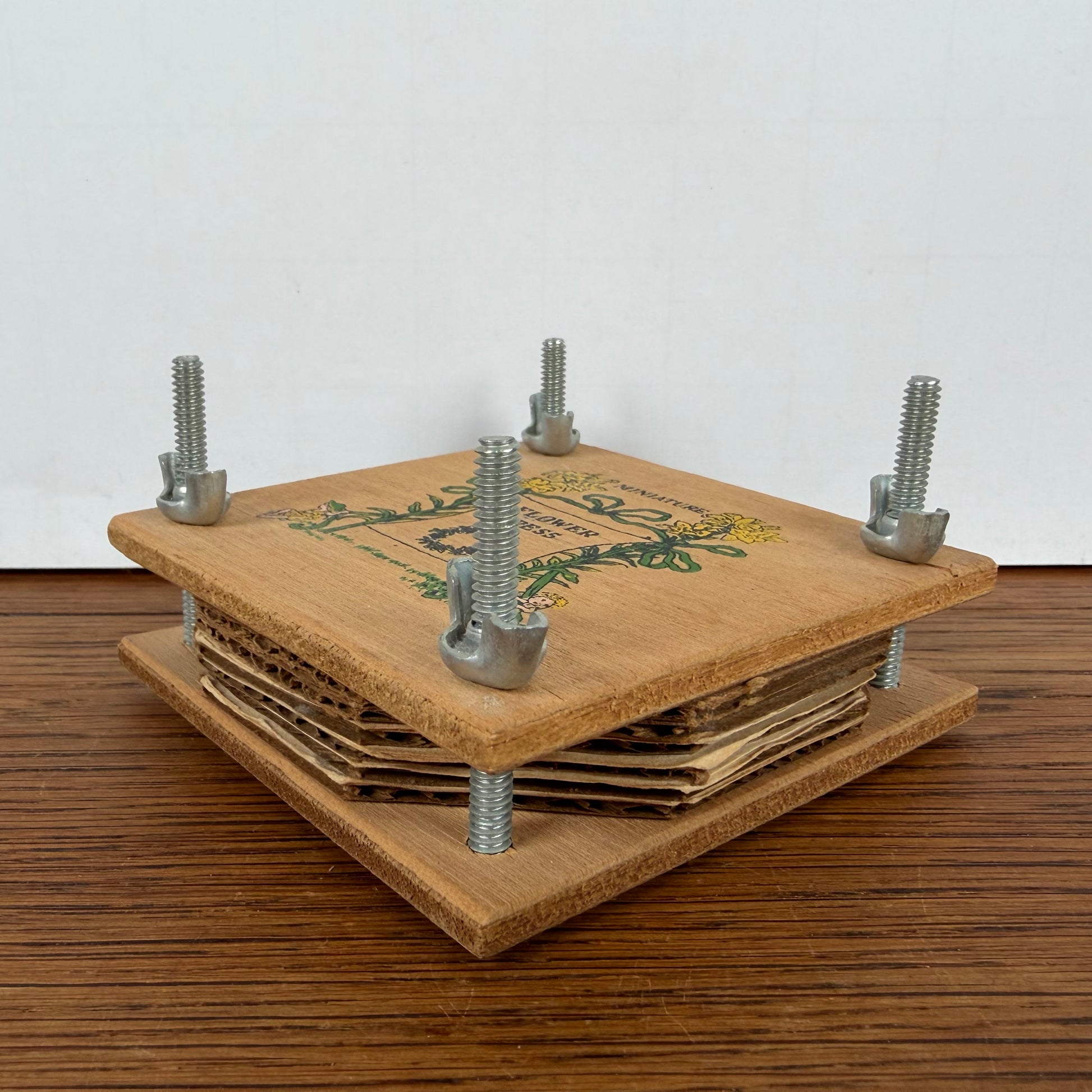 - Kleine vintage houten bloemenpers