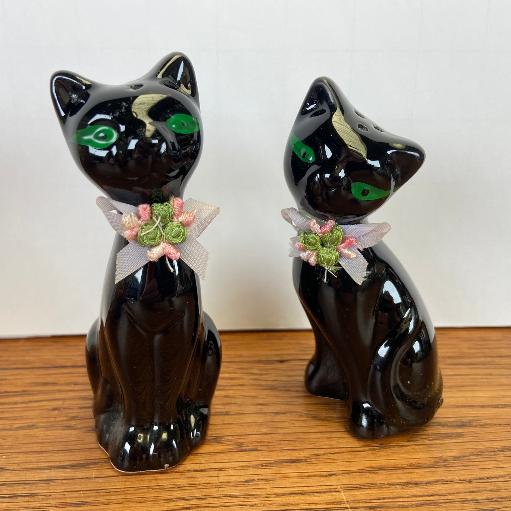 - 2 zwarte katten met strikjes om en groene ogen