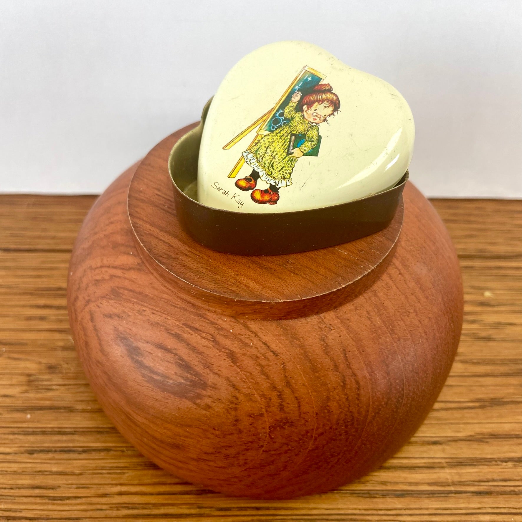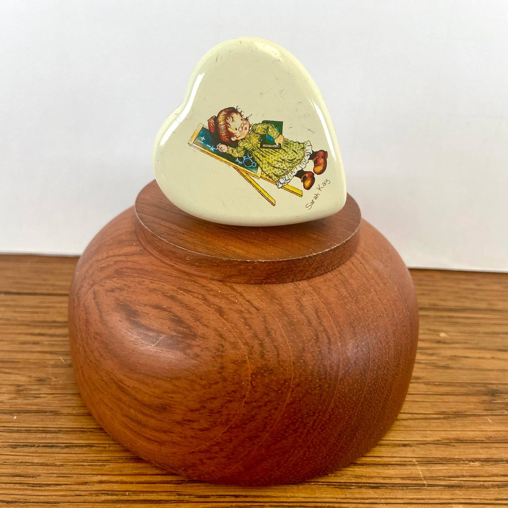 - Klein creme doosje/blikje van Sarah Kay in de vorm van een hartje.