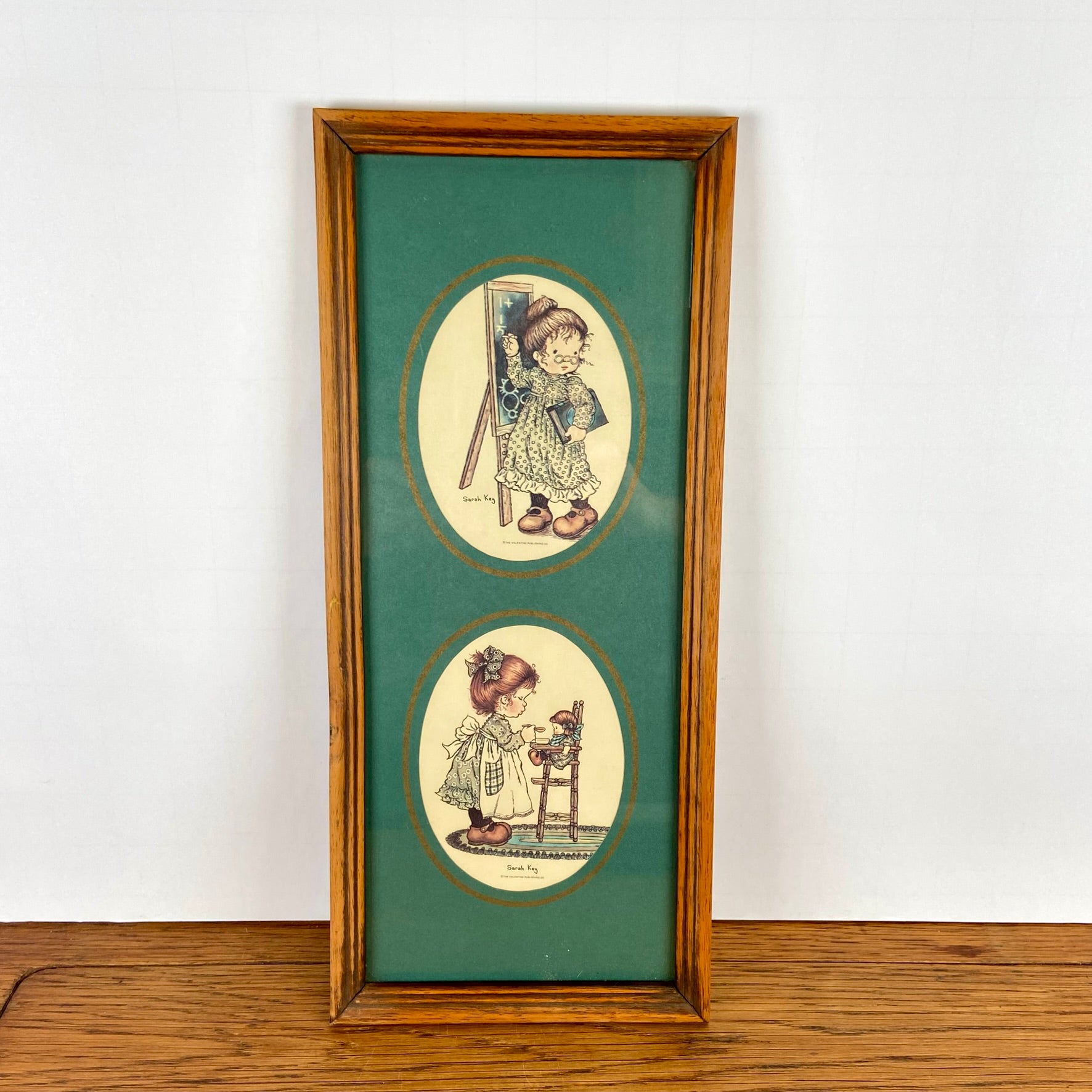 - Oud houten lijstje met Sarah Kay prentjes.