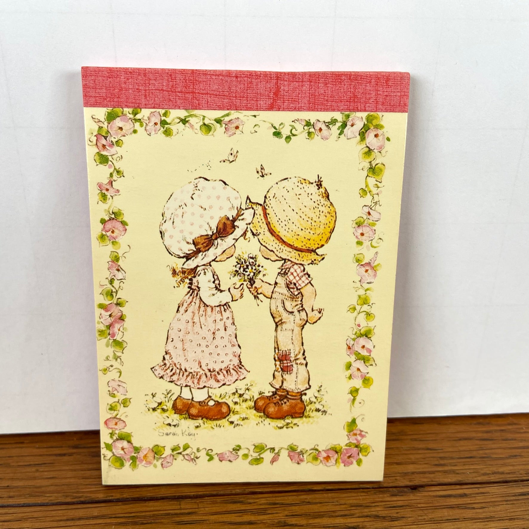 - Klein notitieblokje van Sarah Kay met roze blaadjes.