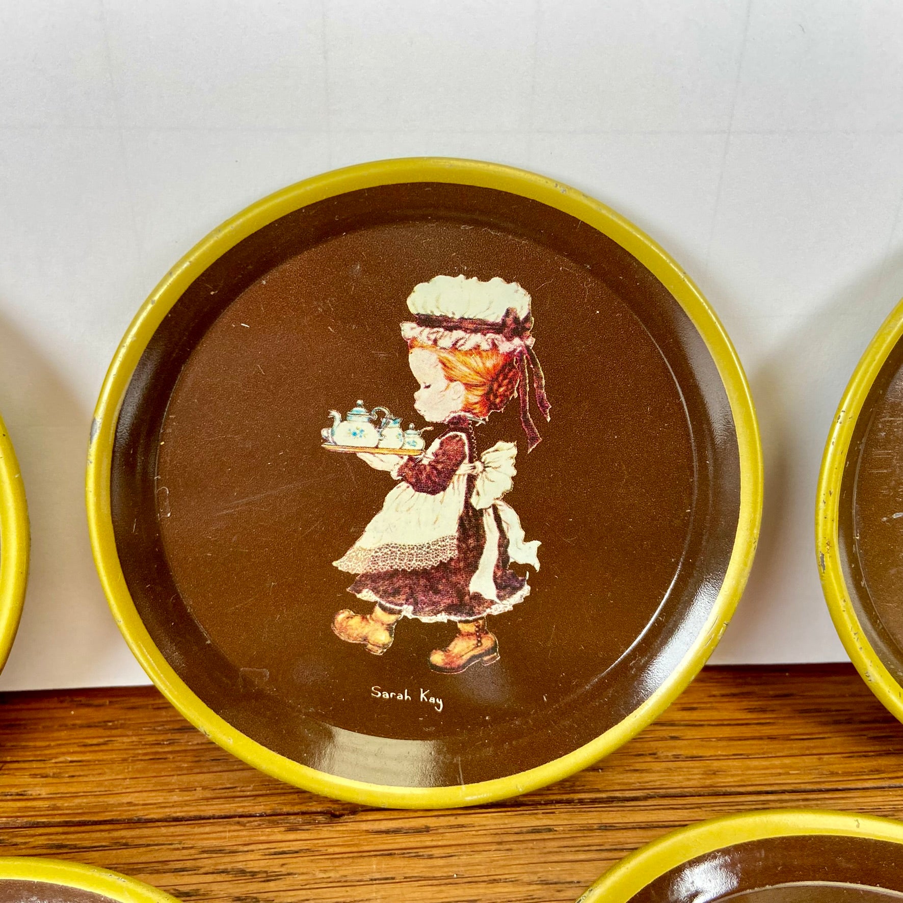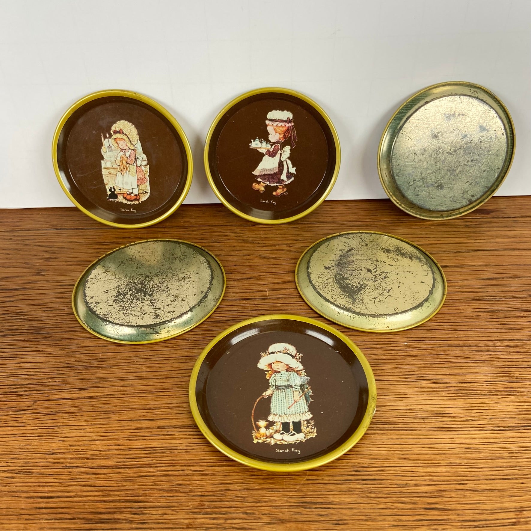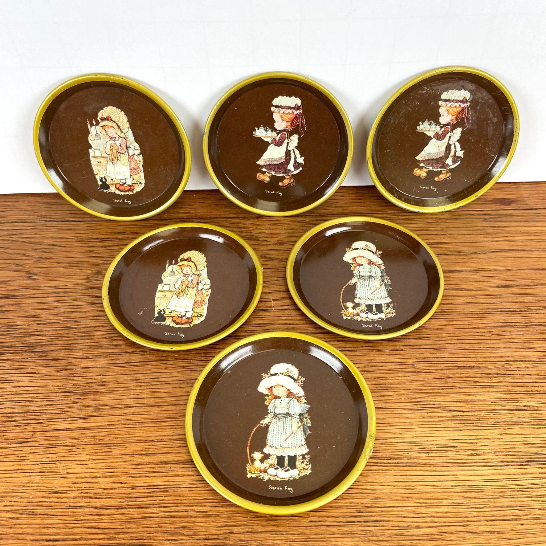 - Set van 6 Sarah Kay bruine onderzetters met goudkleurig randje