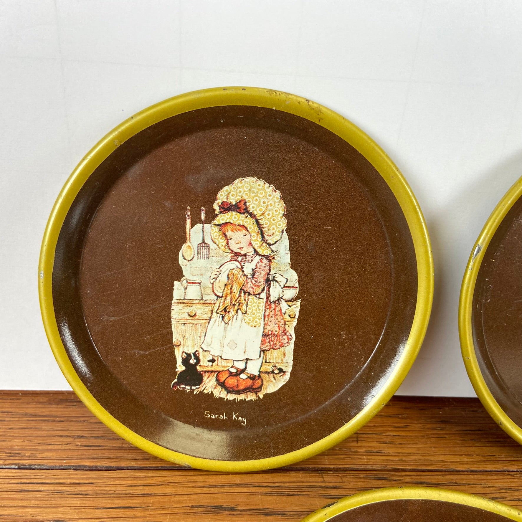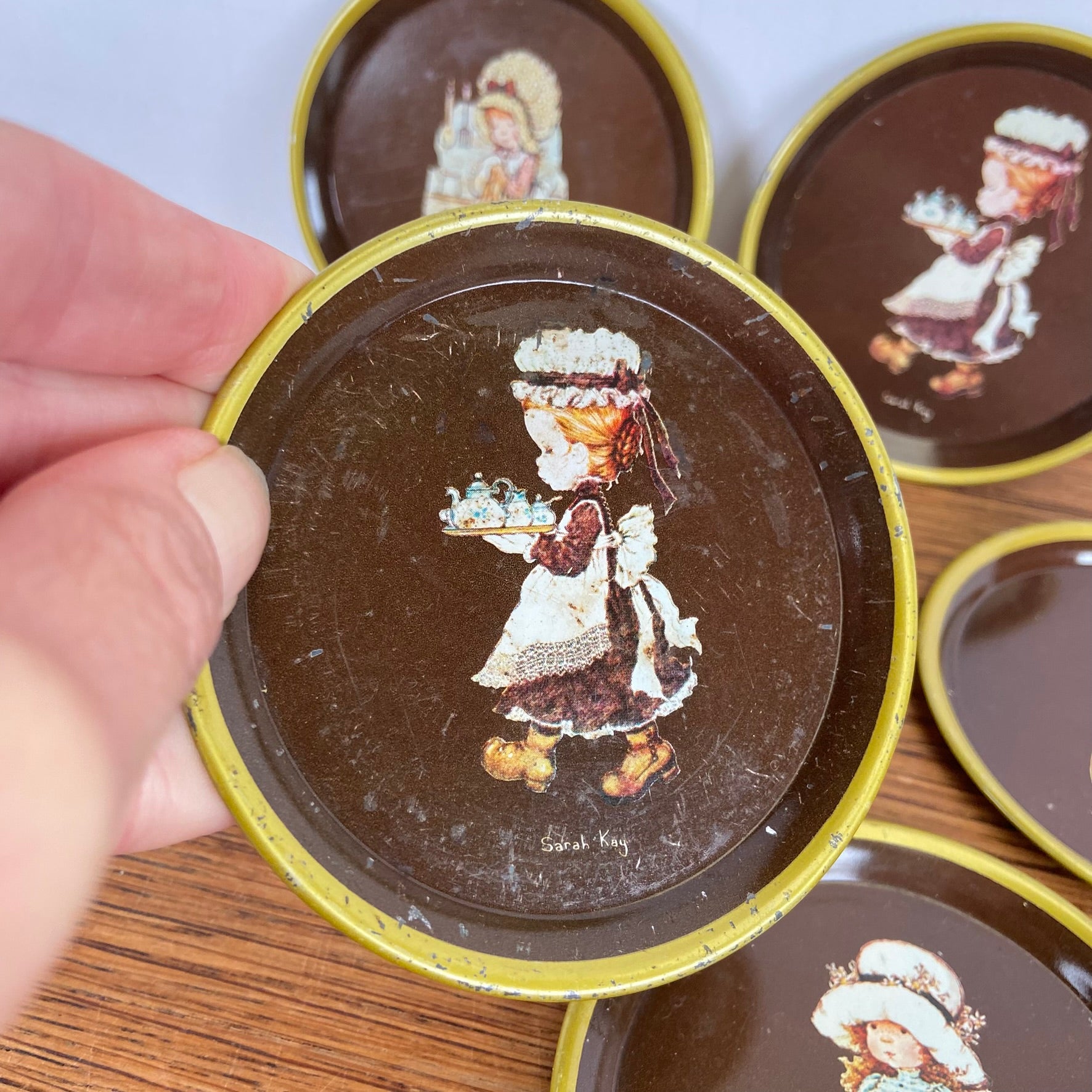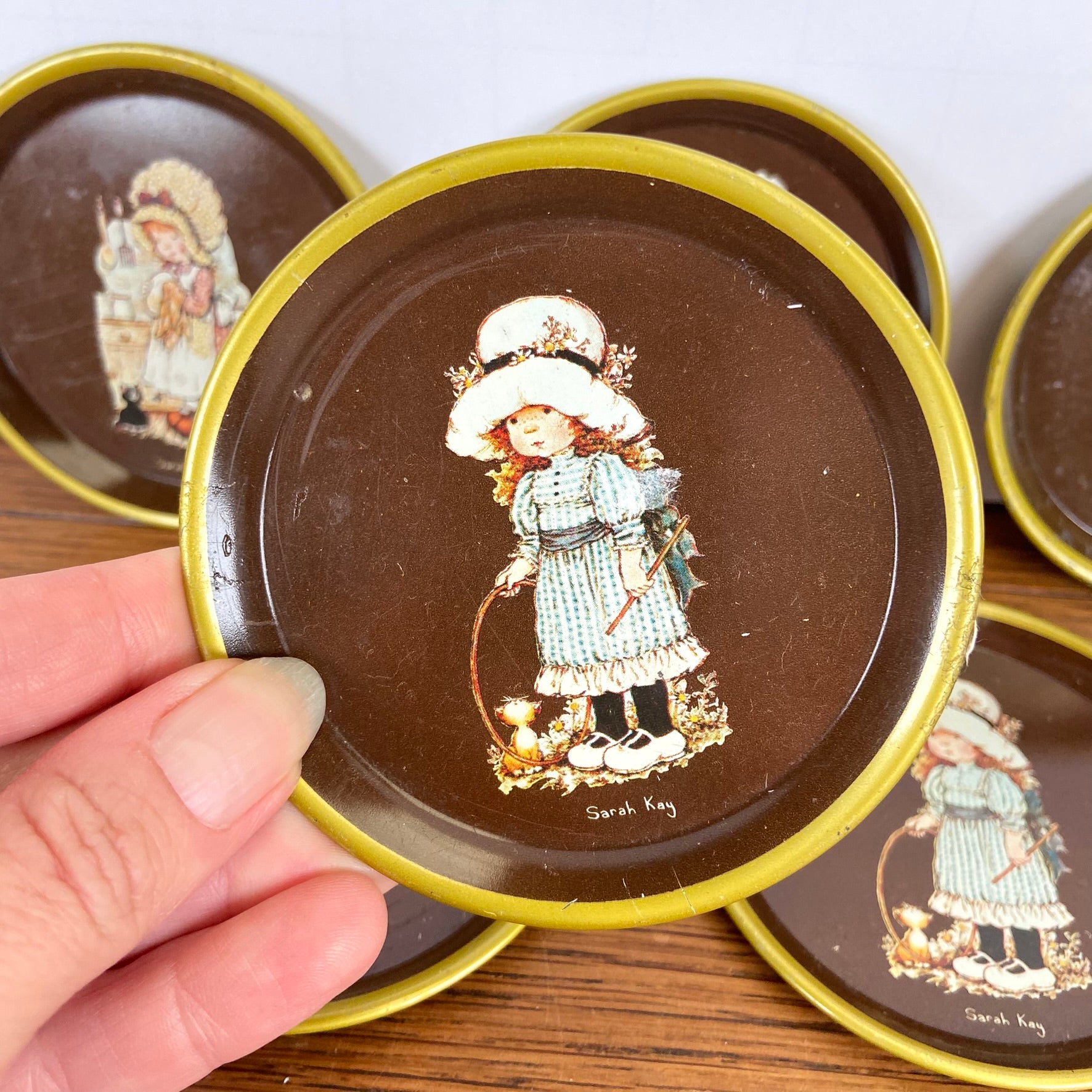 - Set van 6 Sarah Kay bruine onderzetters met goudkleurig randje