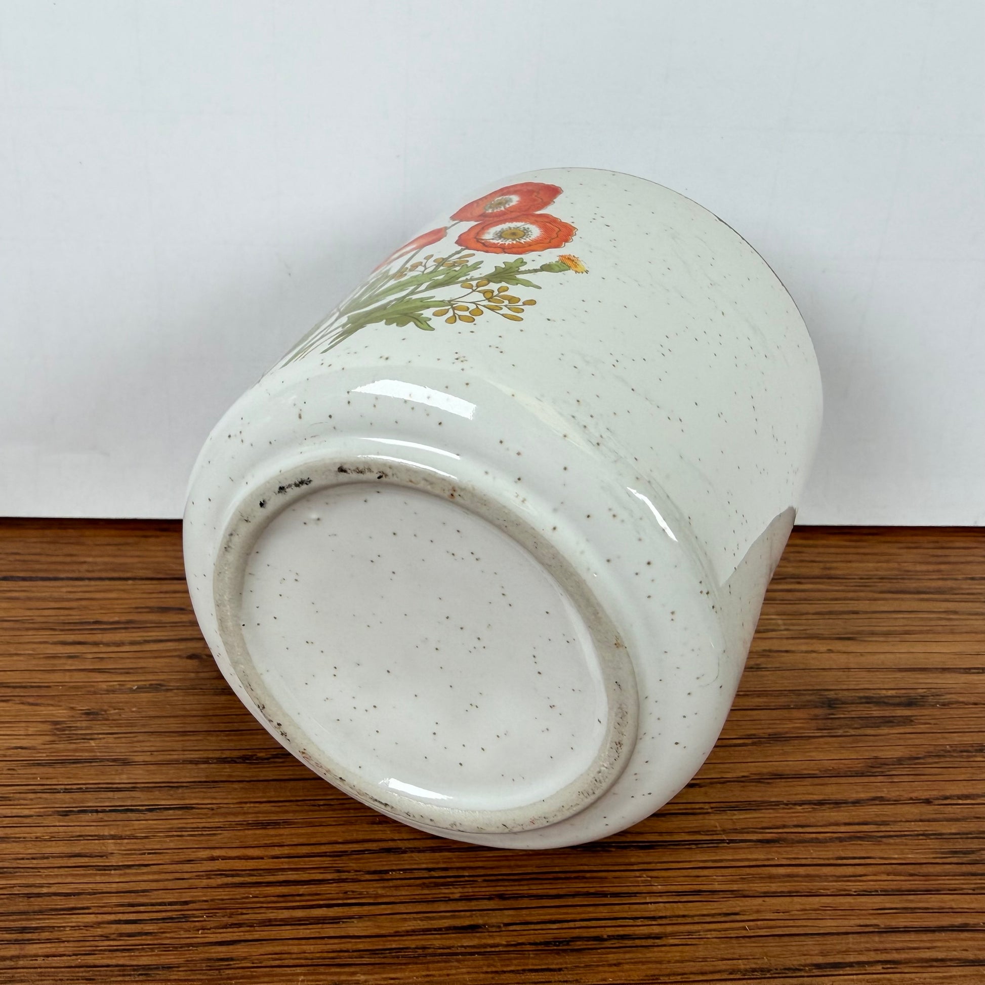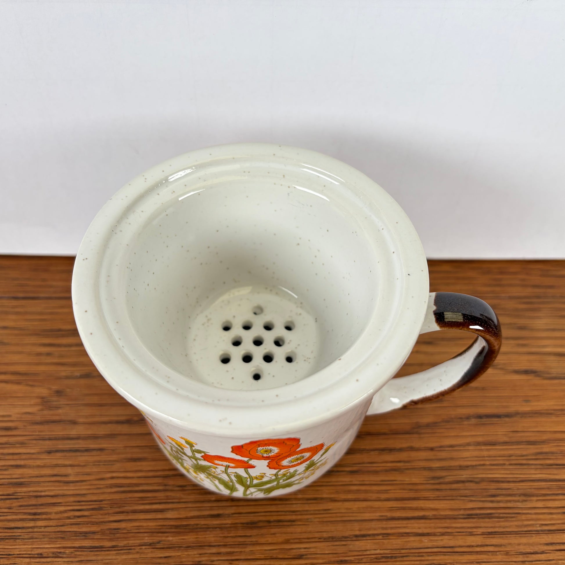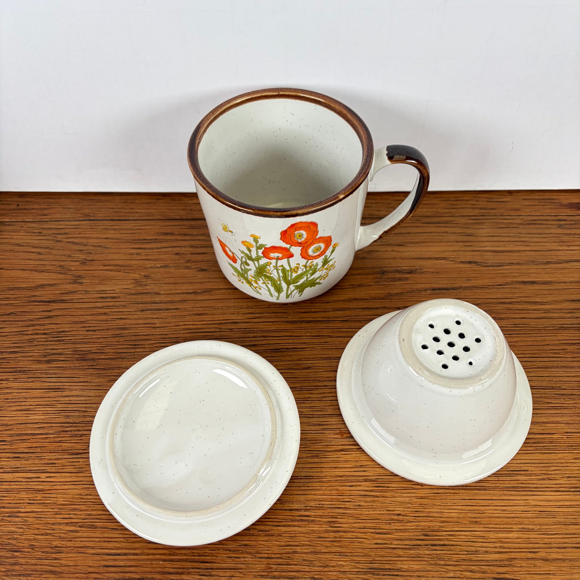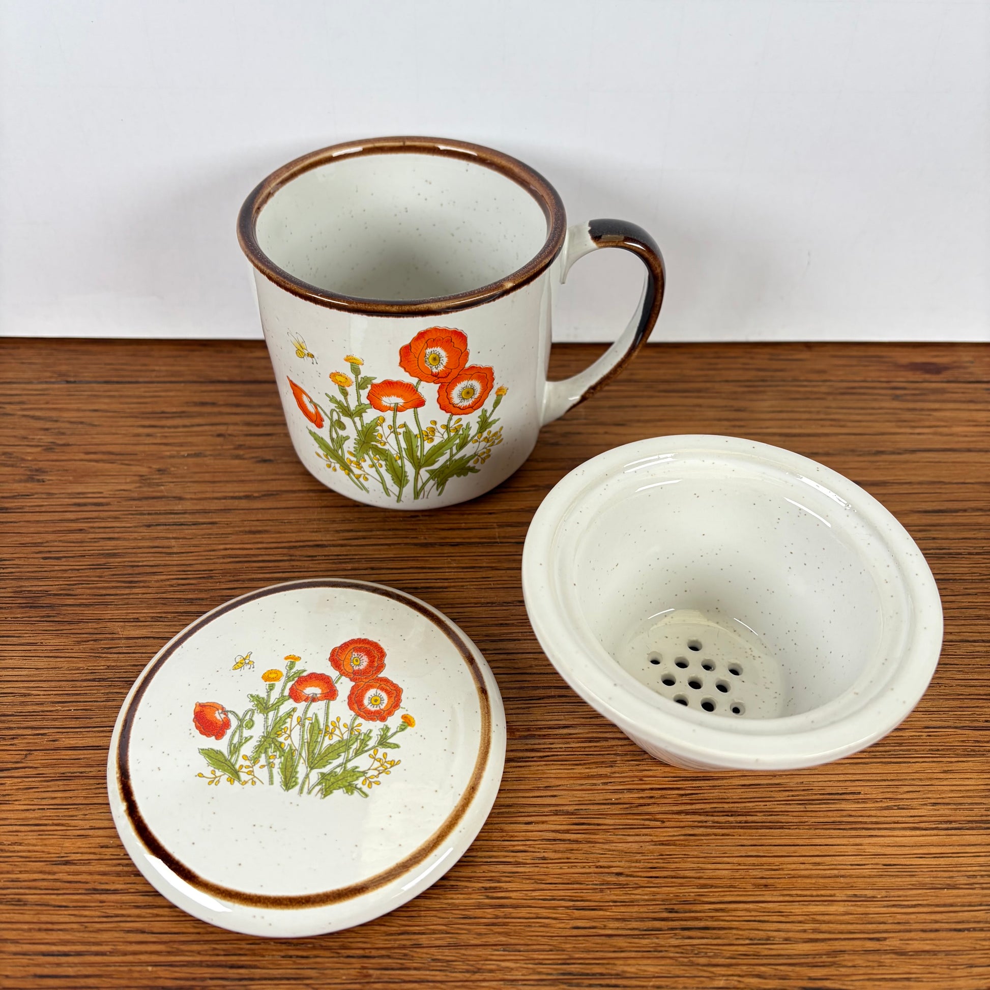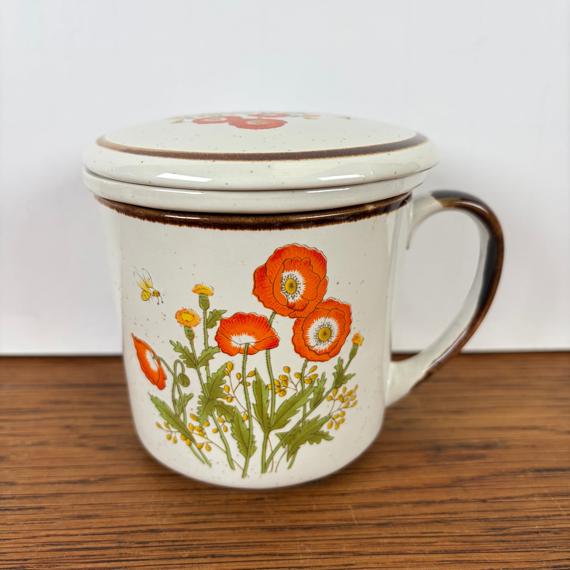 - Motief van wilde bloemen, klaprozen, op de mok en de deksel.