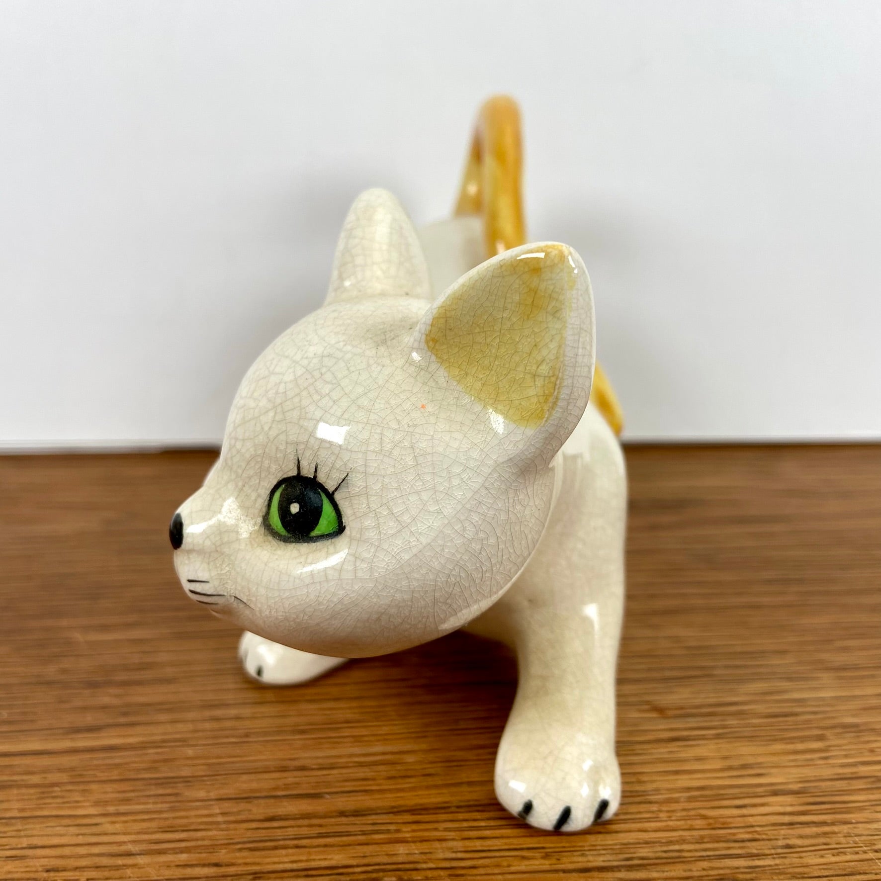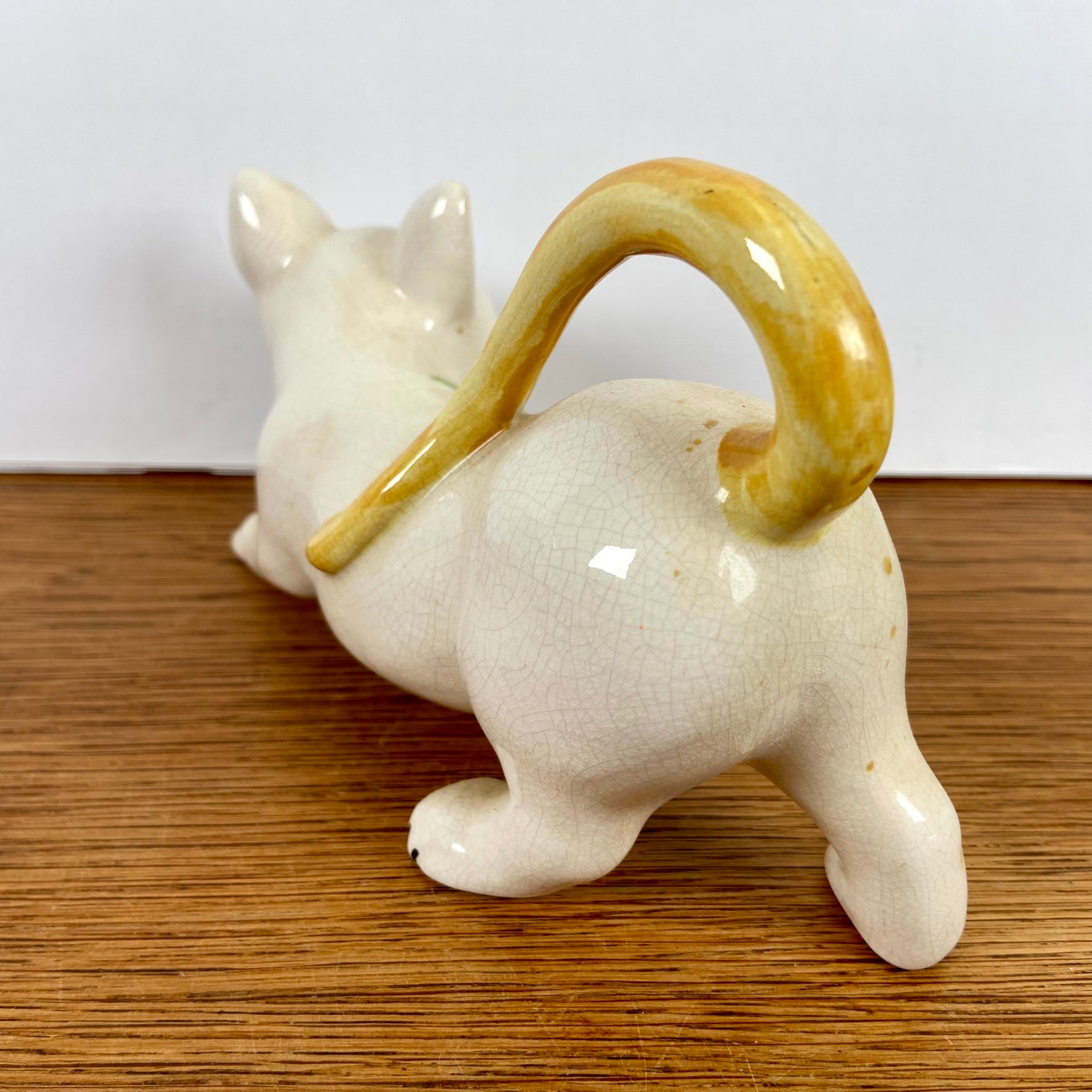 - Prachtig vintage beeldje van een kat met bloemen motief op het lijfje.