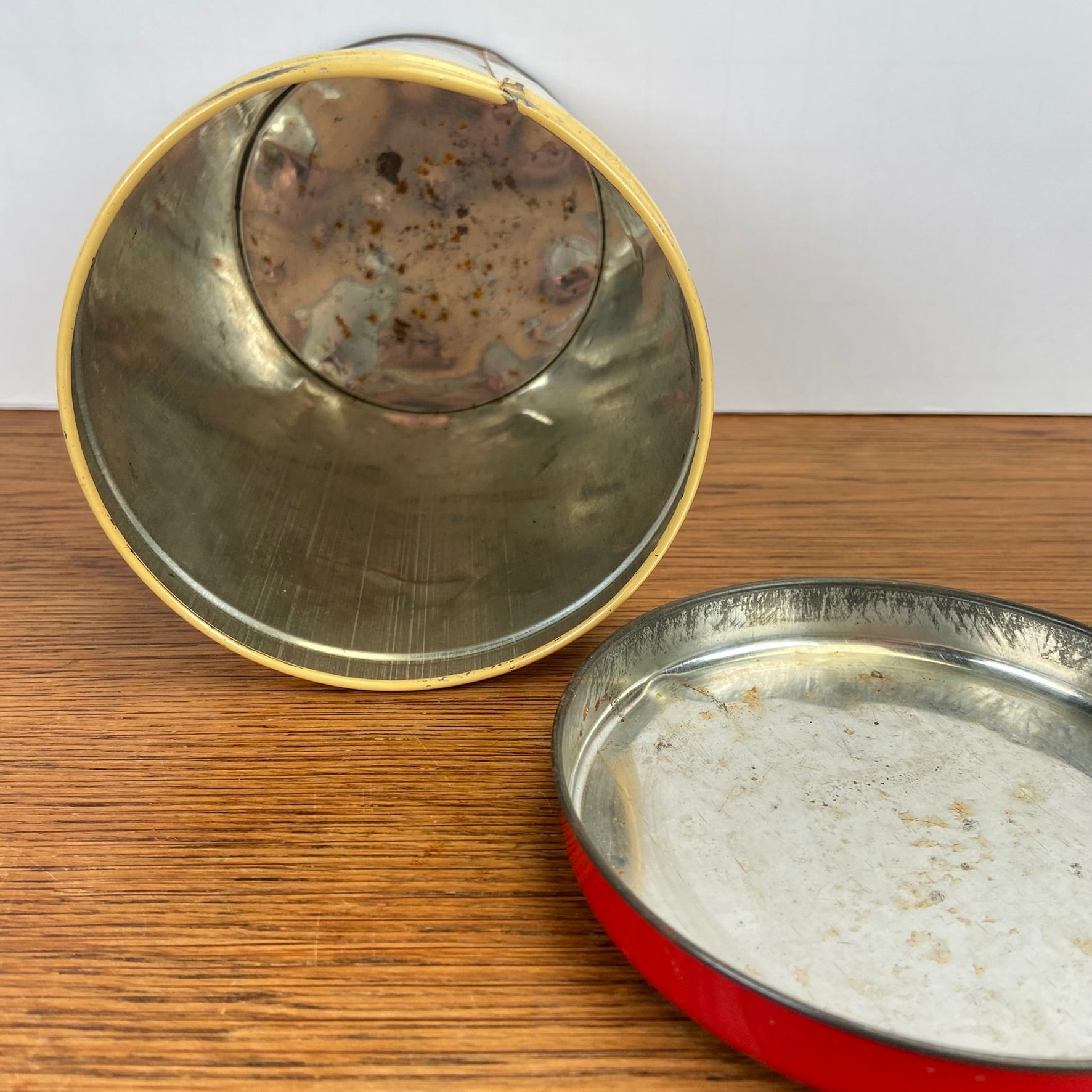 - Blik heeft wat gebruik sporen van buiten en binnen (roestig)