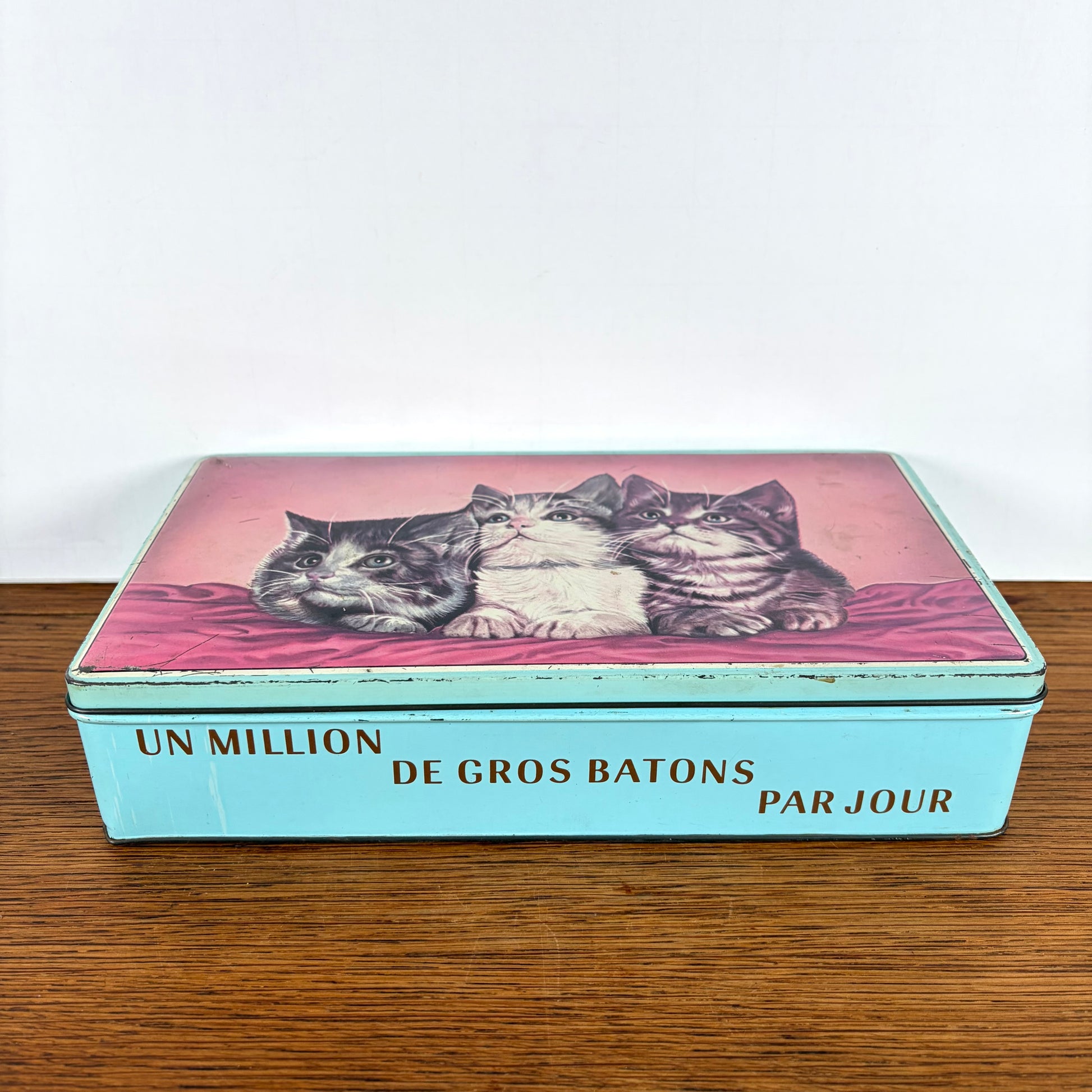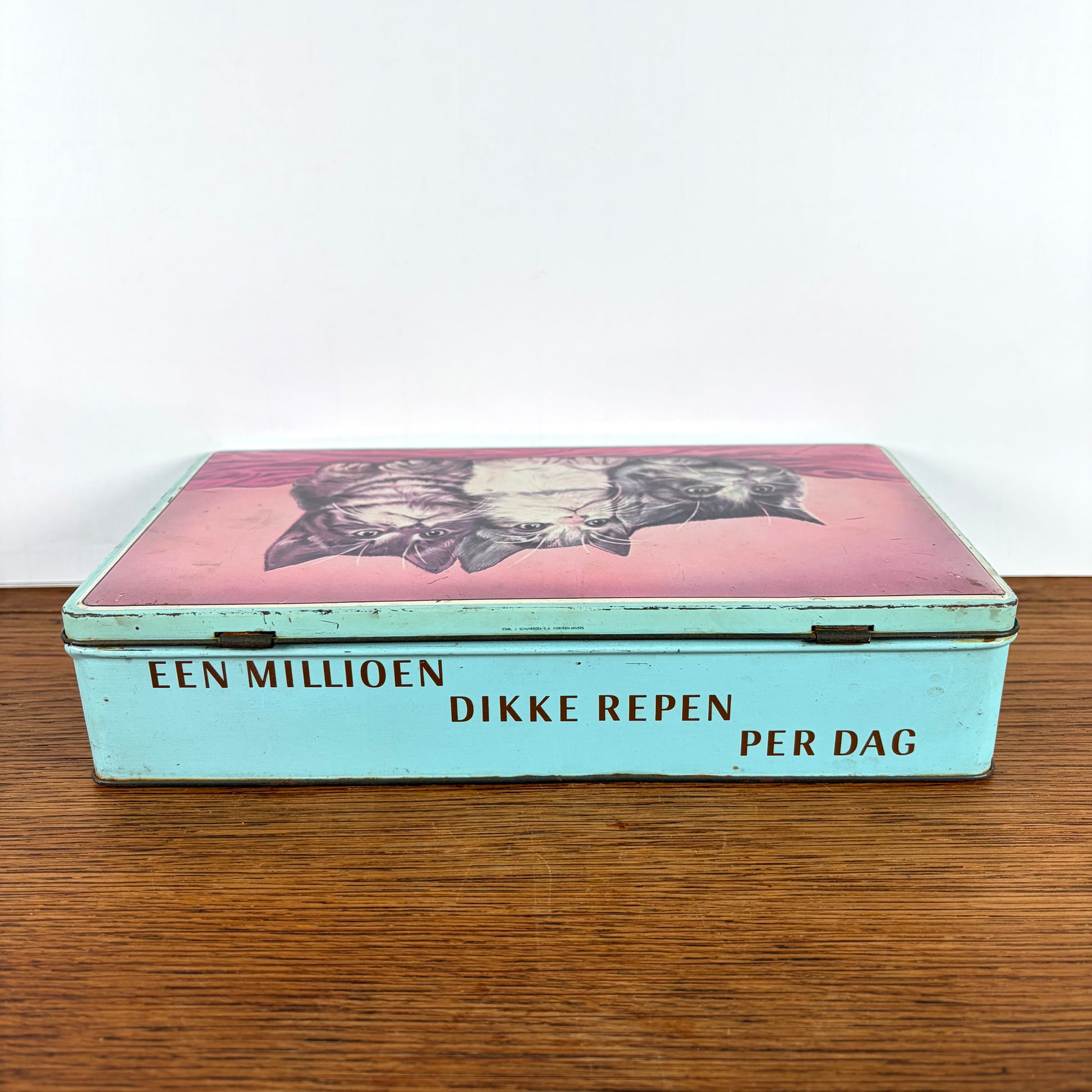 - Vintage chocolade blik van super cholade Jacques met 3 schattige katjes op de bovenkant.