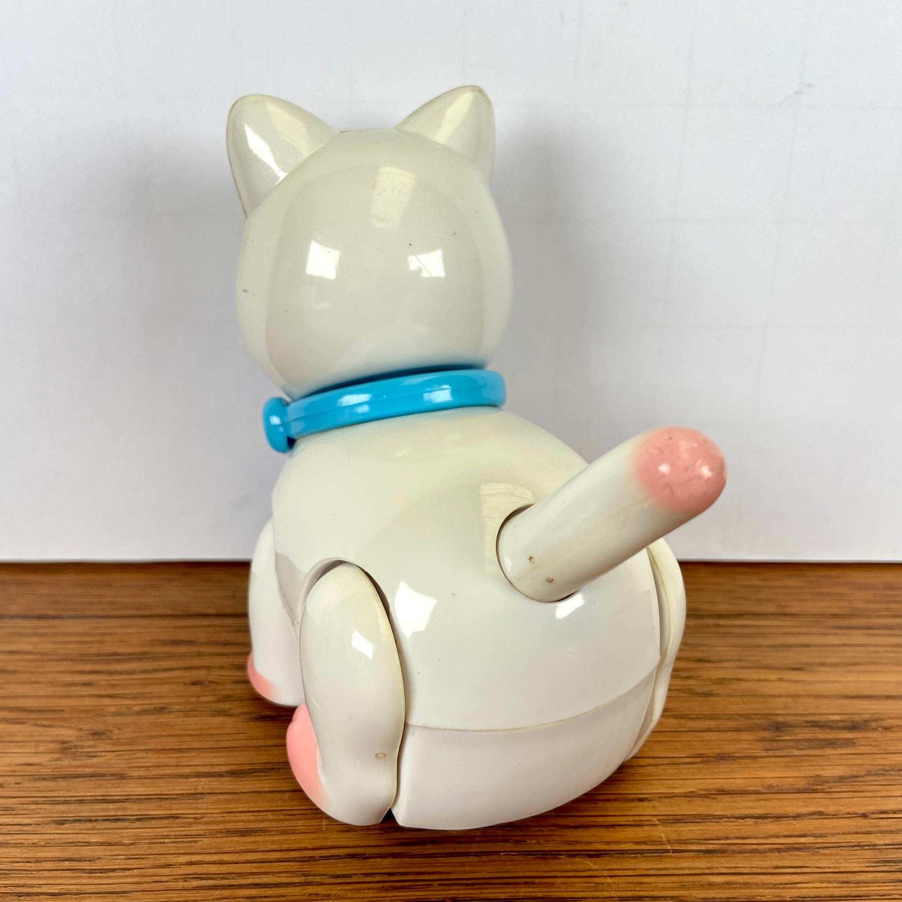 - Wit katjes, met roze pootjes en blauw halsbandje.