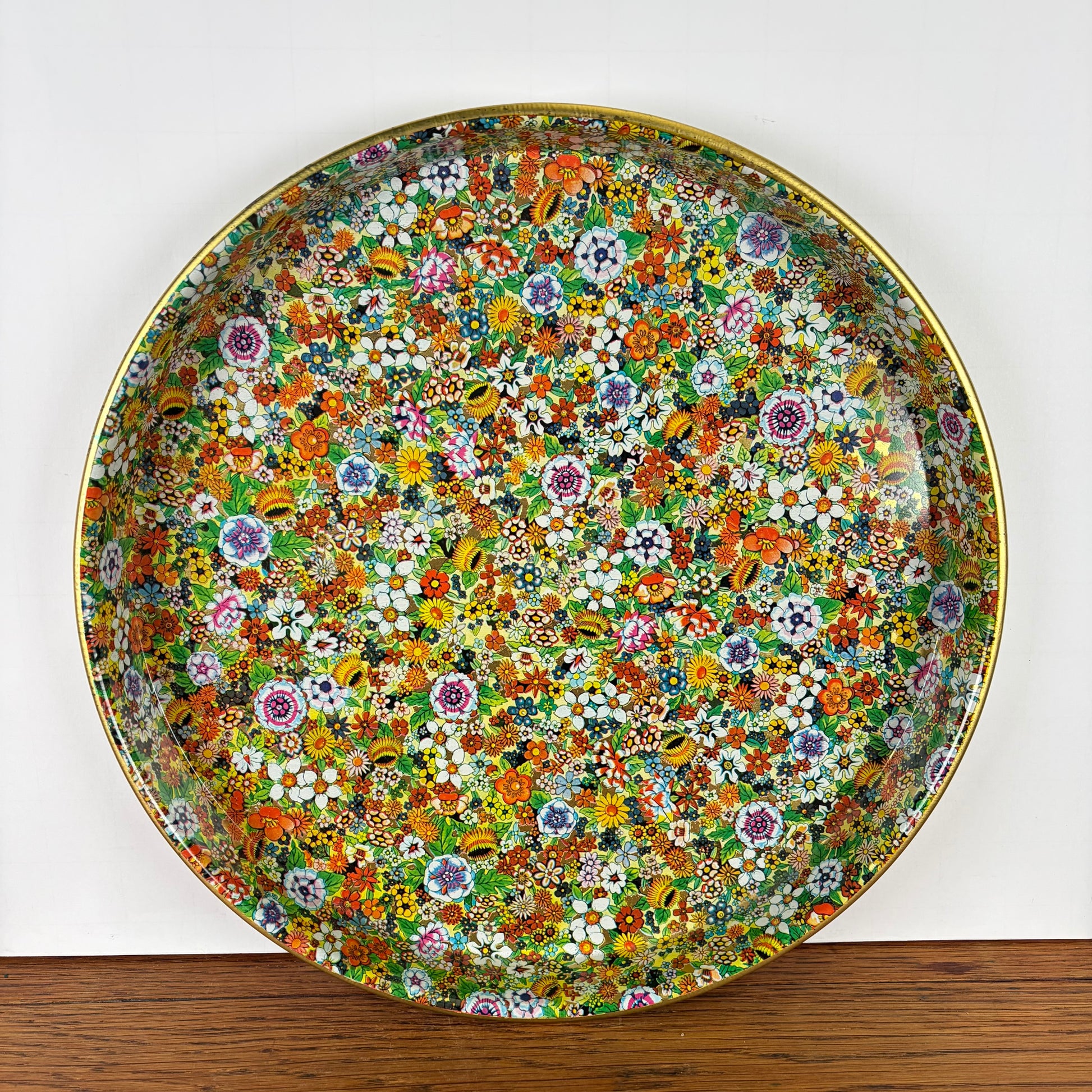 - Prachtig rond dienblad met mooie kleine kleurrijke bloemetjes.