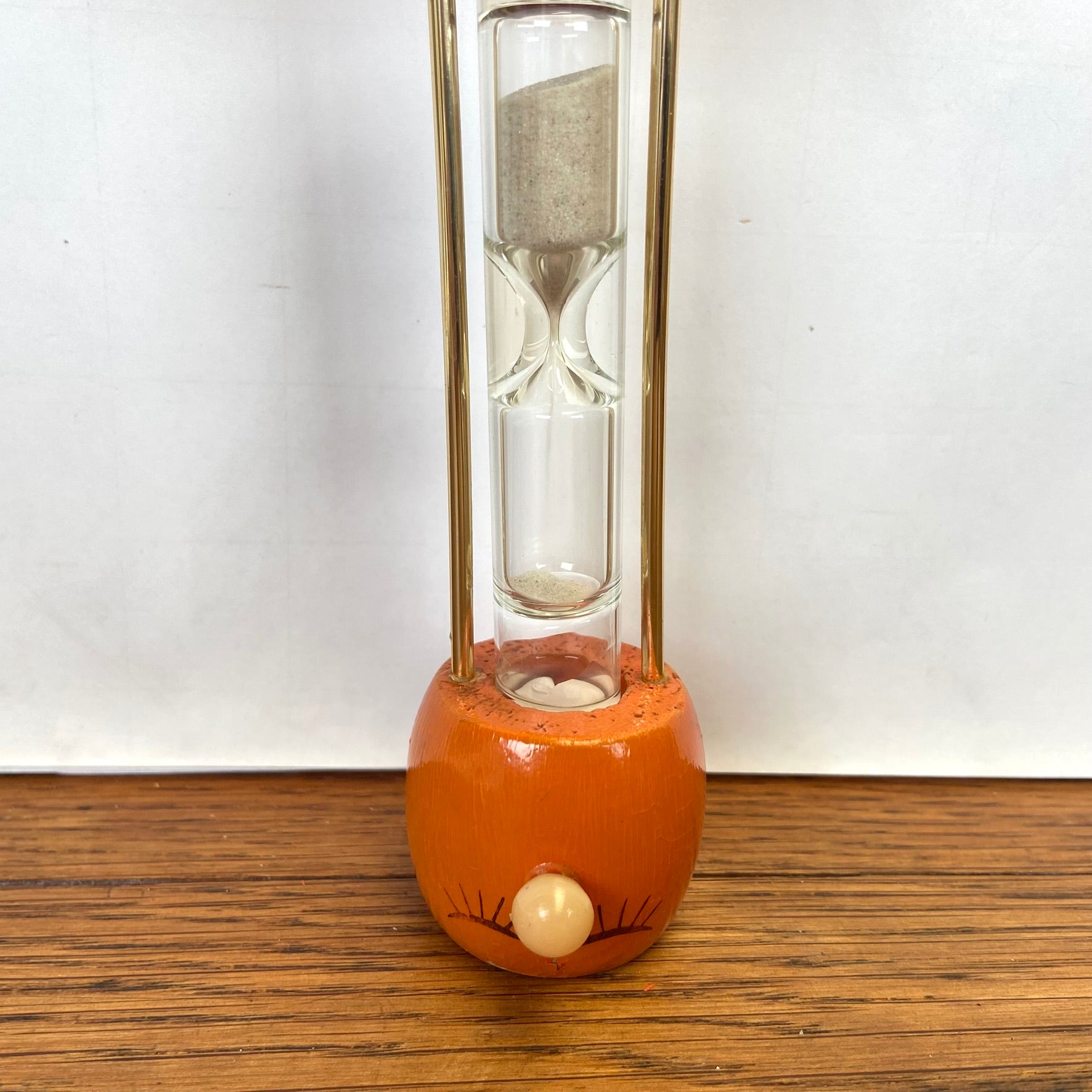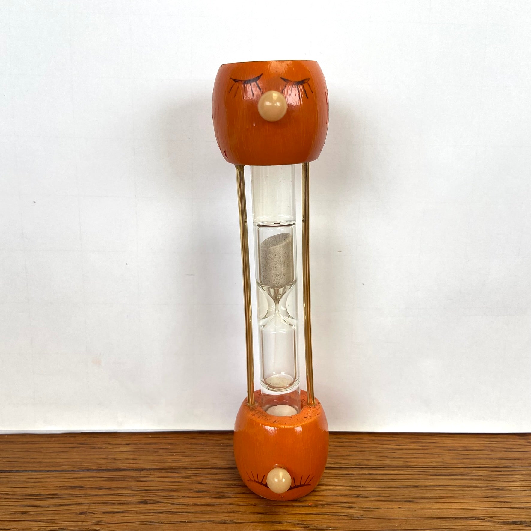 - Geweldige houten zandloper met aan beide uiteinden een oranje gezichtje.