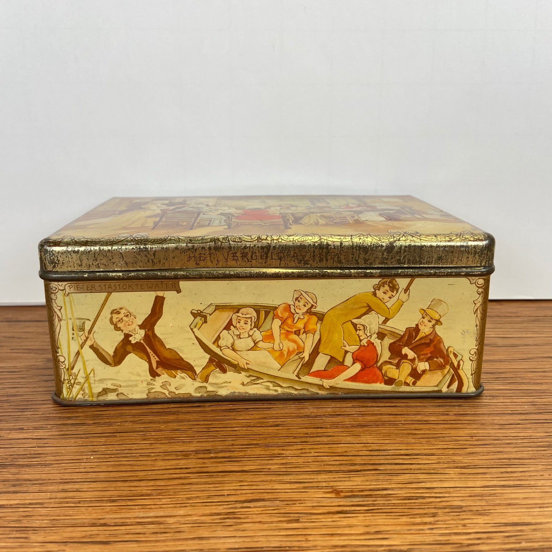 - Het verguld avondje op de deksel, Pieter Stastok te water en Keesje vertelt op de zijkanten.