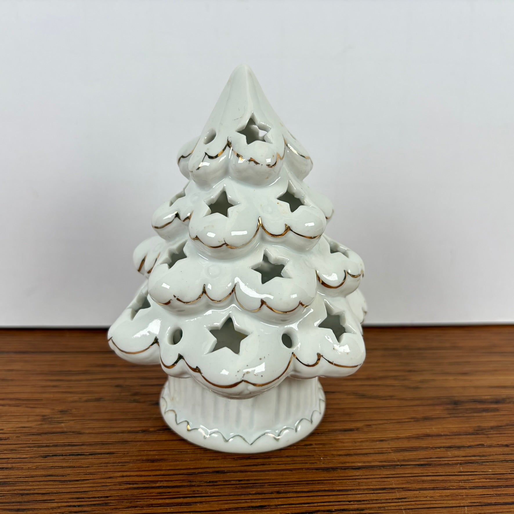 - Mooie witte keramieken kerstboom waar een waxinelichtje inkan.