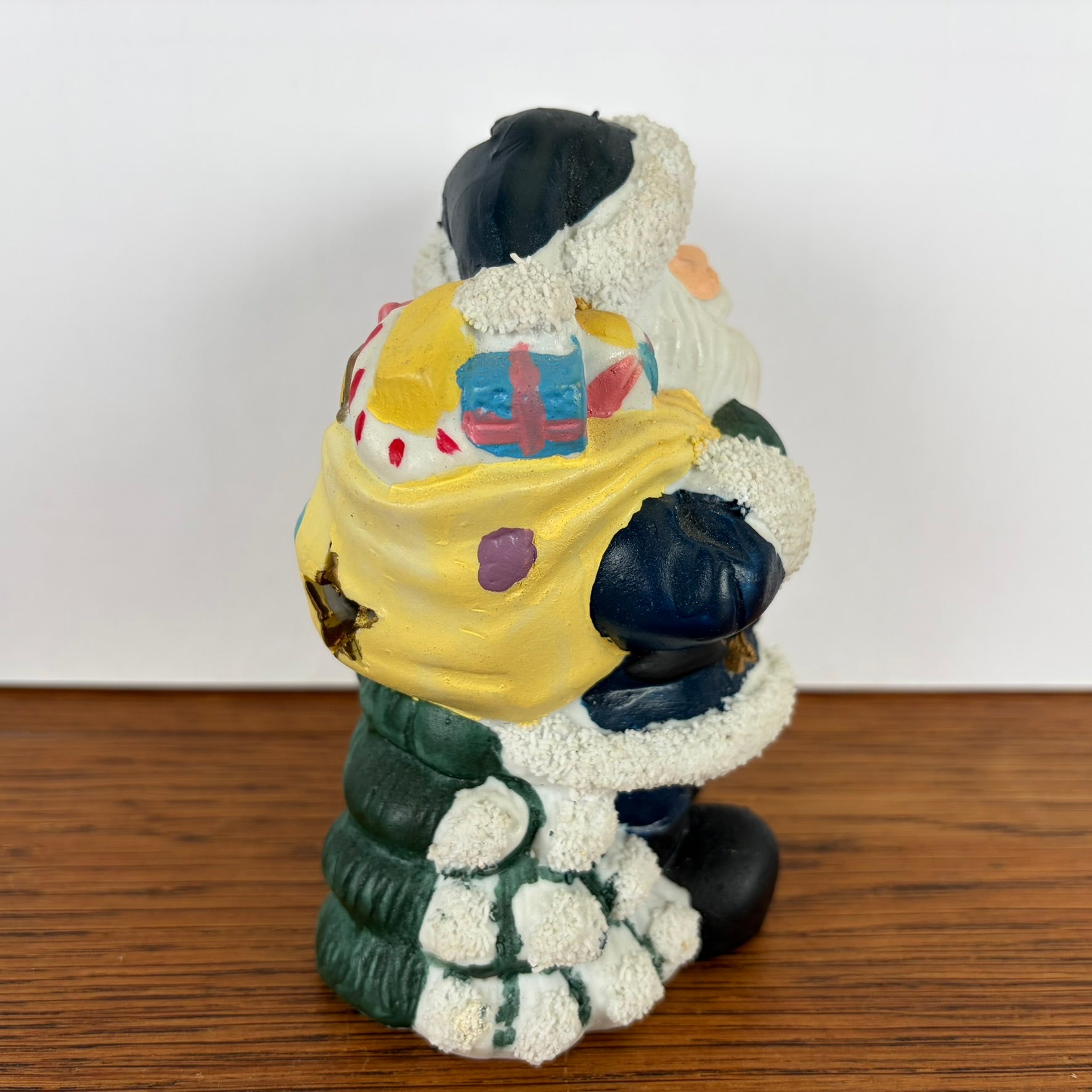 - Blauwe keramieken kerstman met een bel en zak op zijn rug.