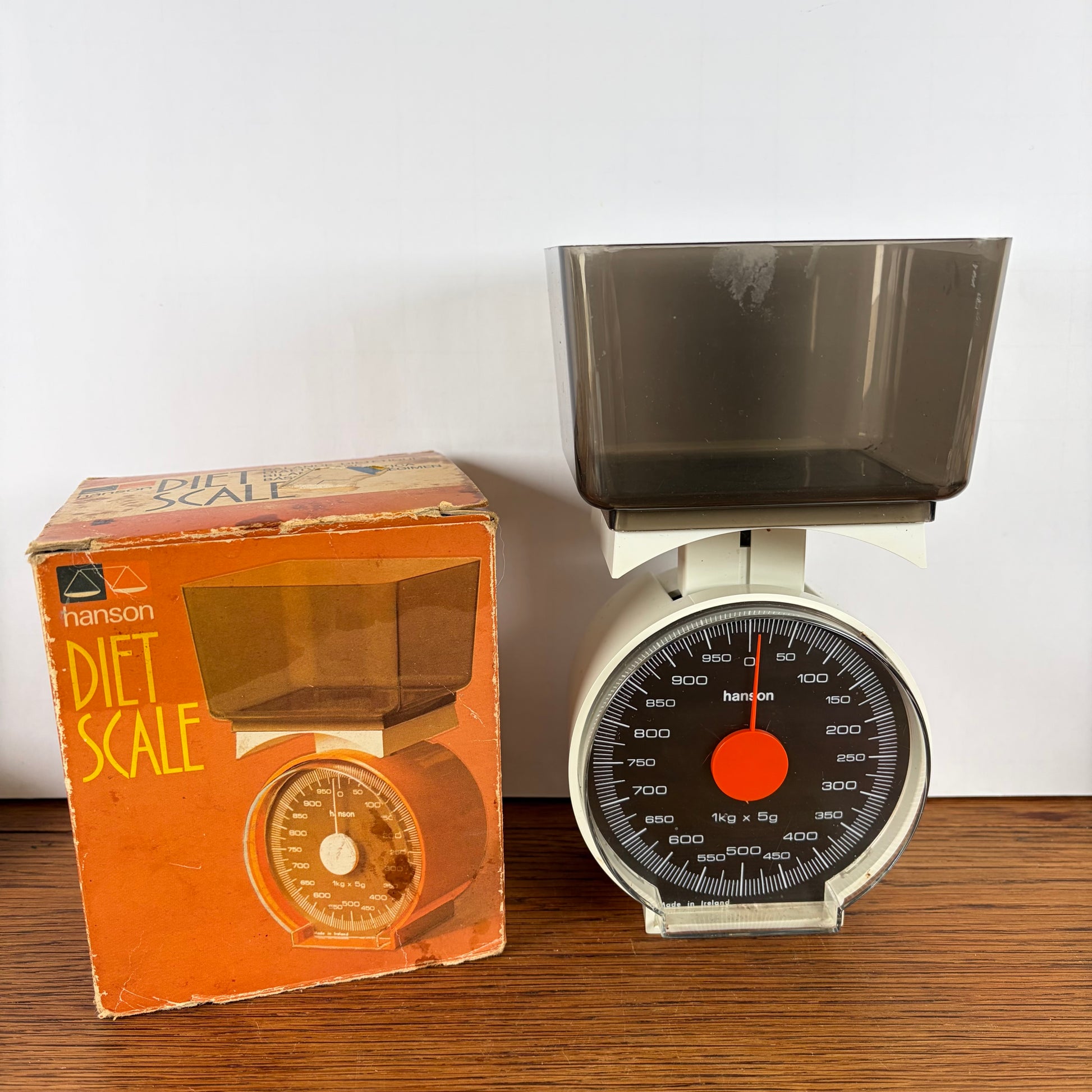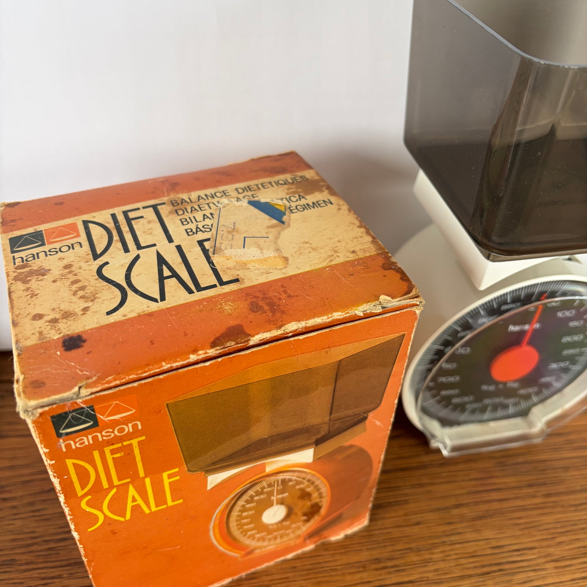 - Vintage crèmekleurige keukenweegschaal met doosje.
