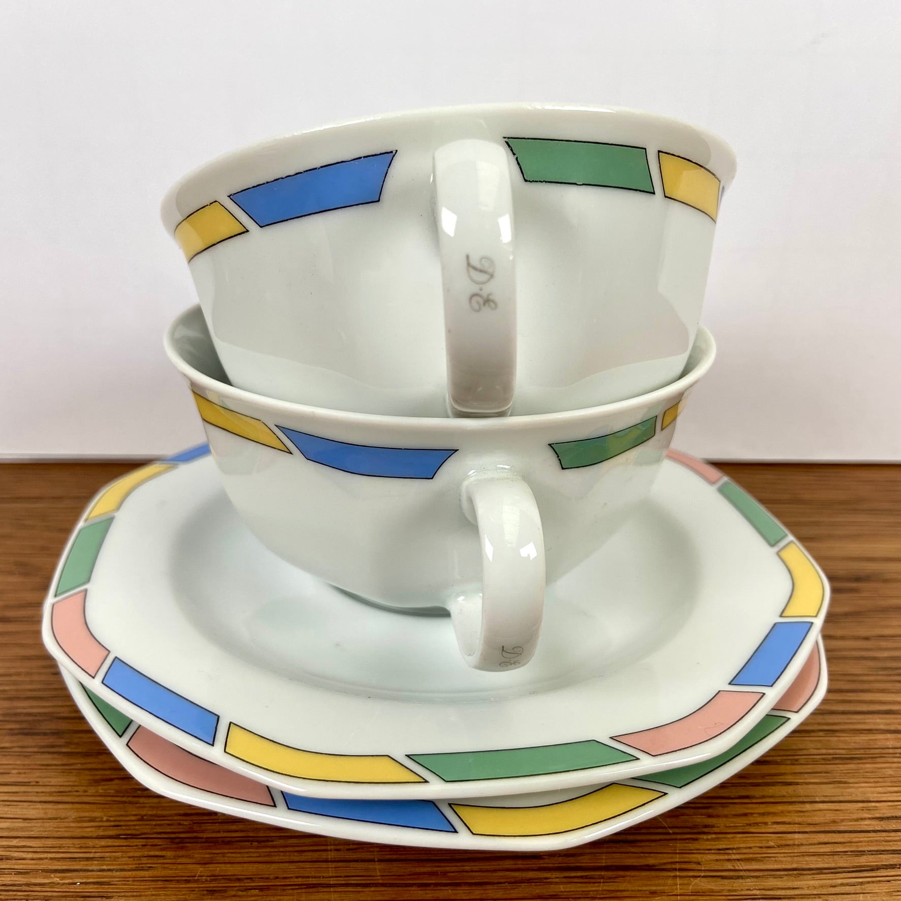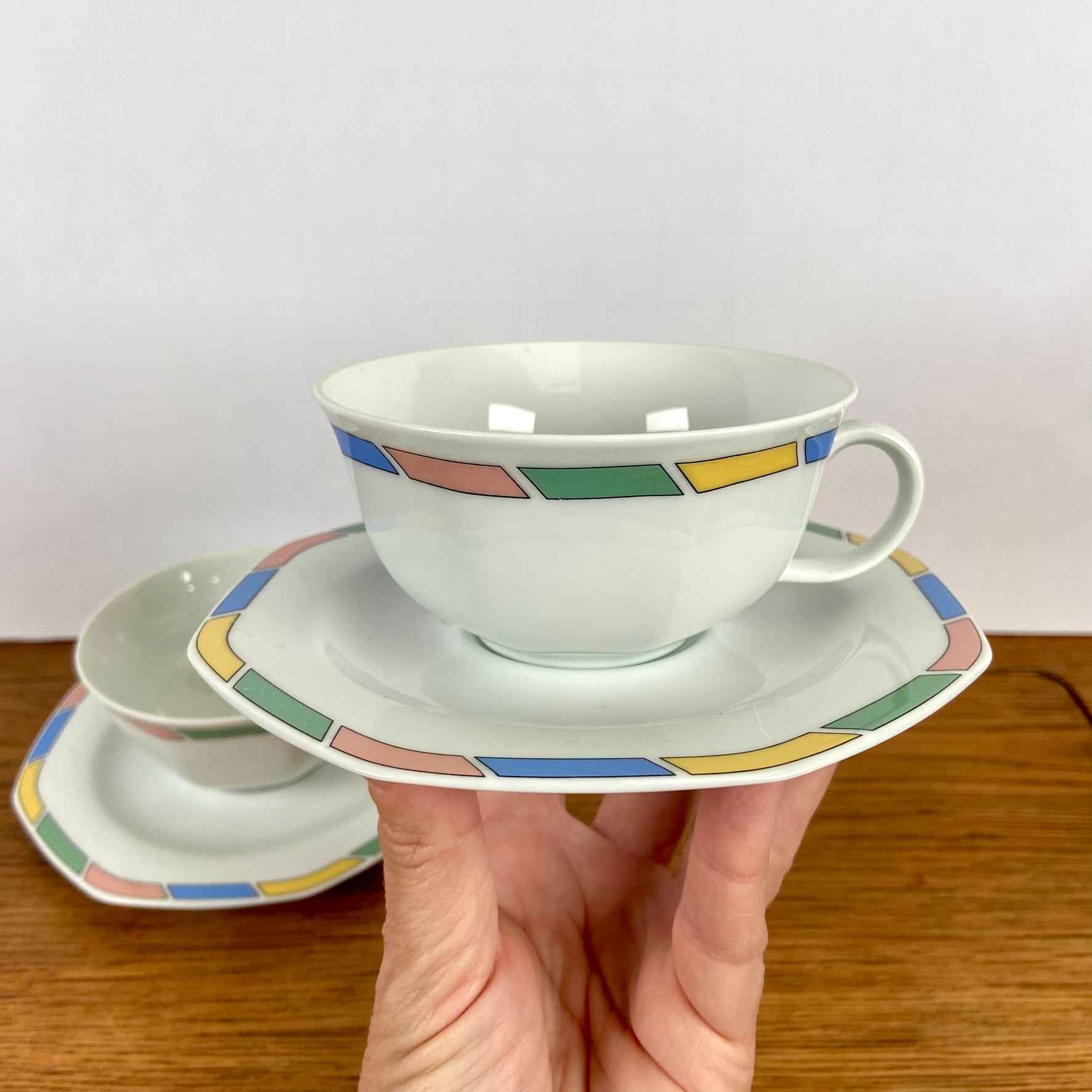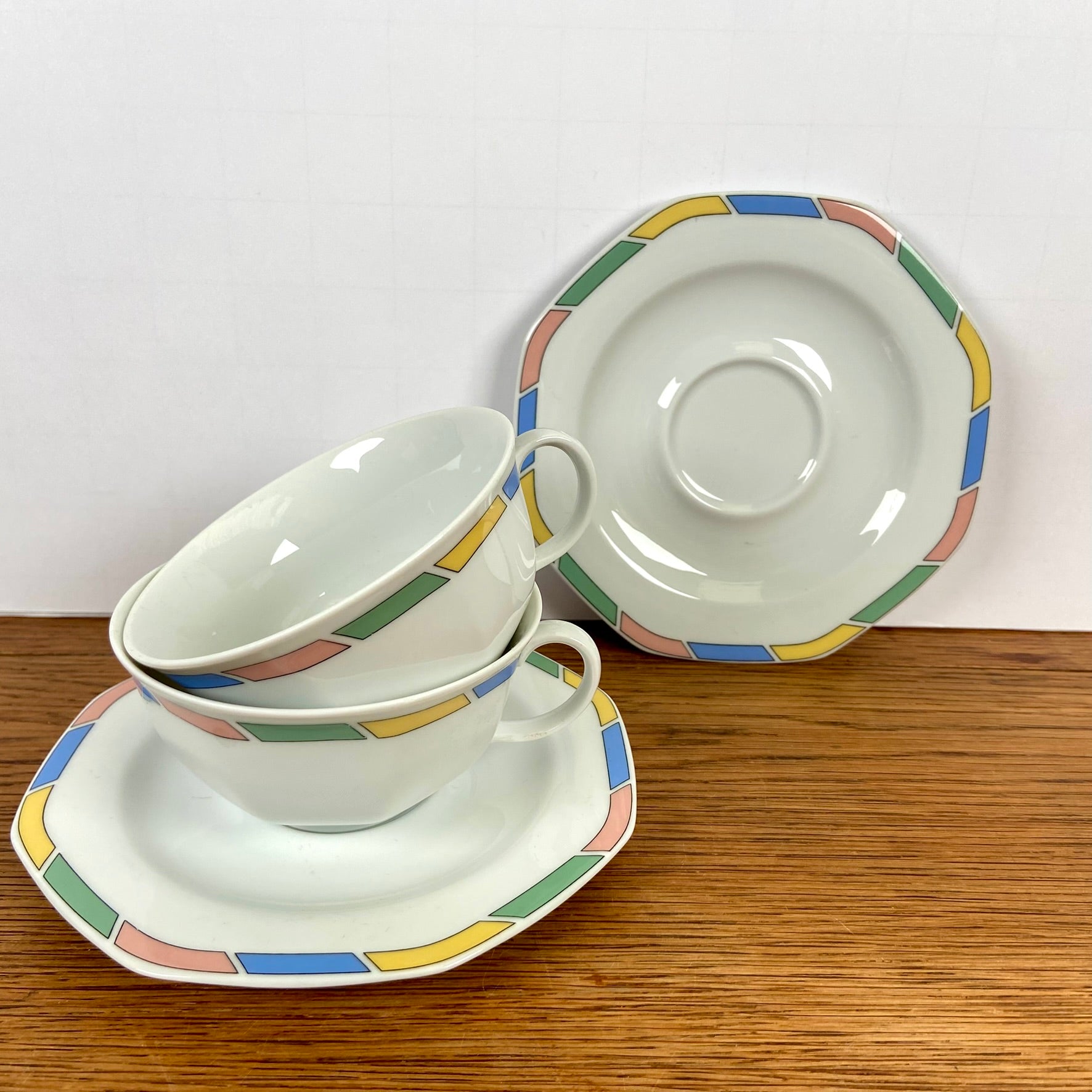 - Geweldige 8 hoekige schotels, met mooie kleurtjes aan de rand.