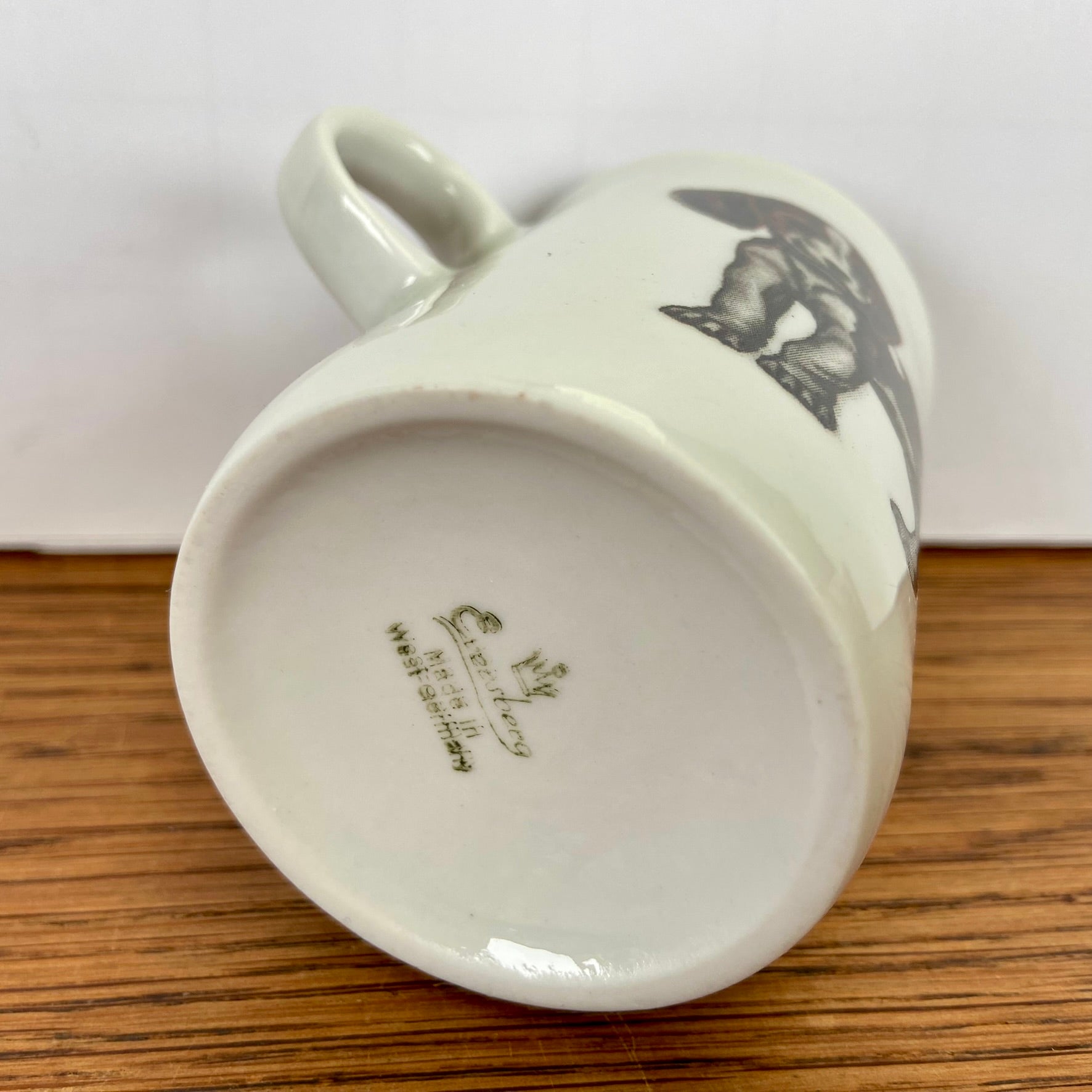 - Creme kleurige mok met de afbeelding van een hond.