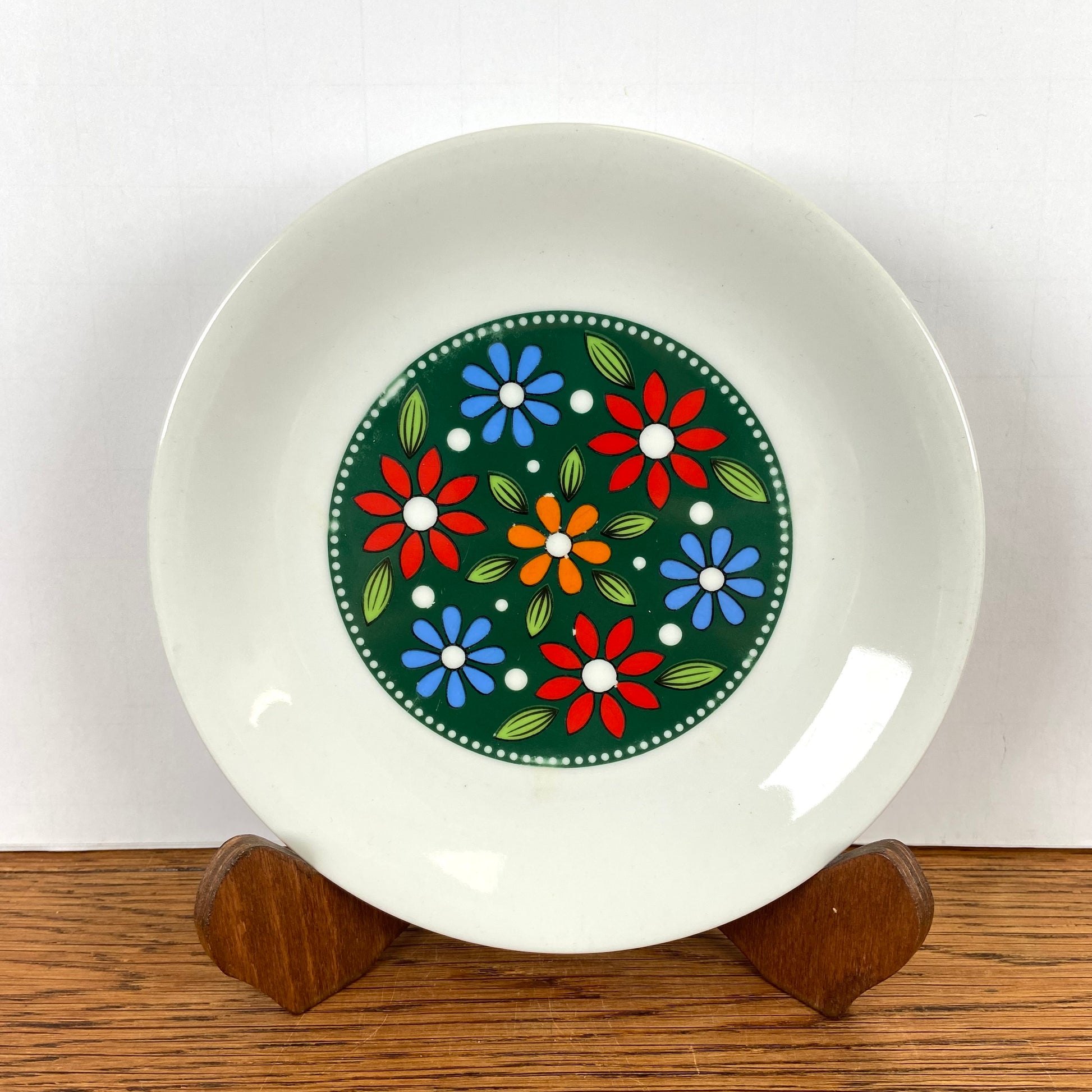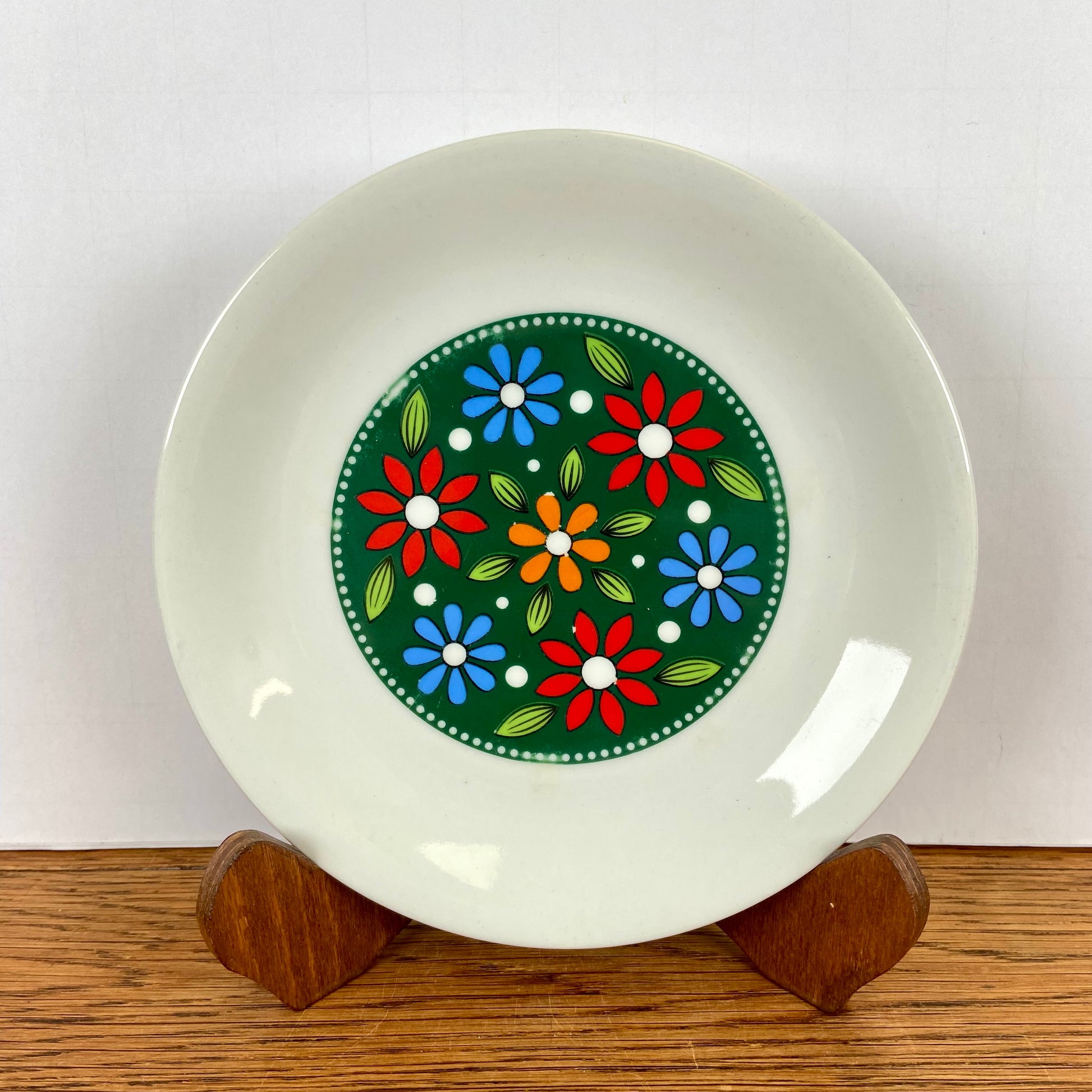 - Vintage ontbijtborden met in het midden een vrolijk bloemmotief.