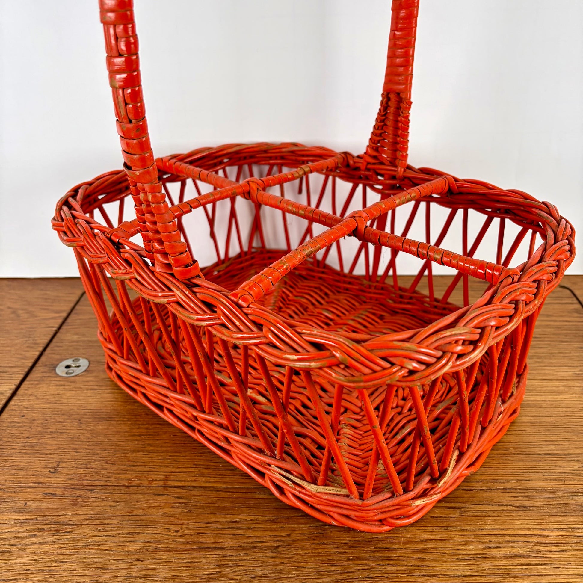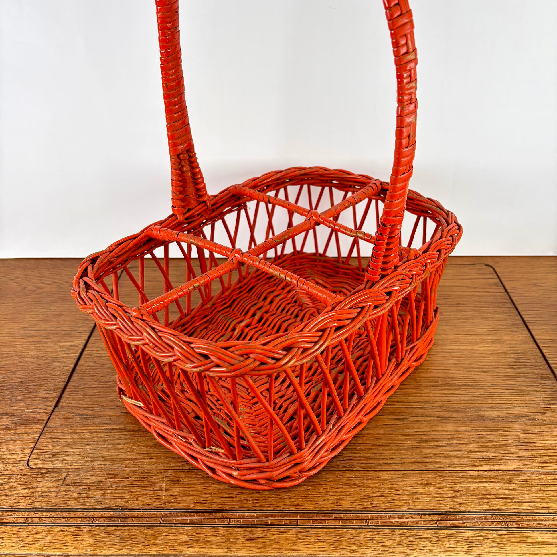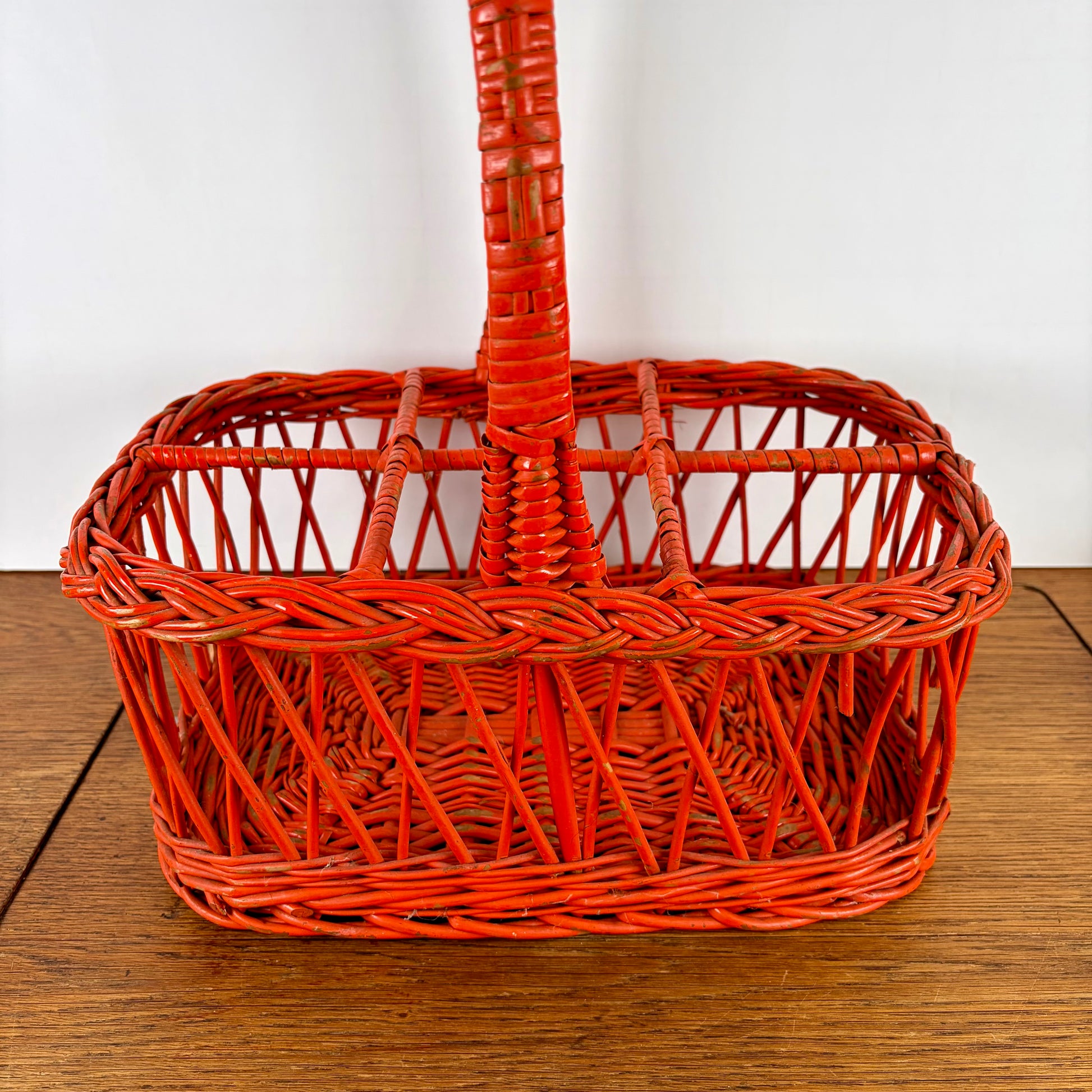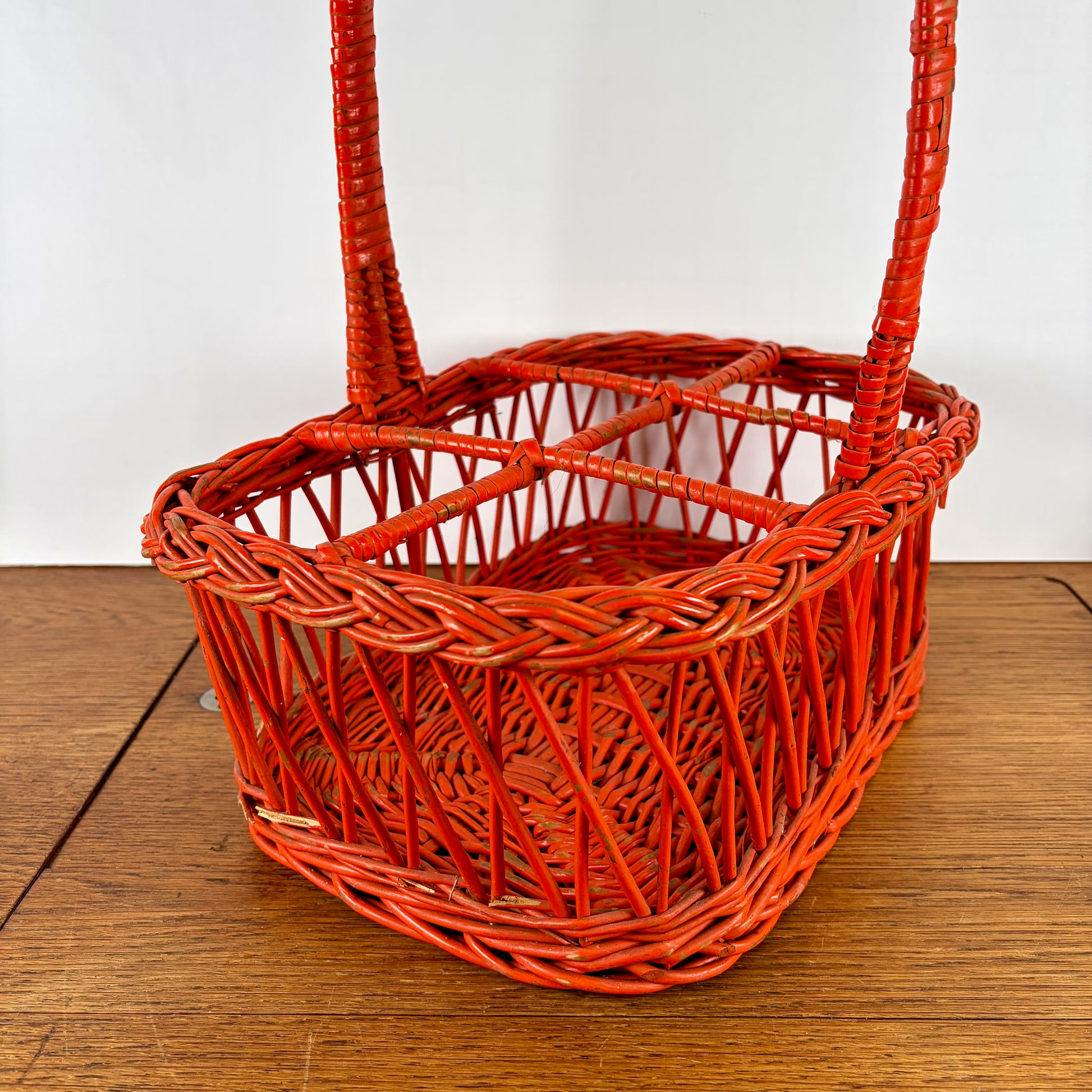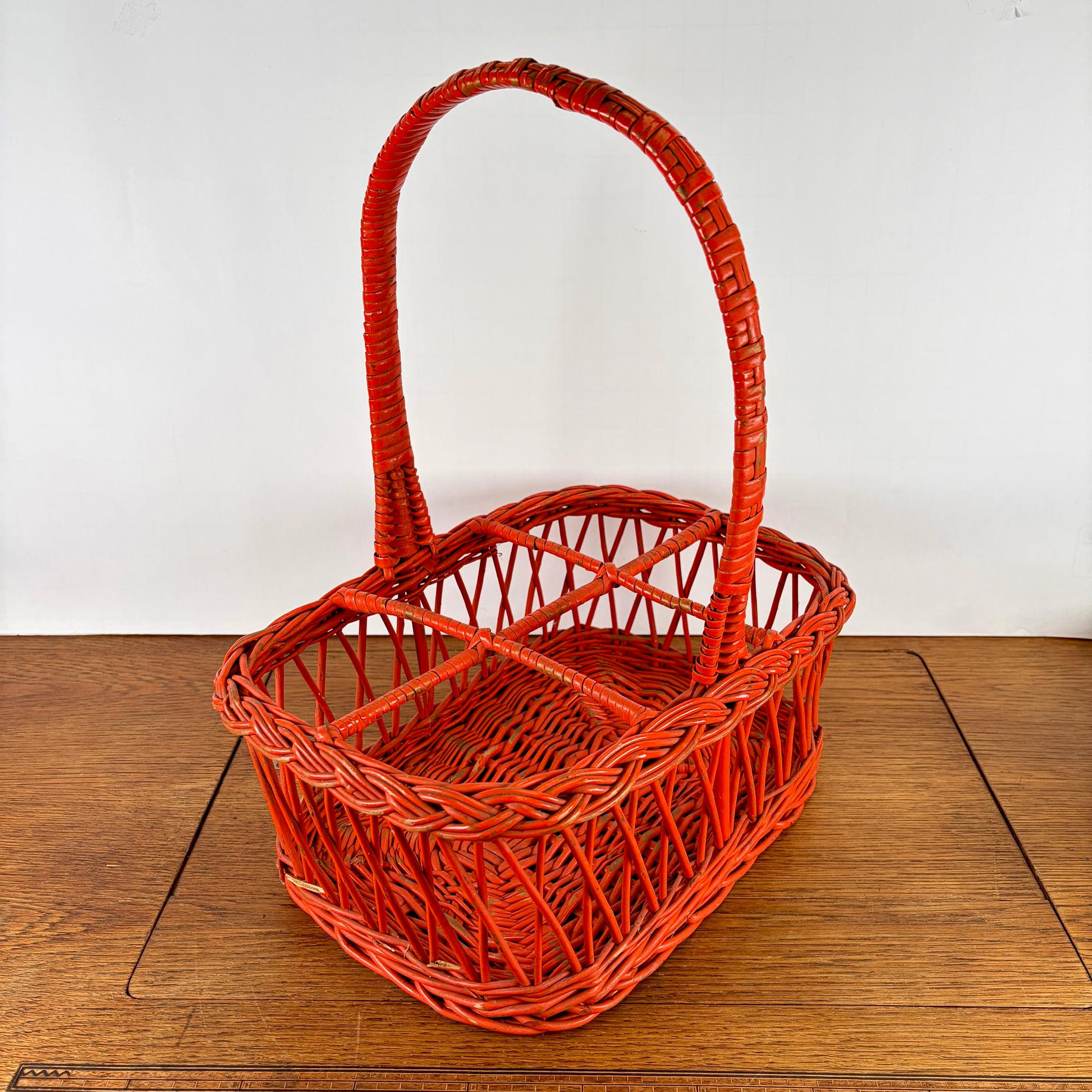 Vintage oranje rieten flessenrek