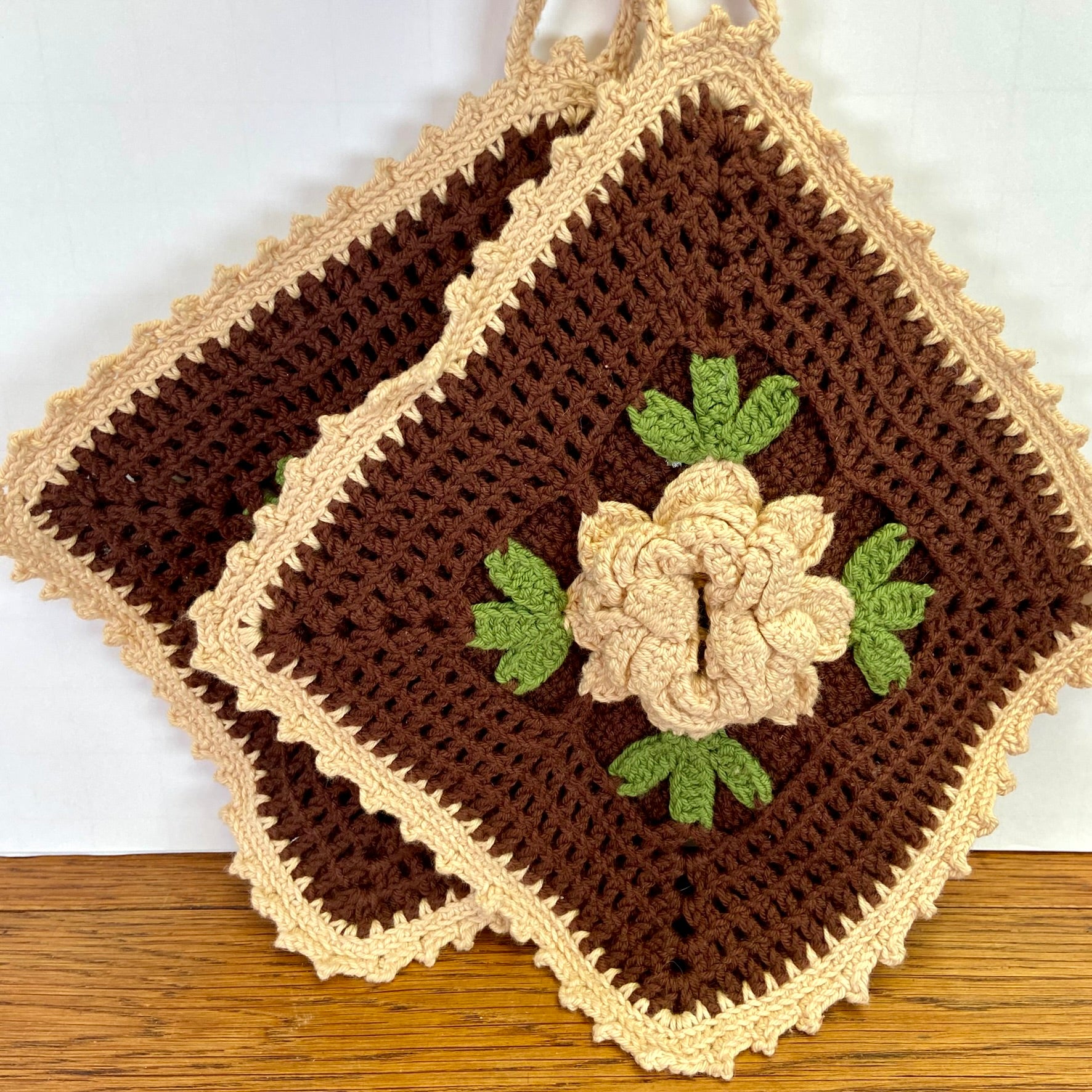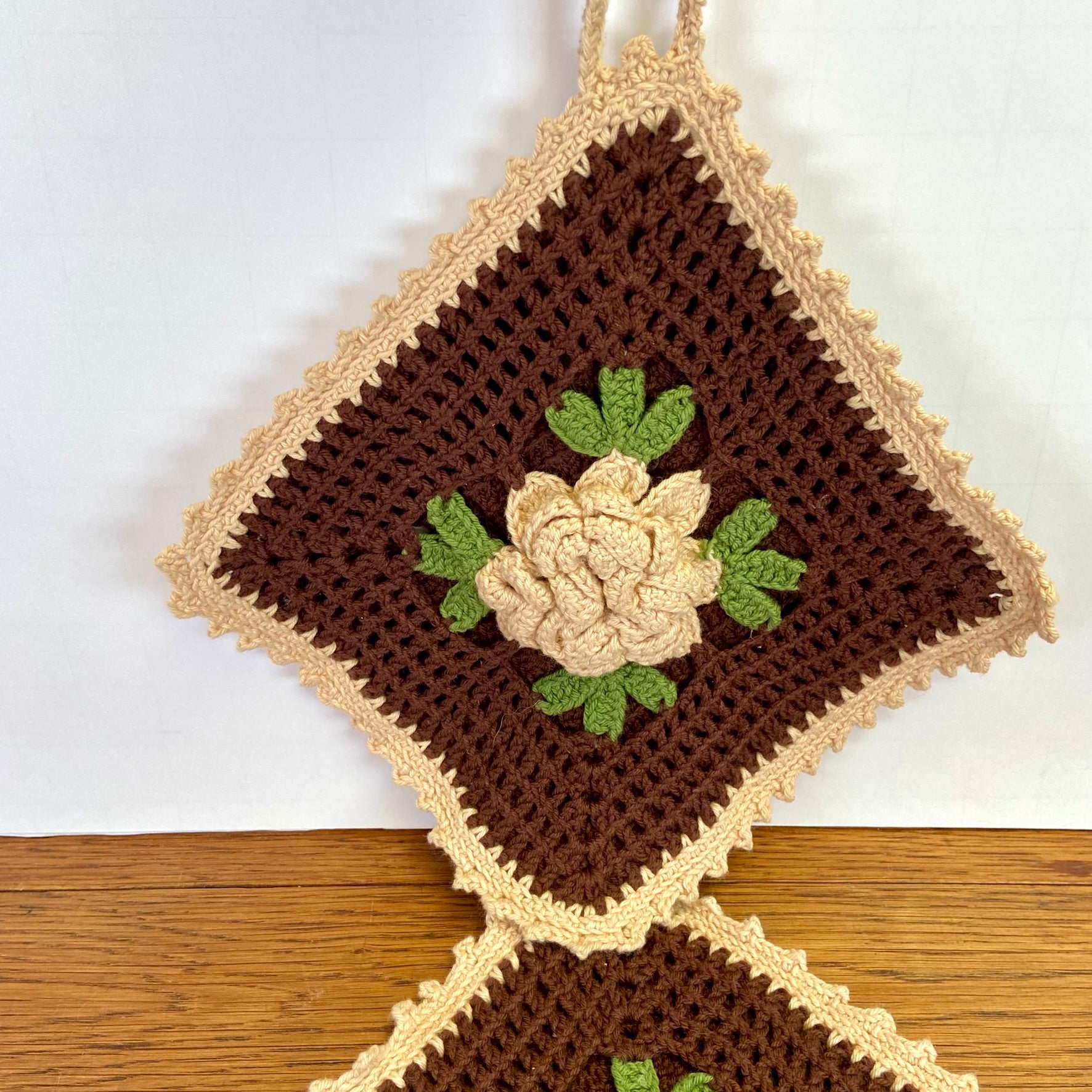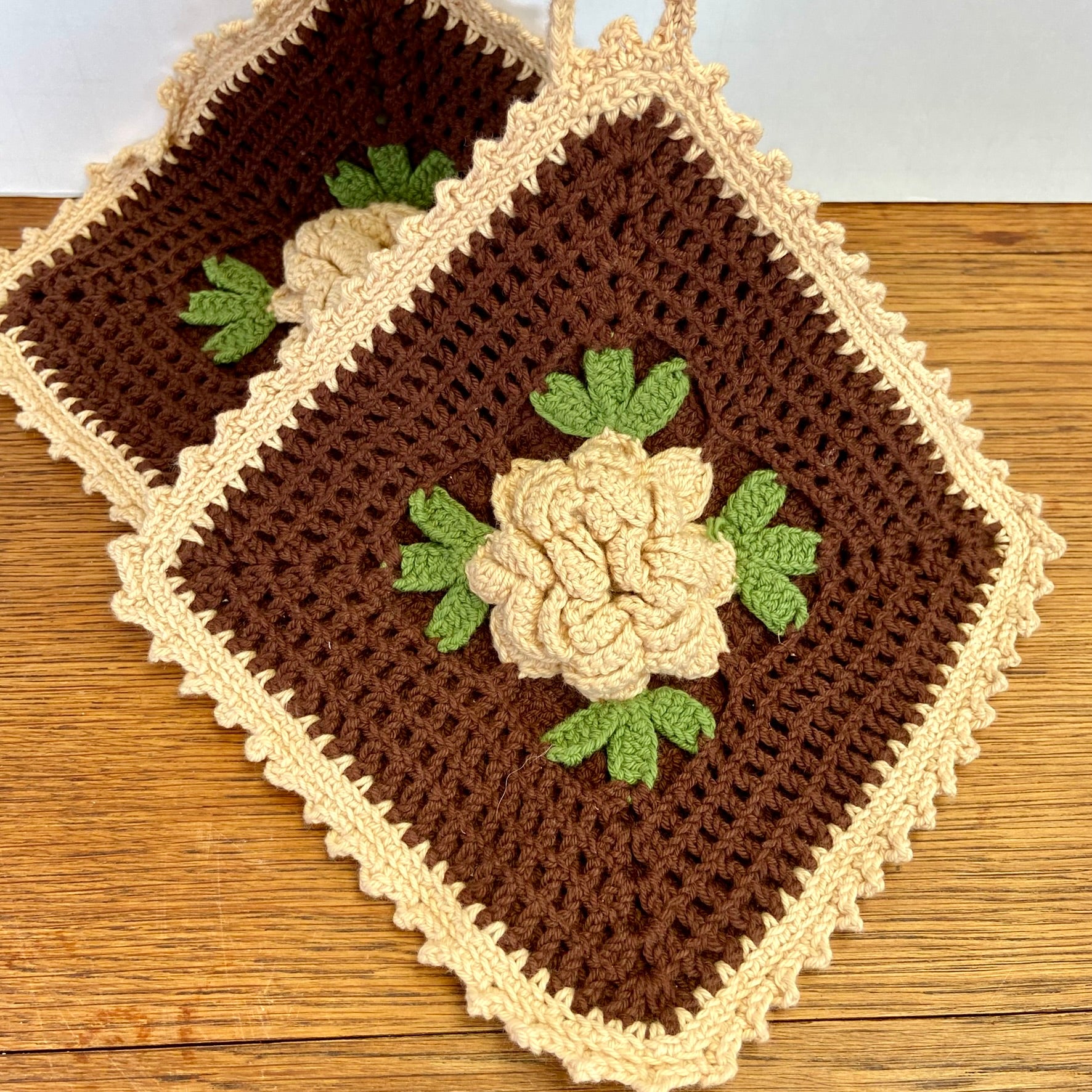- Mooie bloem in het midden in crème met groene blaadjes.