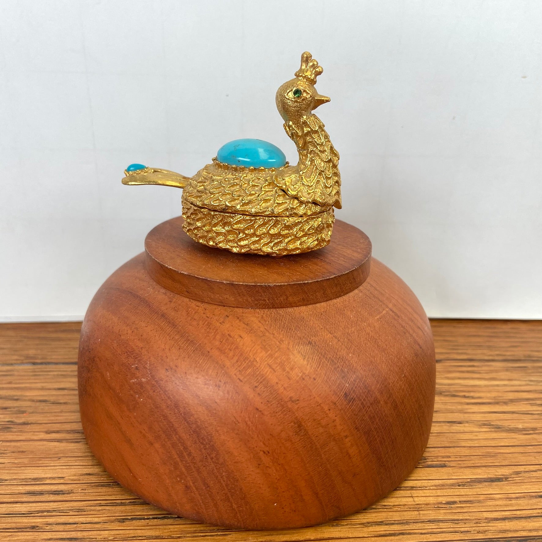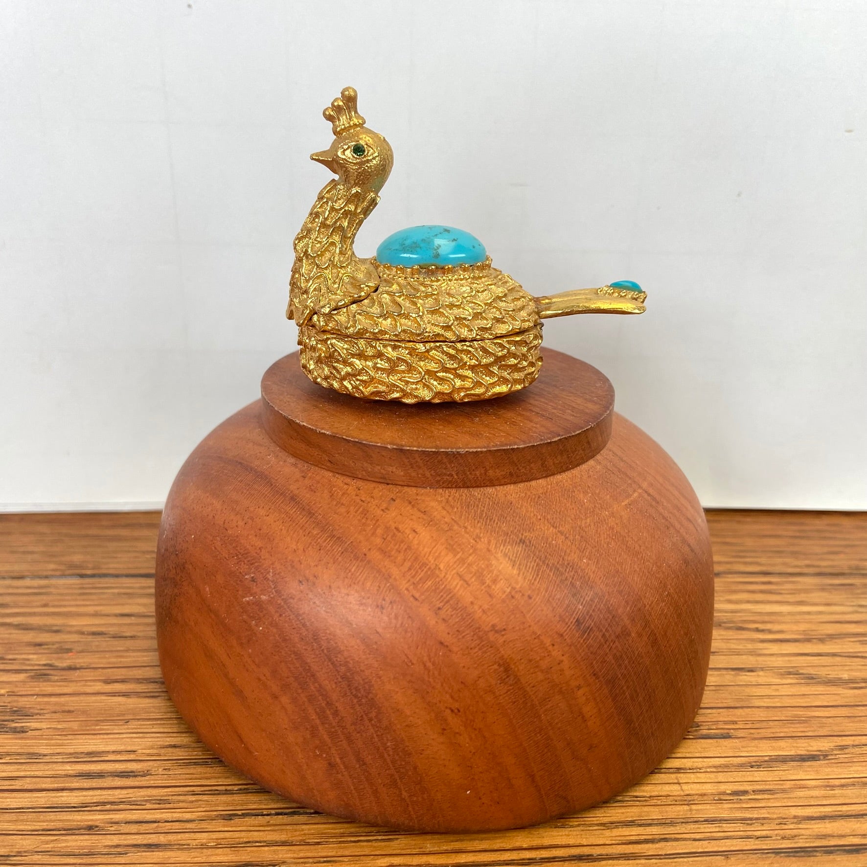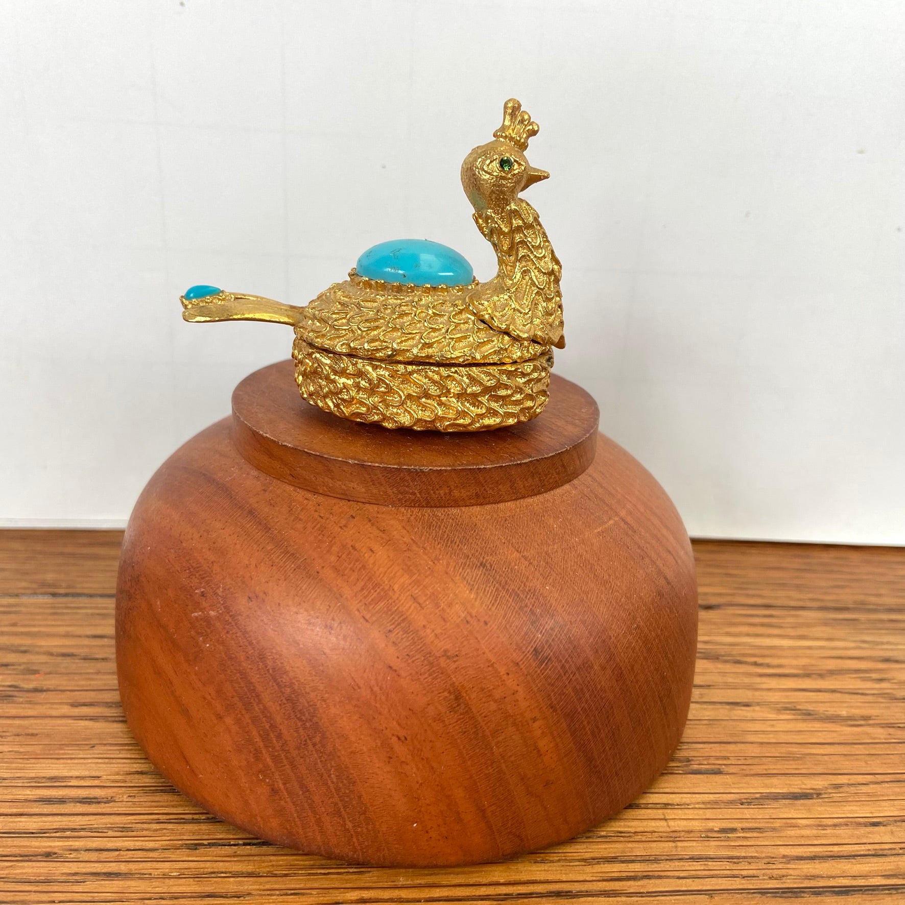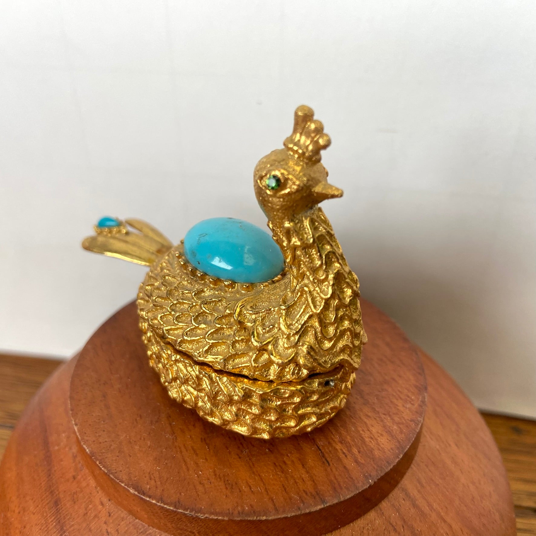 - Goudkleurig pillendoosje of snuisterijen doosje in de vorm van een pauw.