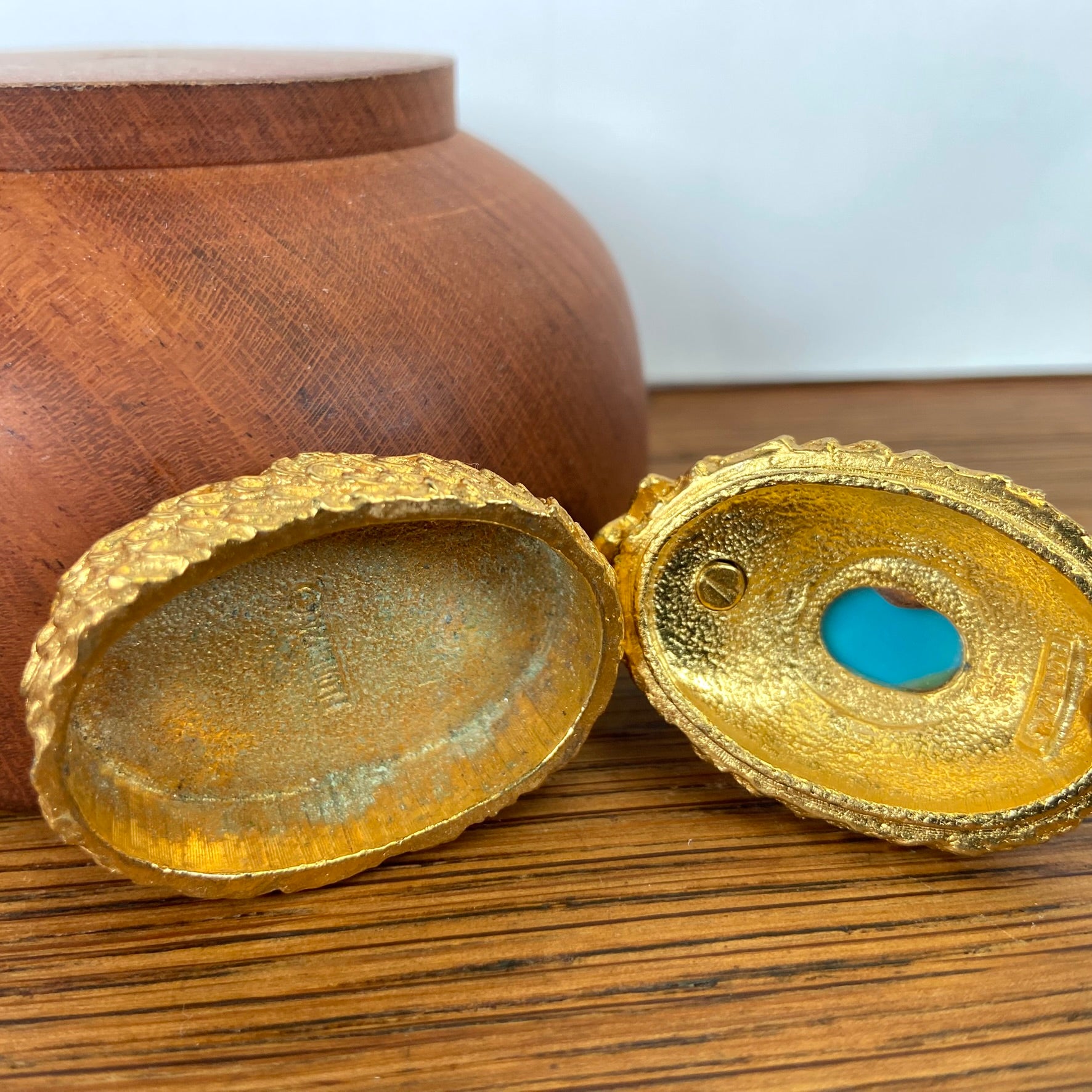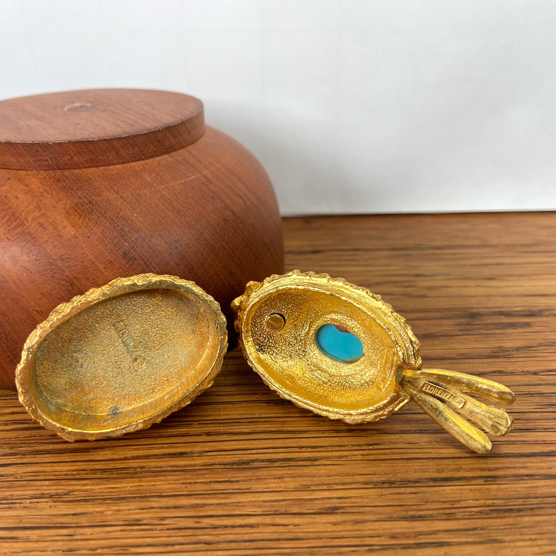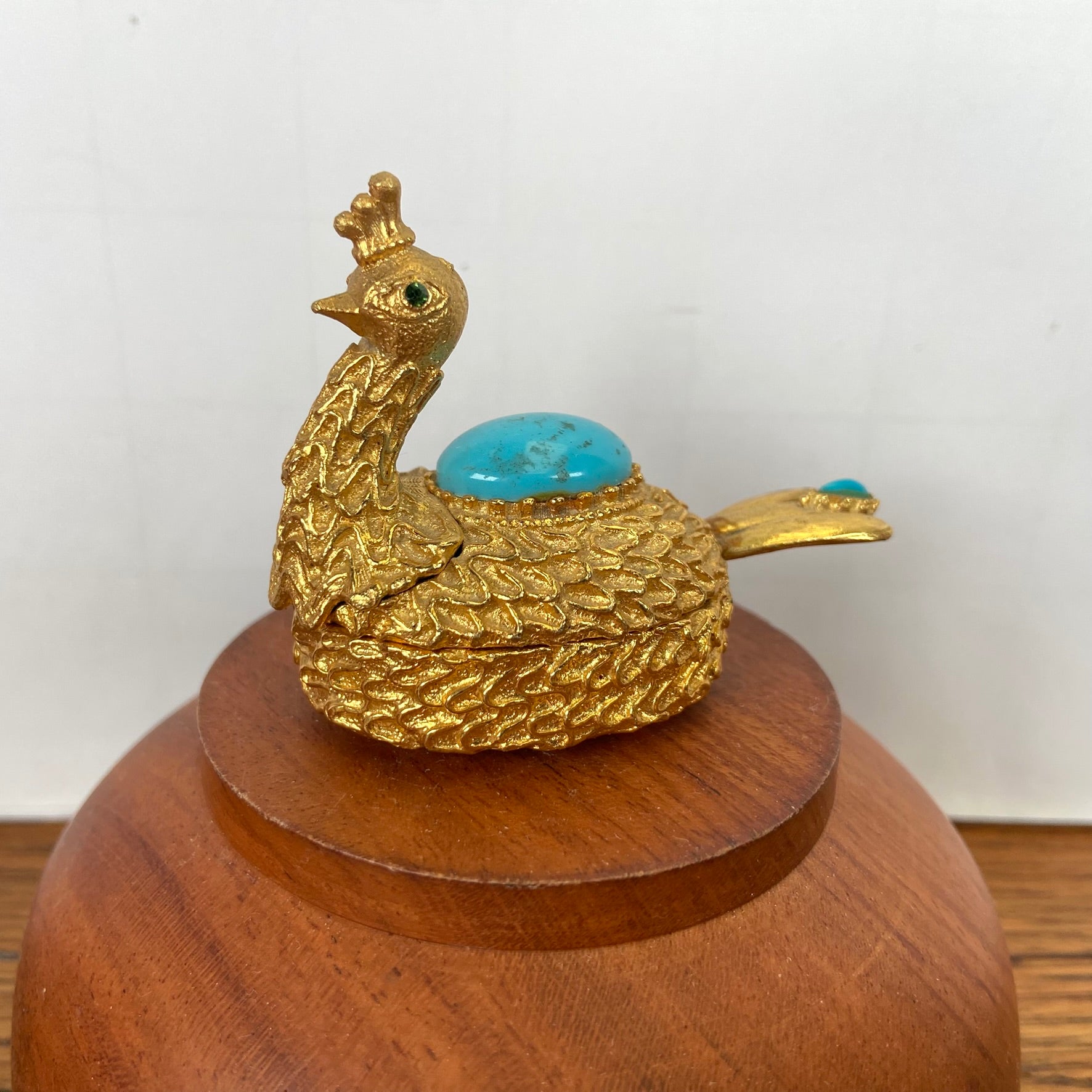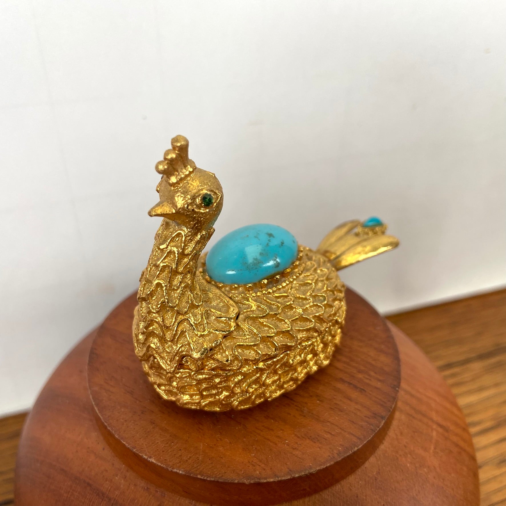 - Goudkleurig pillendoosje of snuisterijen doosje in de vorm van een pauw.