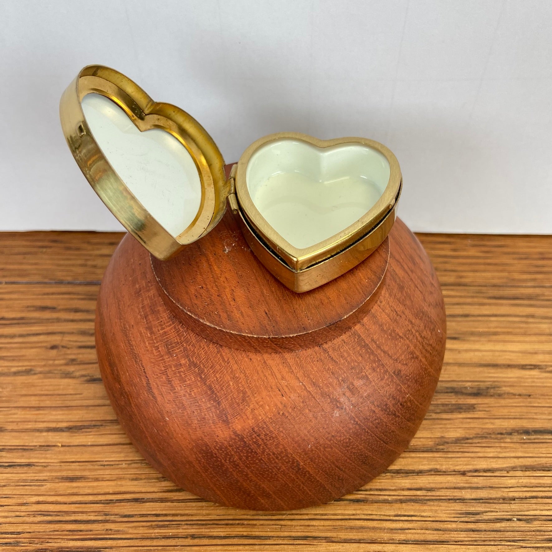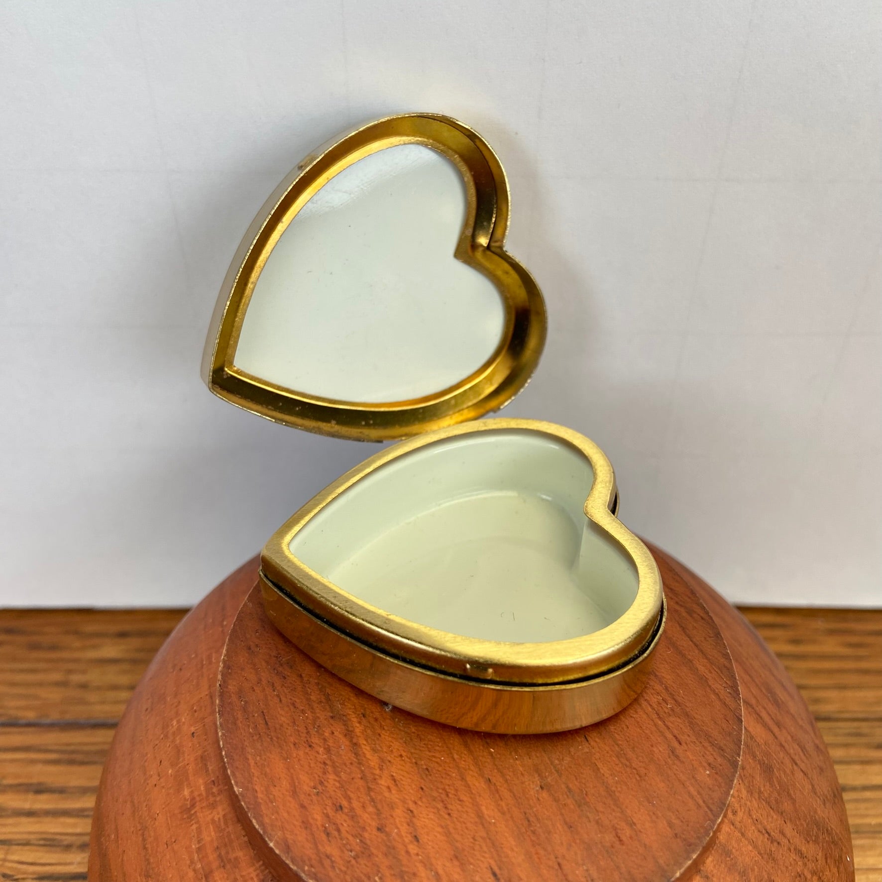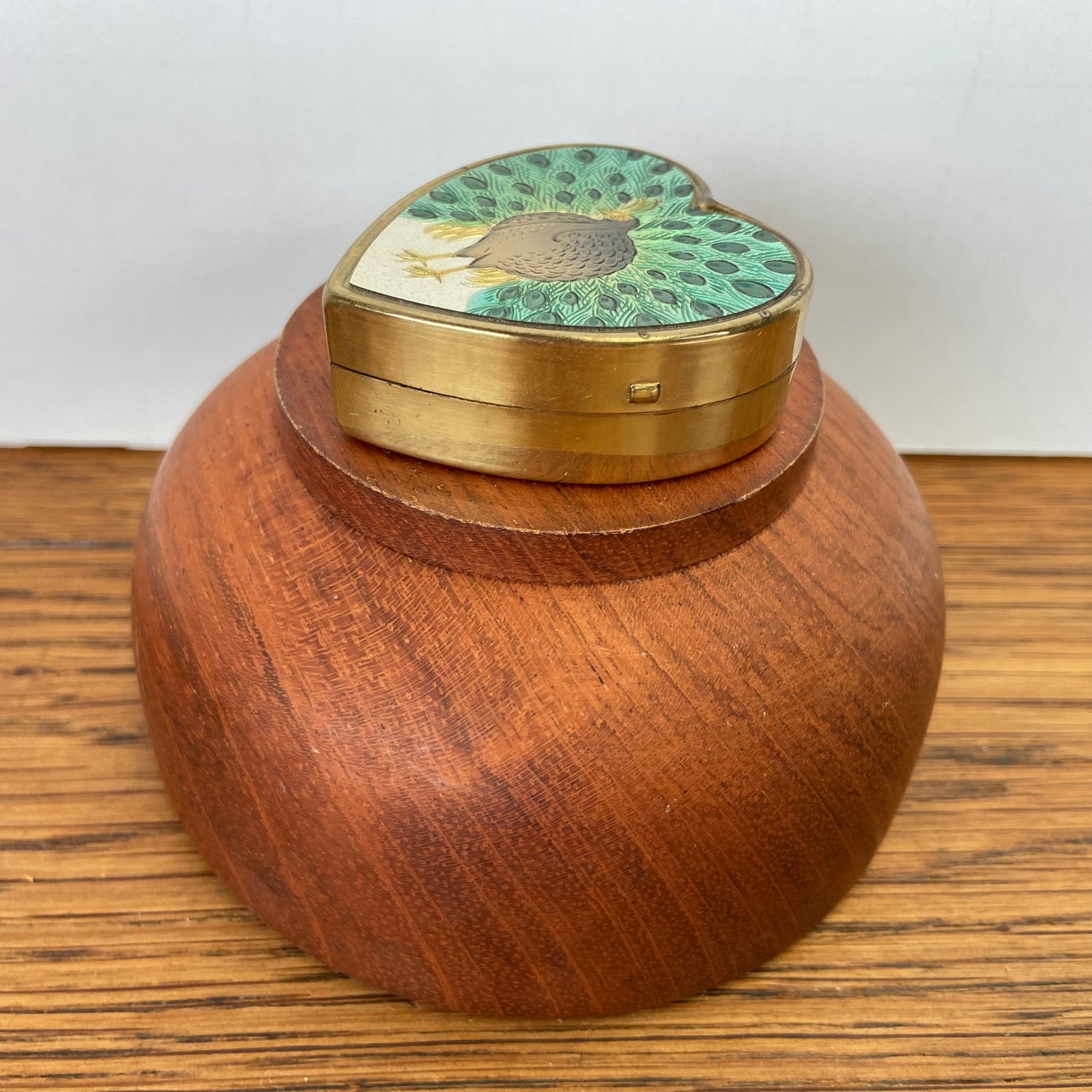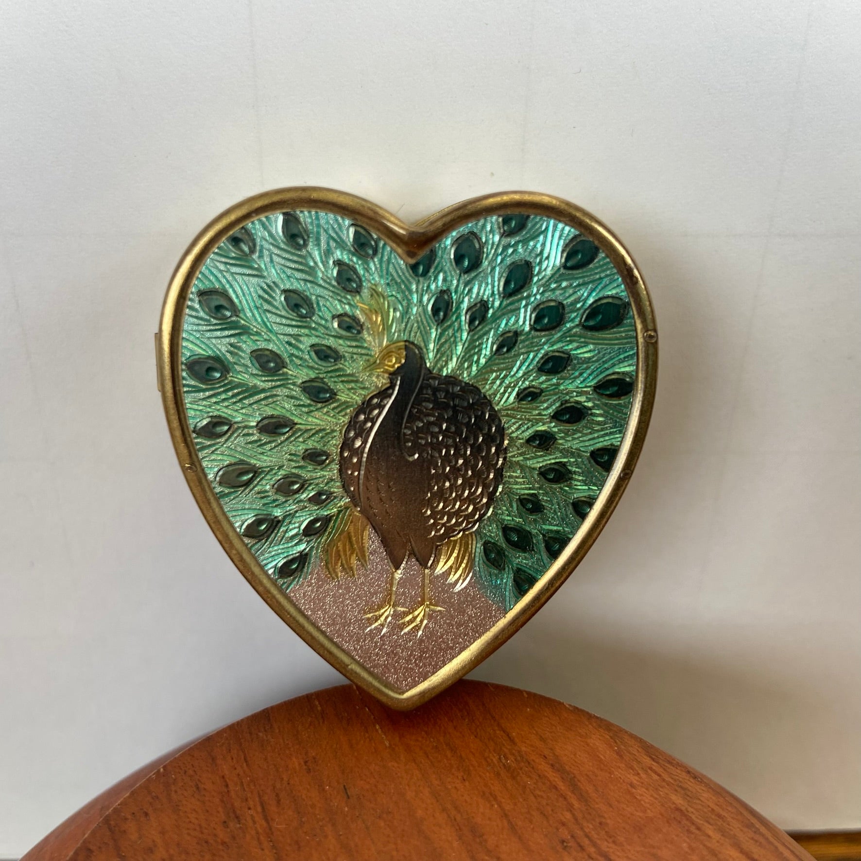 - Vintage pillendoosje in de vorm van een hart met een pauw.