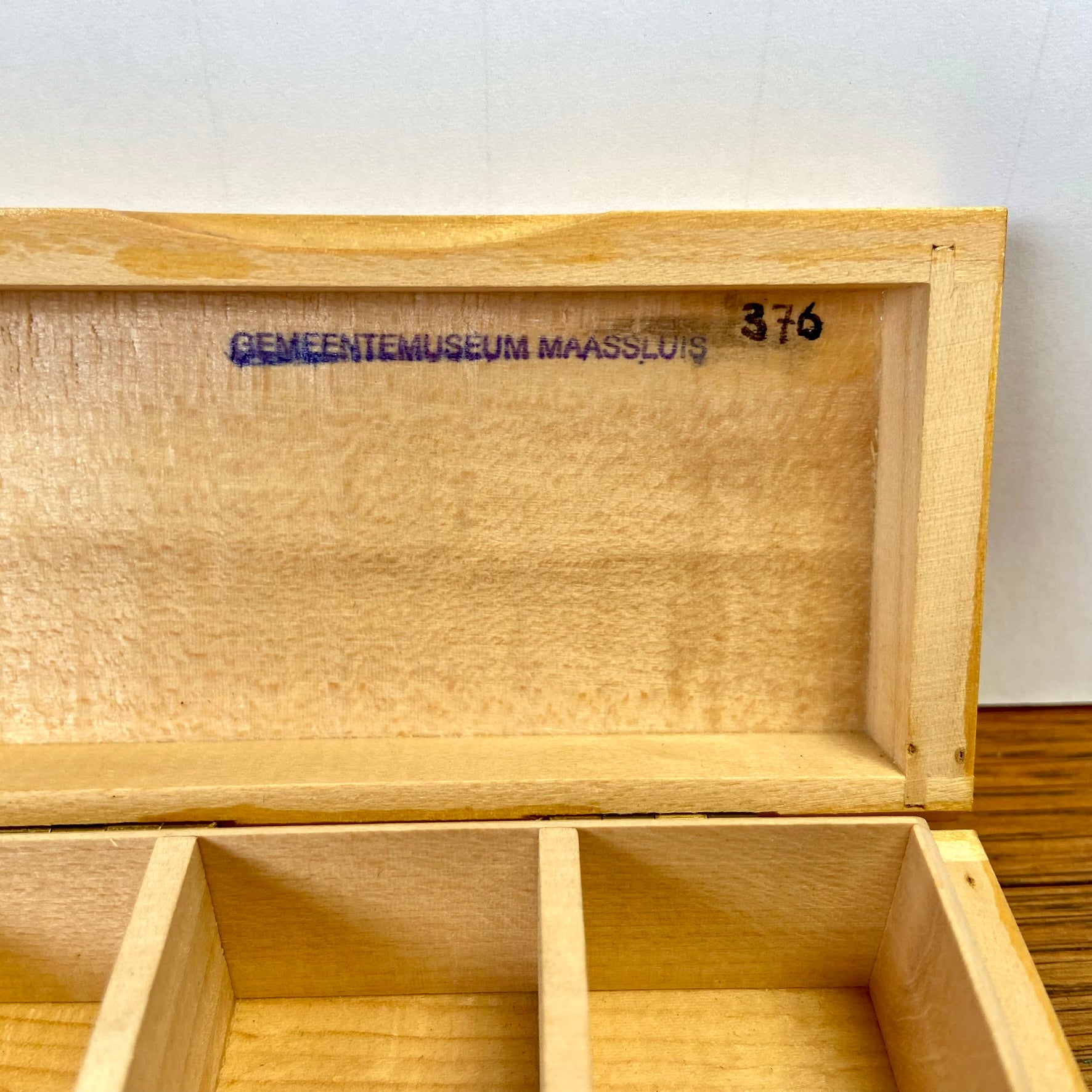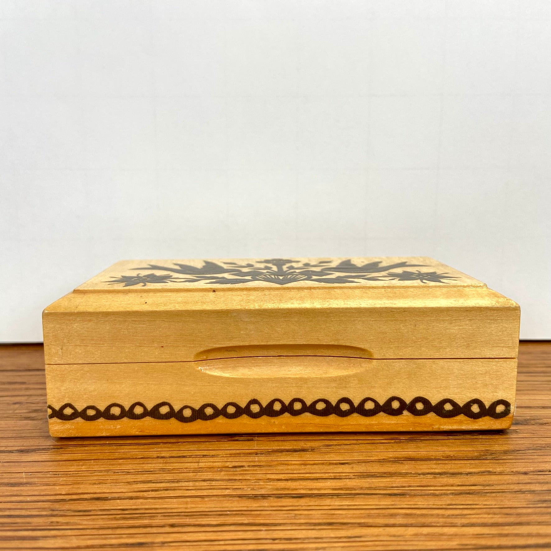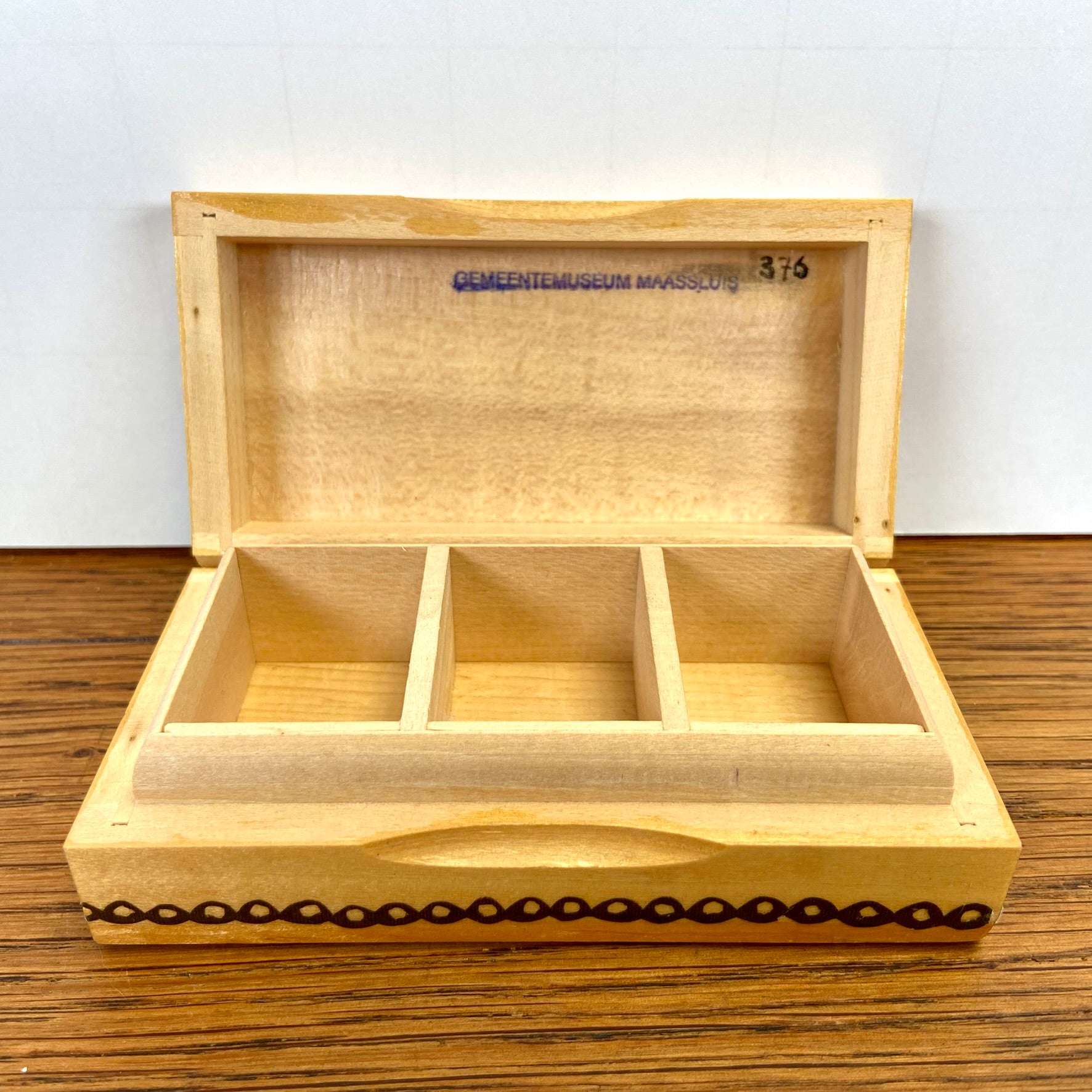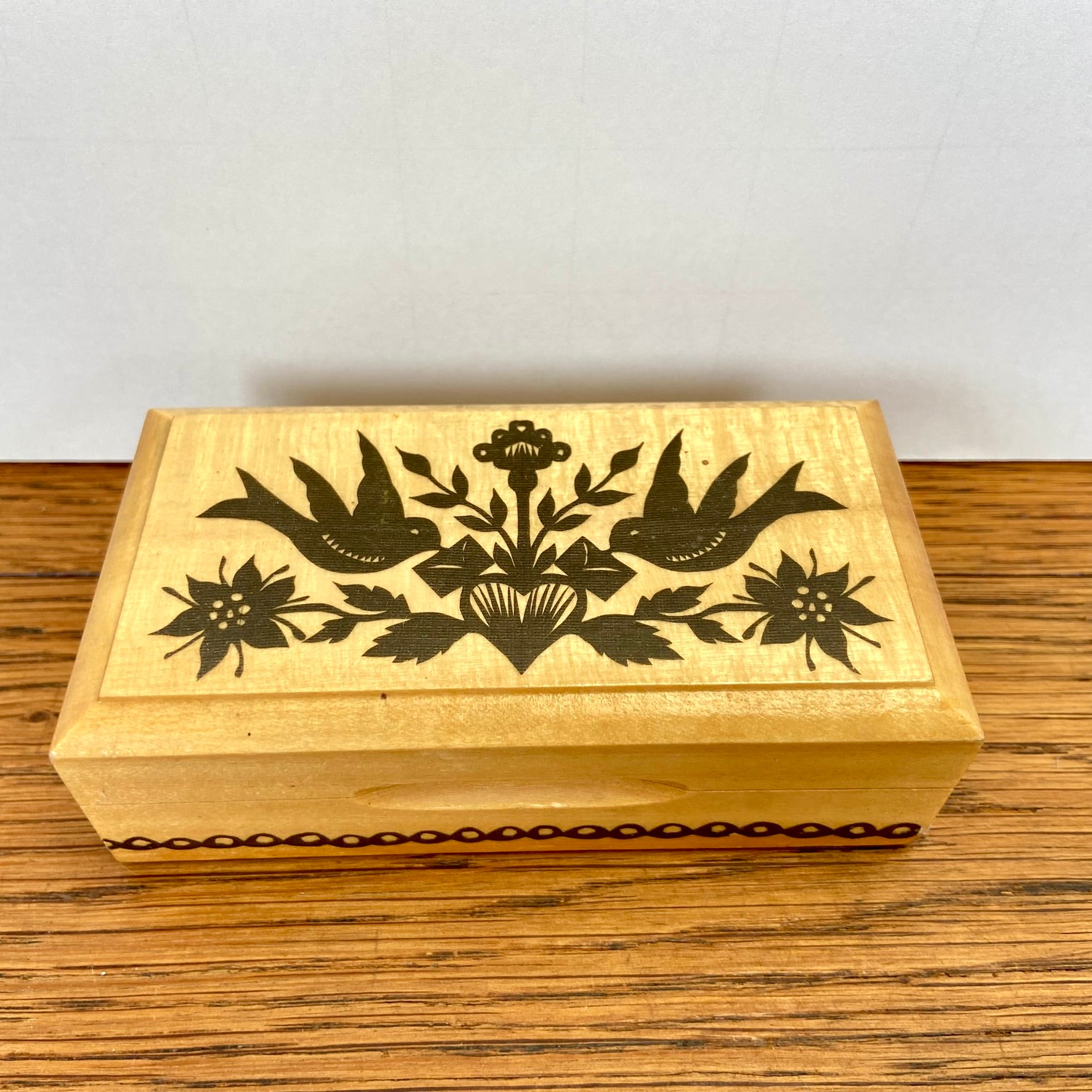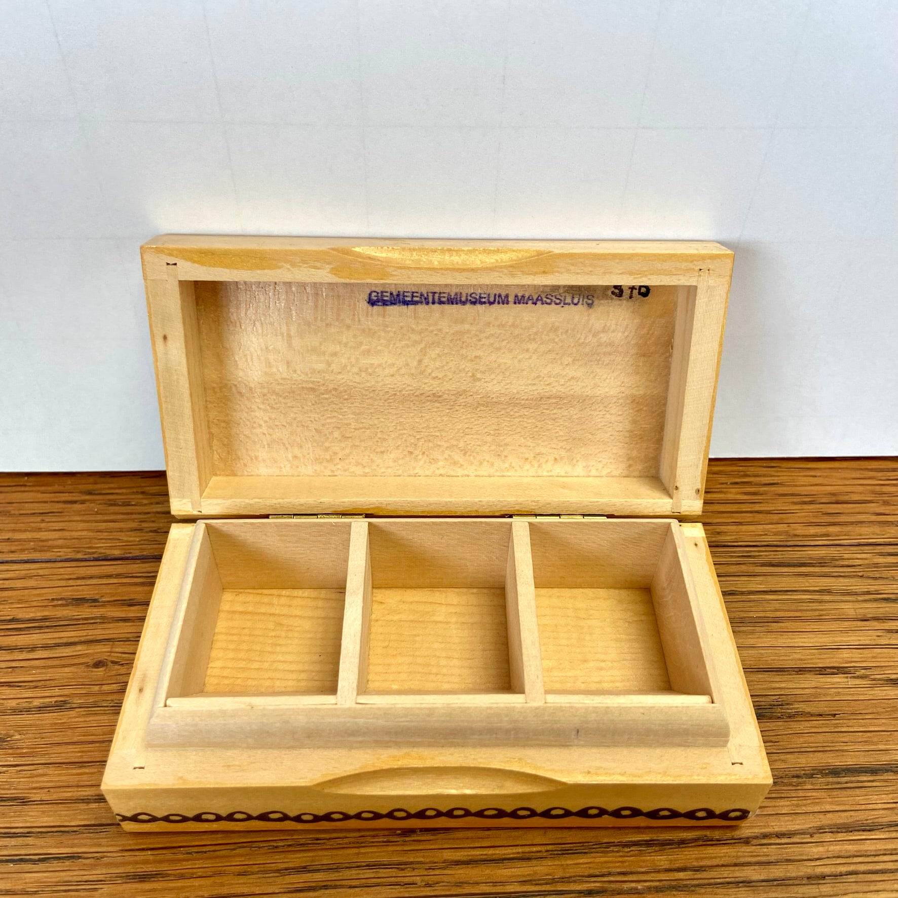 - Houten postzegel doosje met vogeltjes op de bovenkant.
