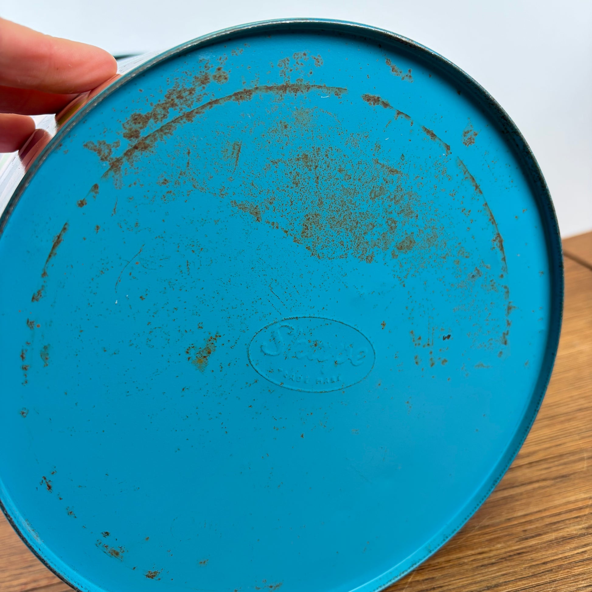- Deze vrolijke prullenbak heeft wel wat gebruikssporen, en roestig van binnen