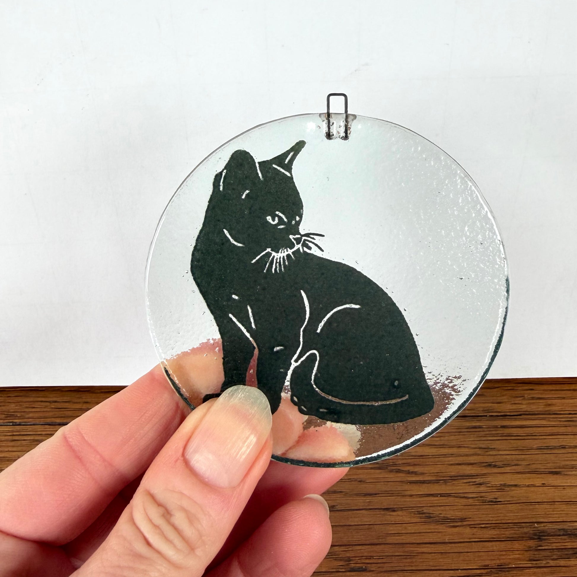 - Hoe leuk is deze kleine raamhanger van glas met een prachtige zwarte kat?