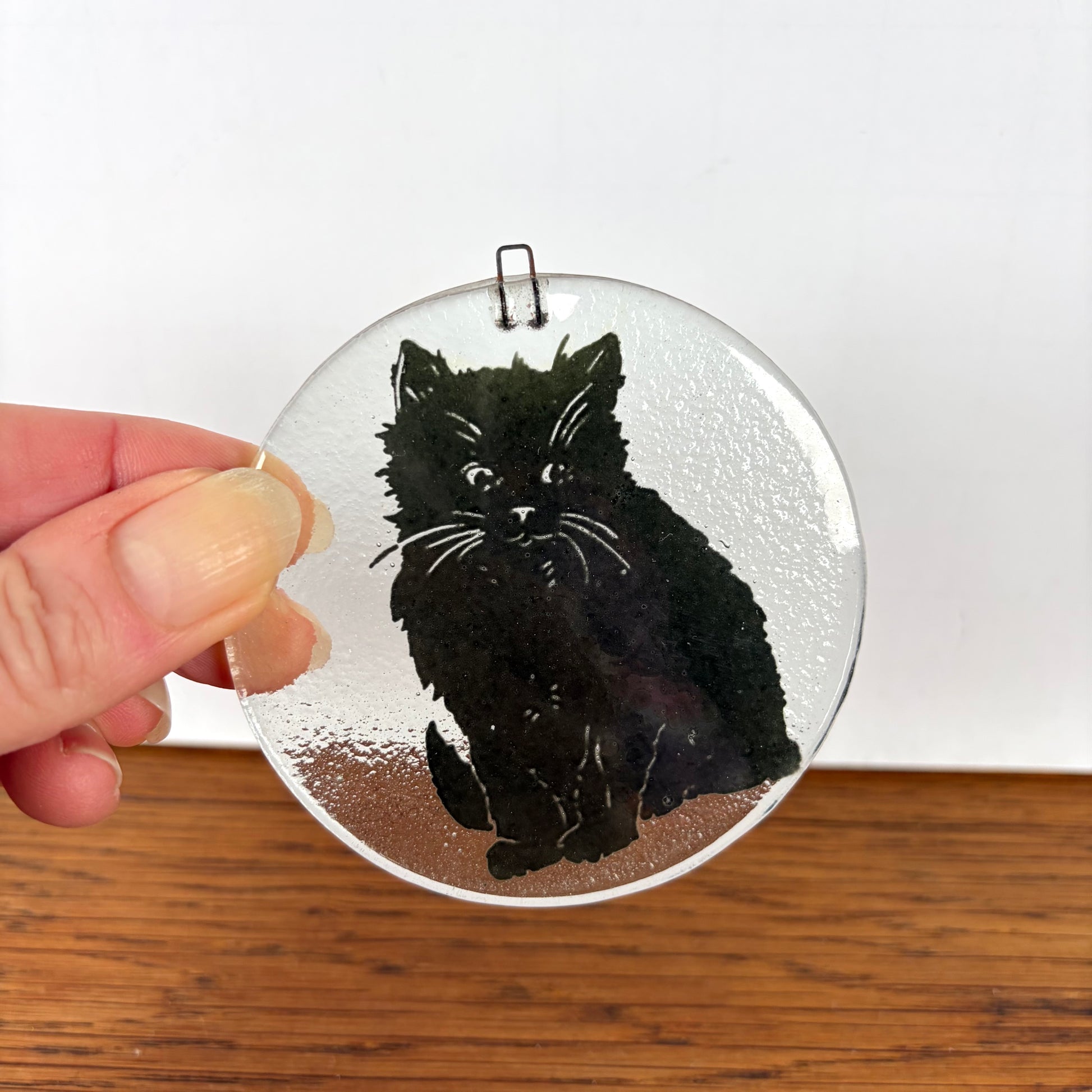 - Leuk kleine glazen raamhanger met een zwarte kat.