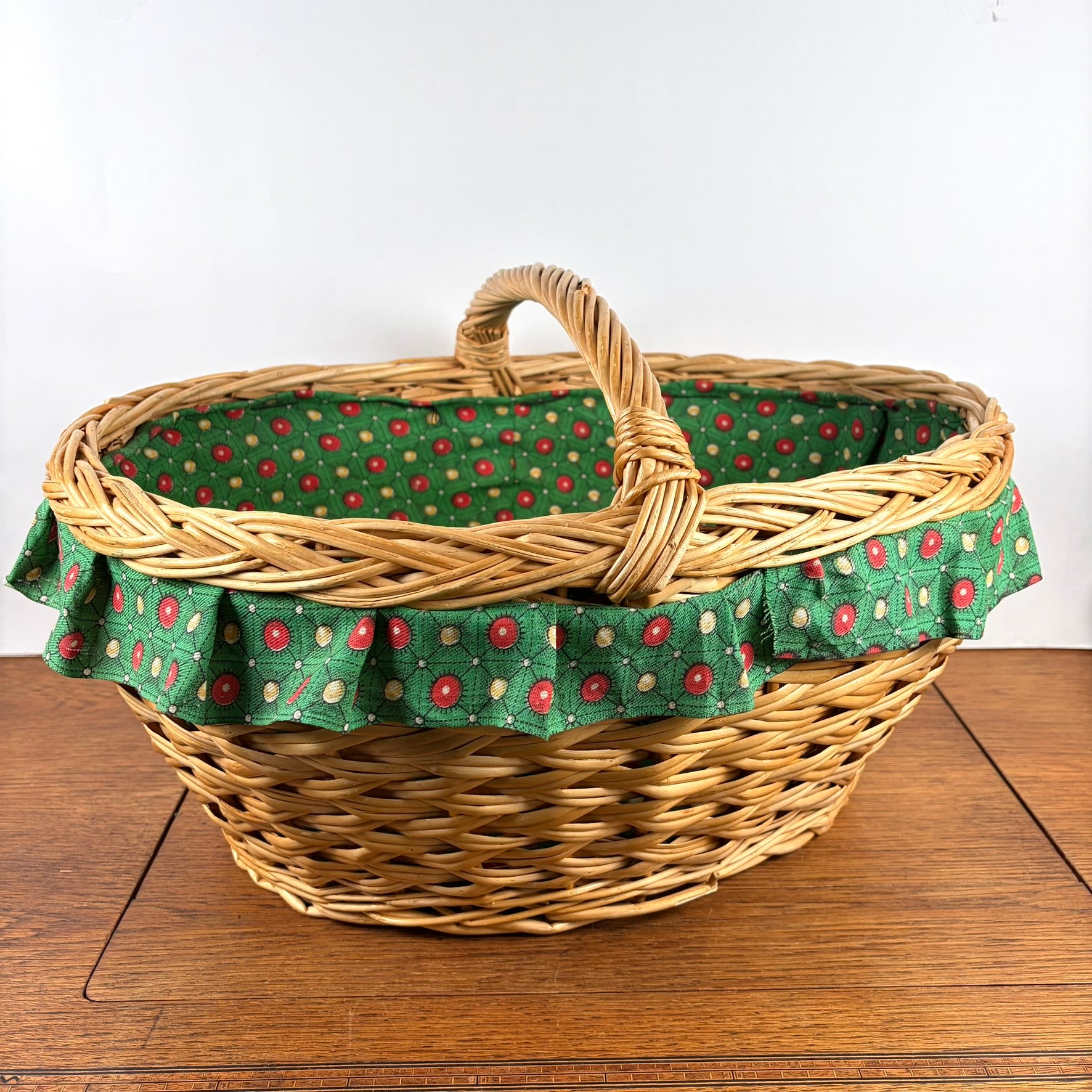 - Vintage rieten mand met hengsel.