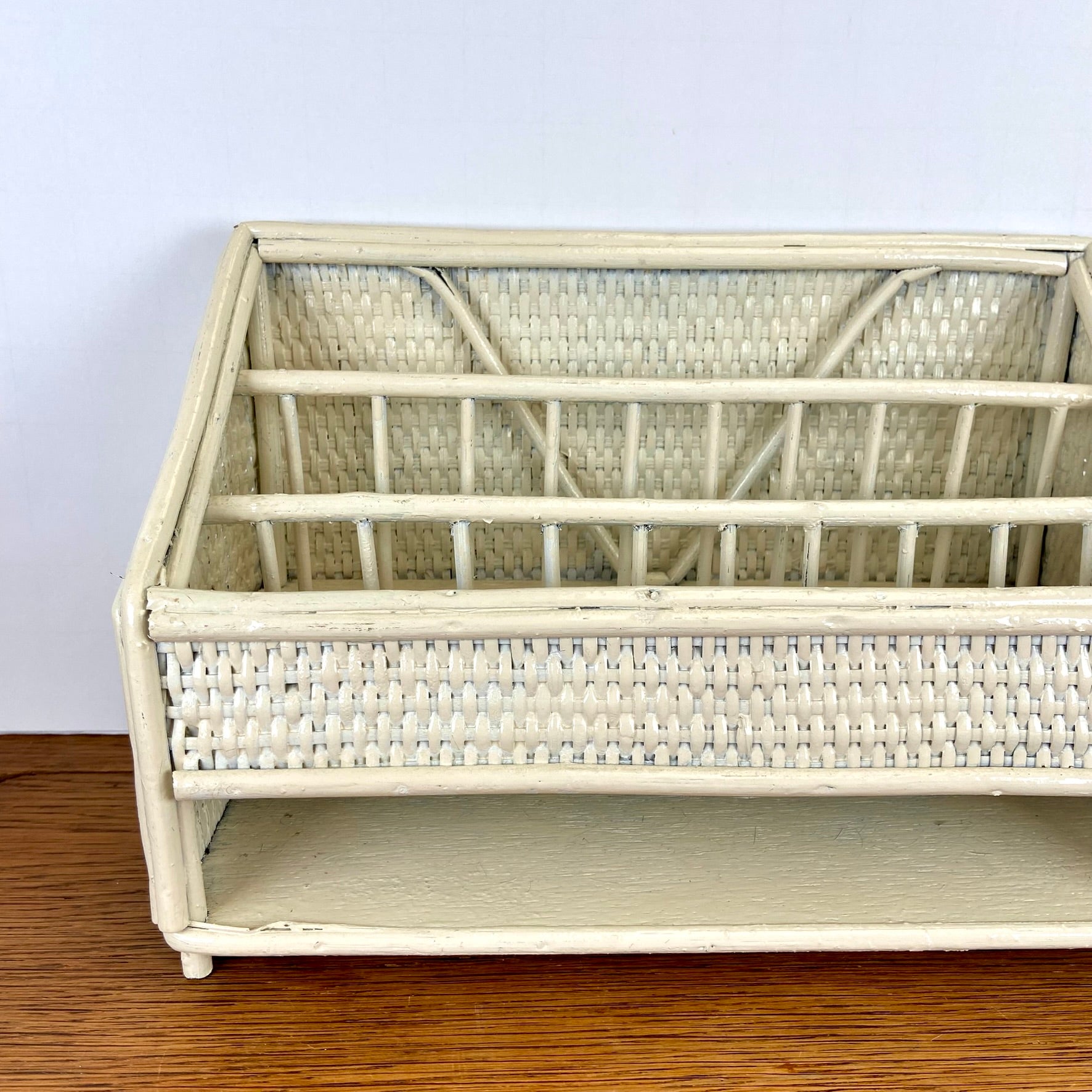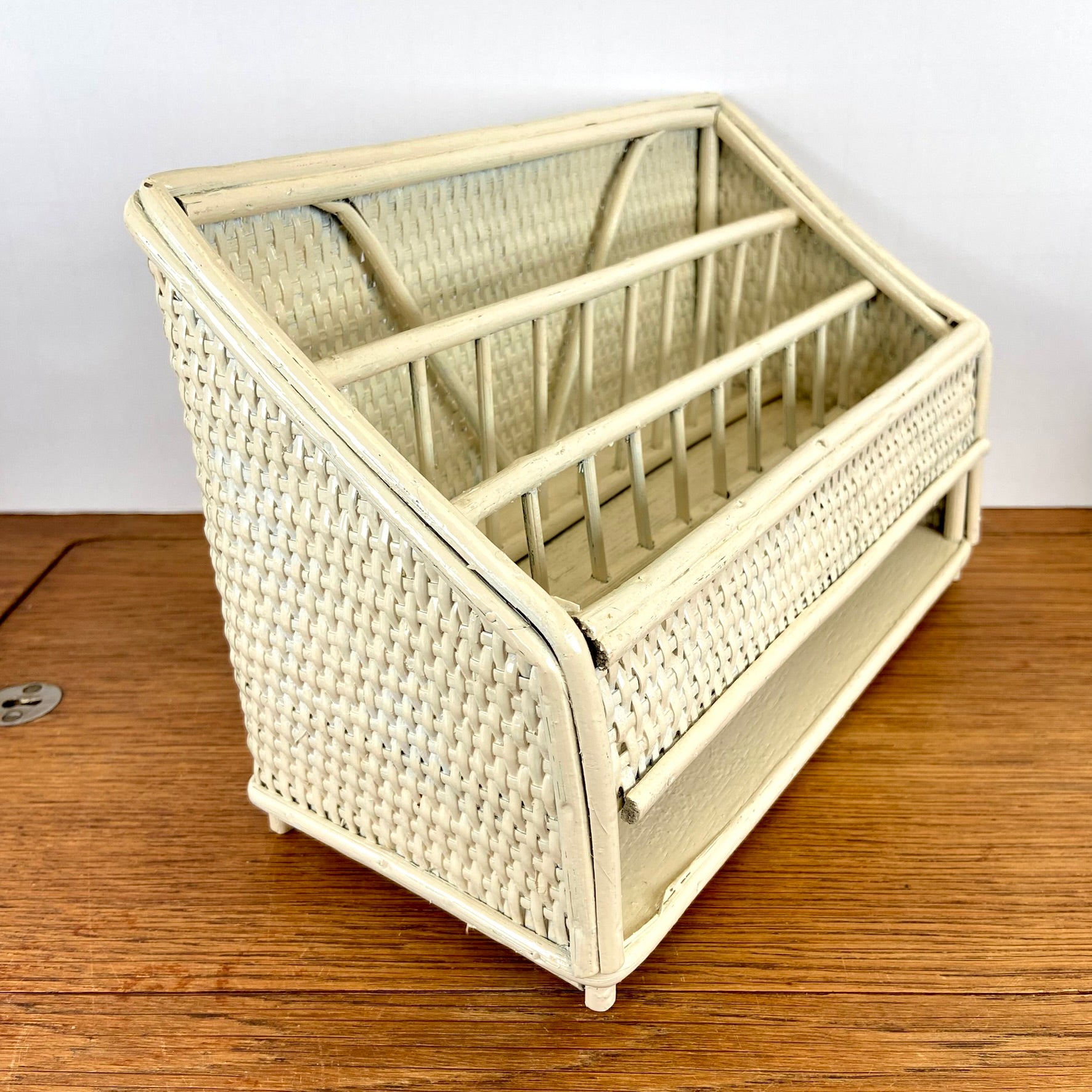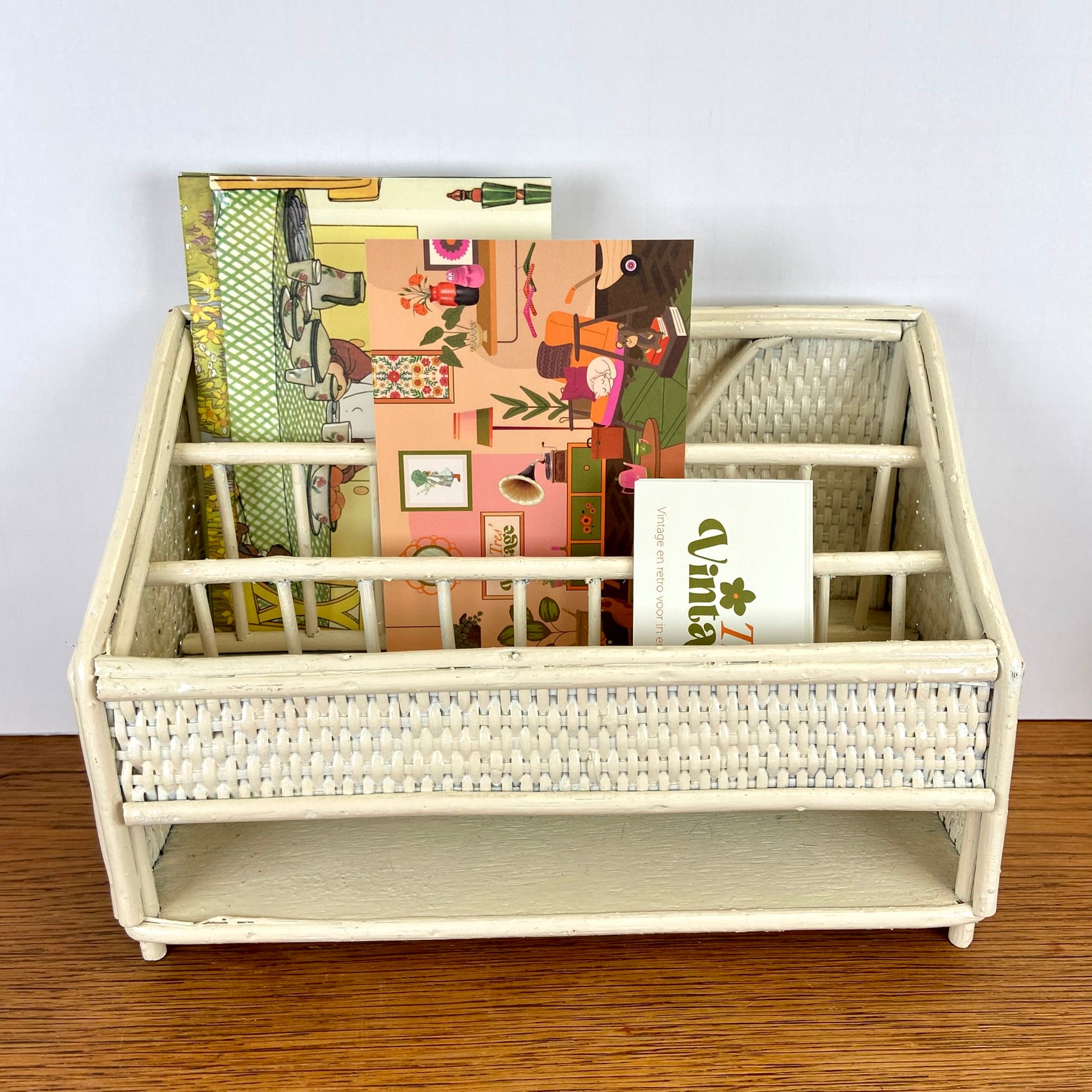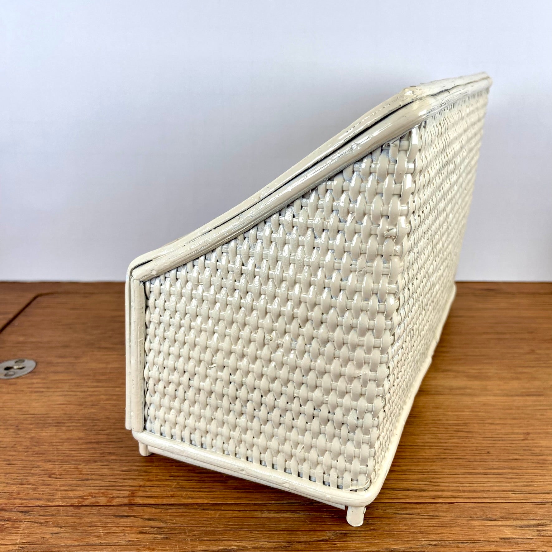- Vintage rieten of rotan opbergrekje.