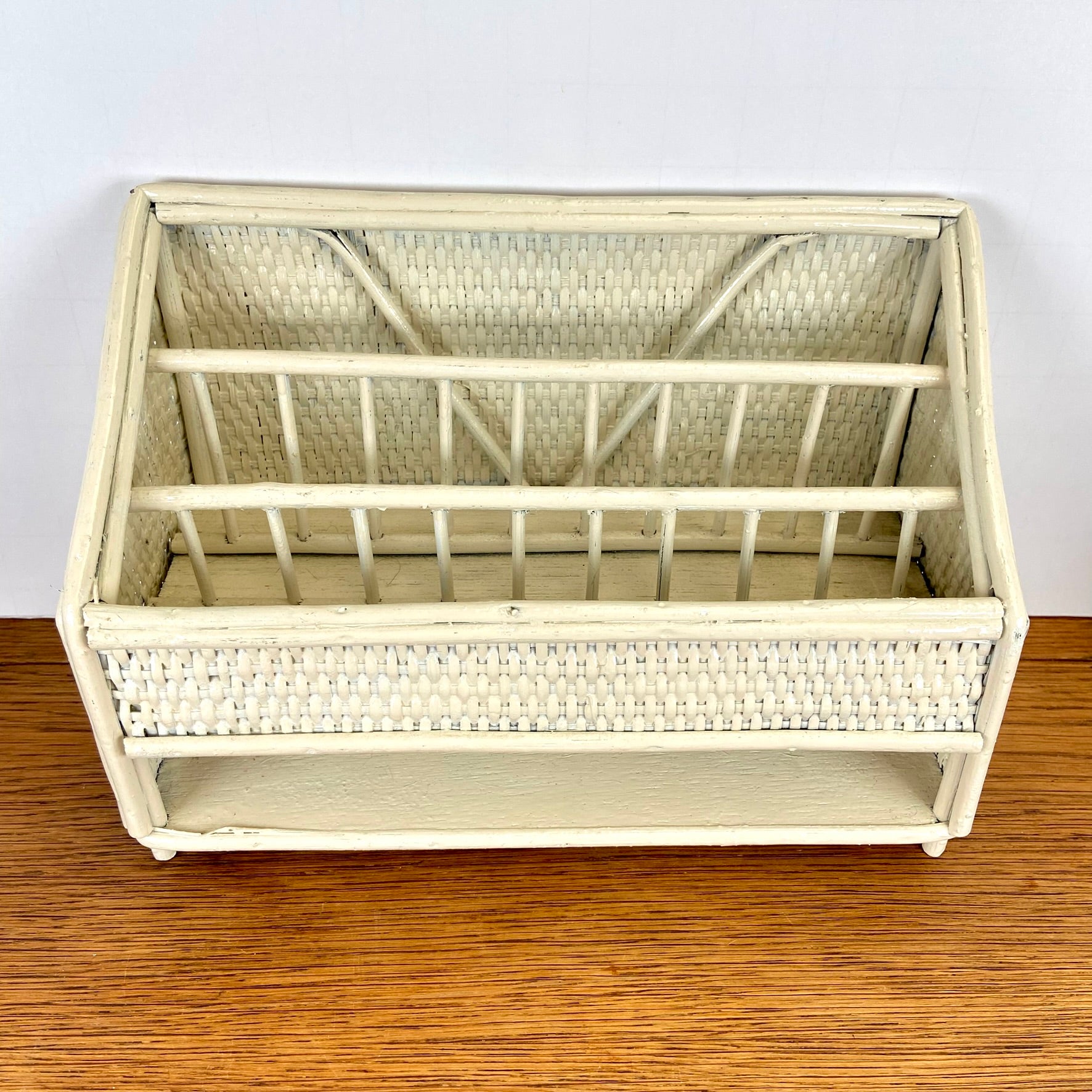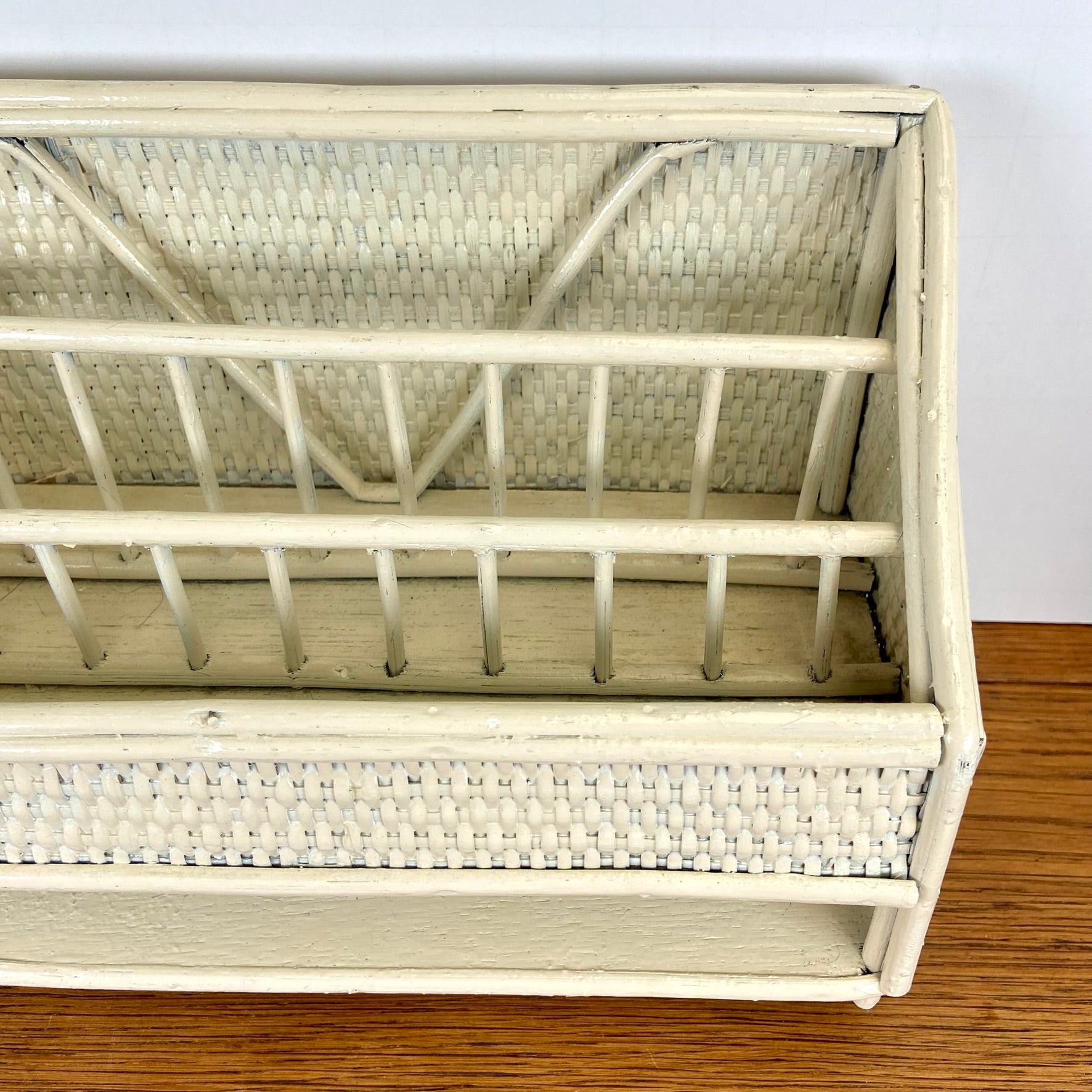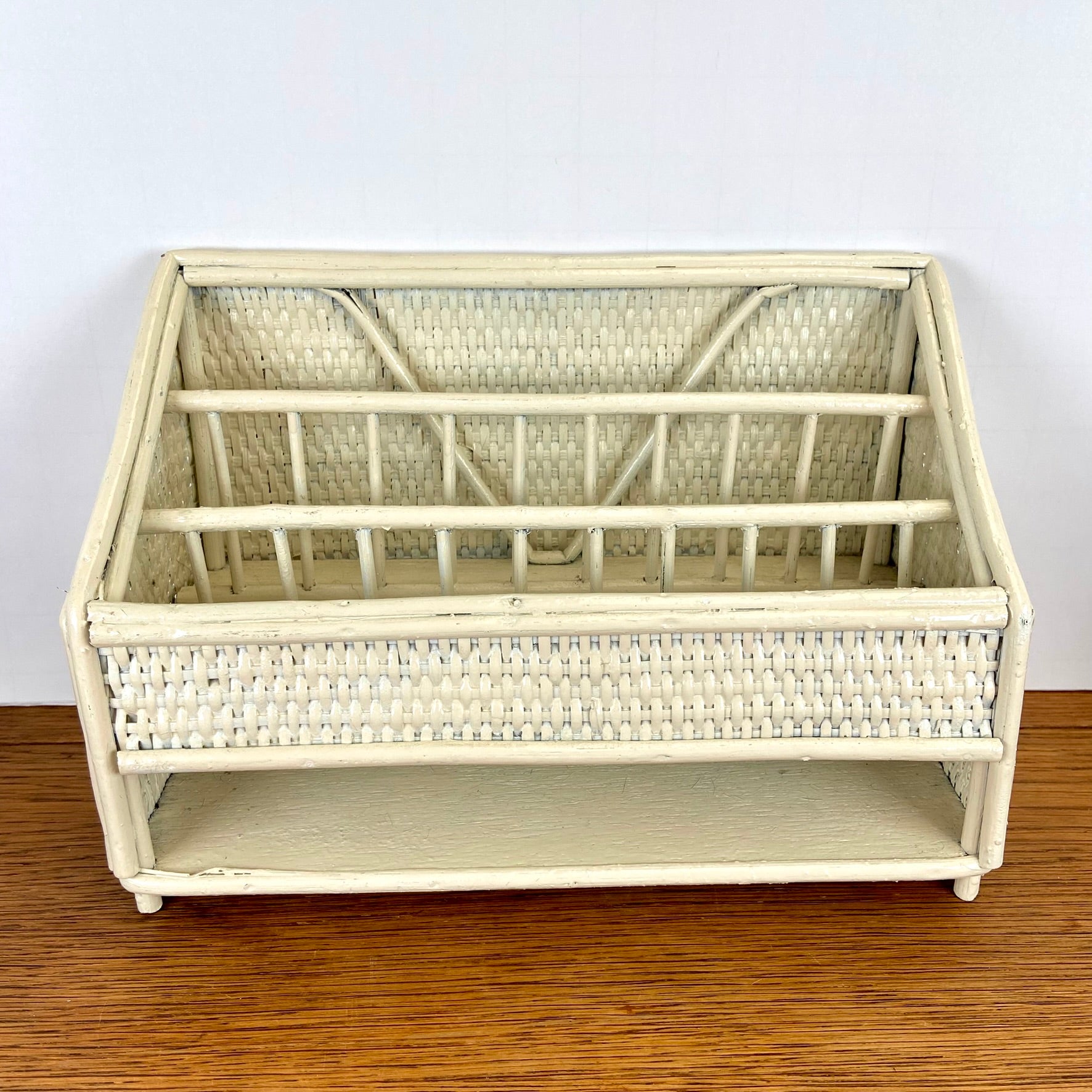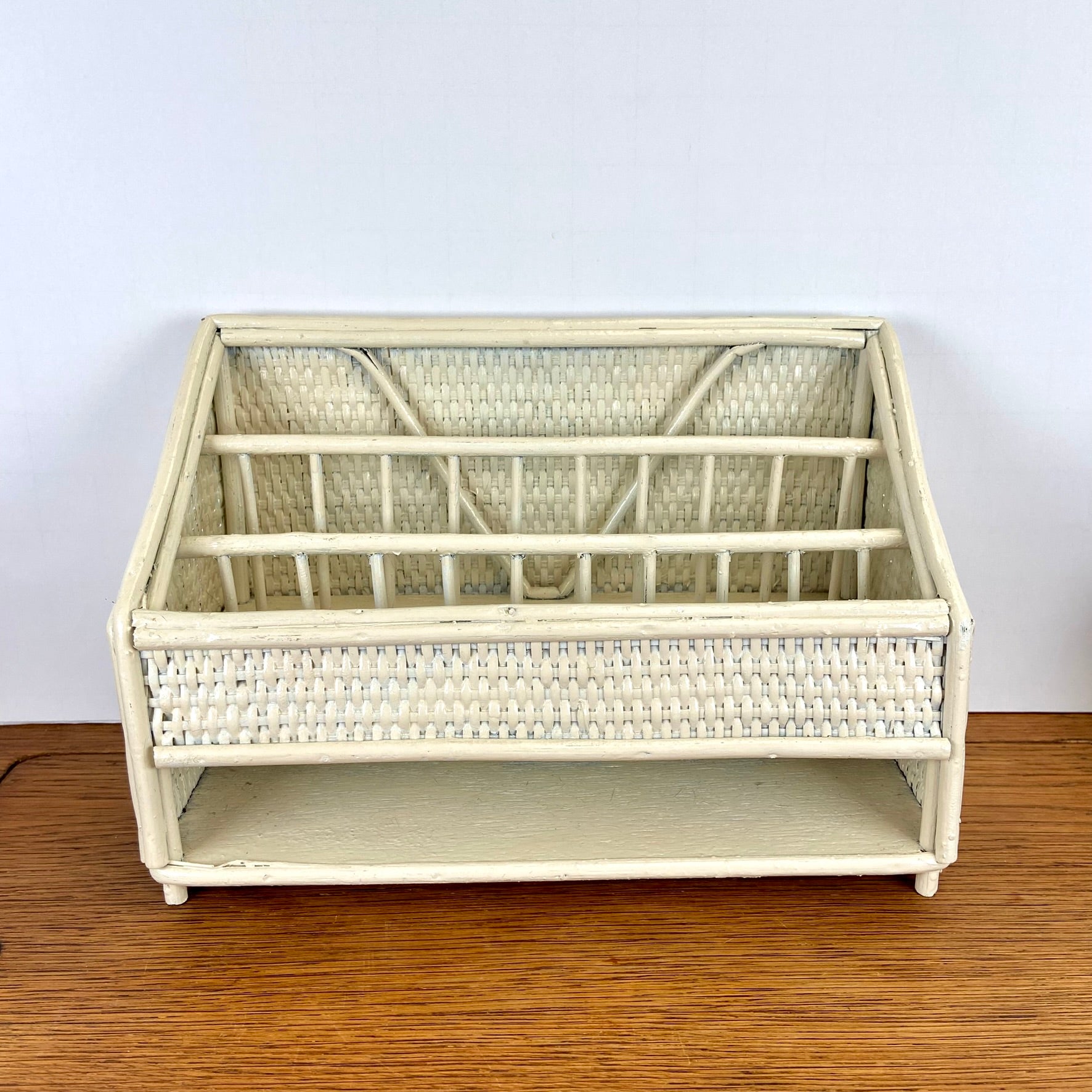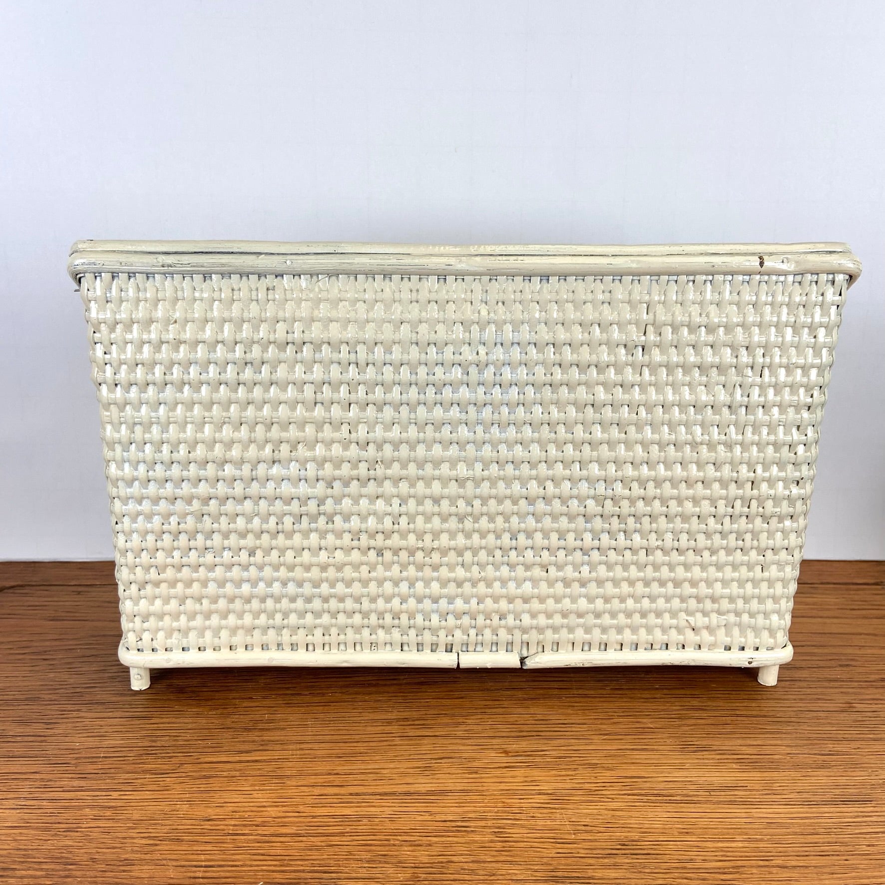 - Vintage rieten of rotan opbergrekje.