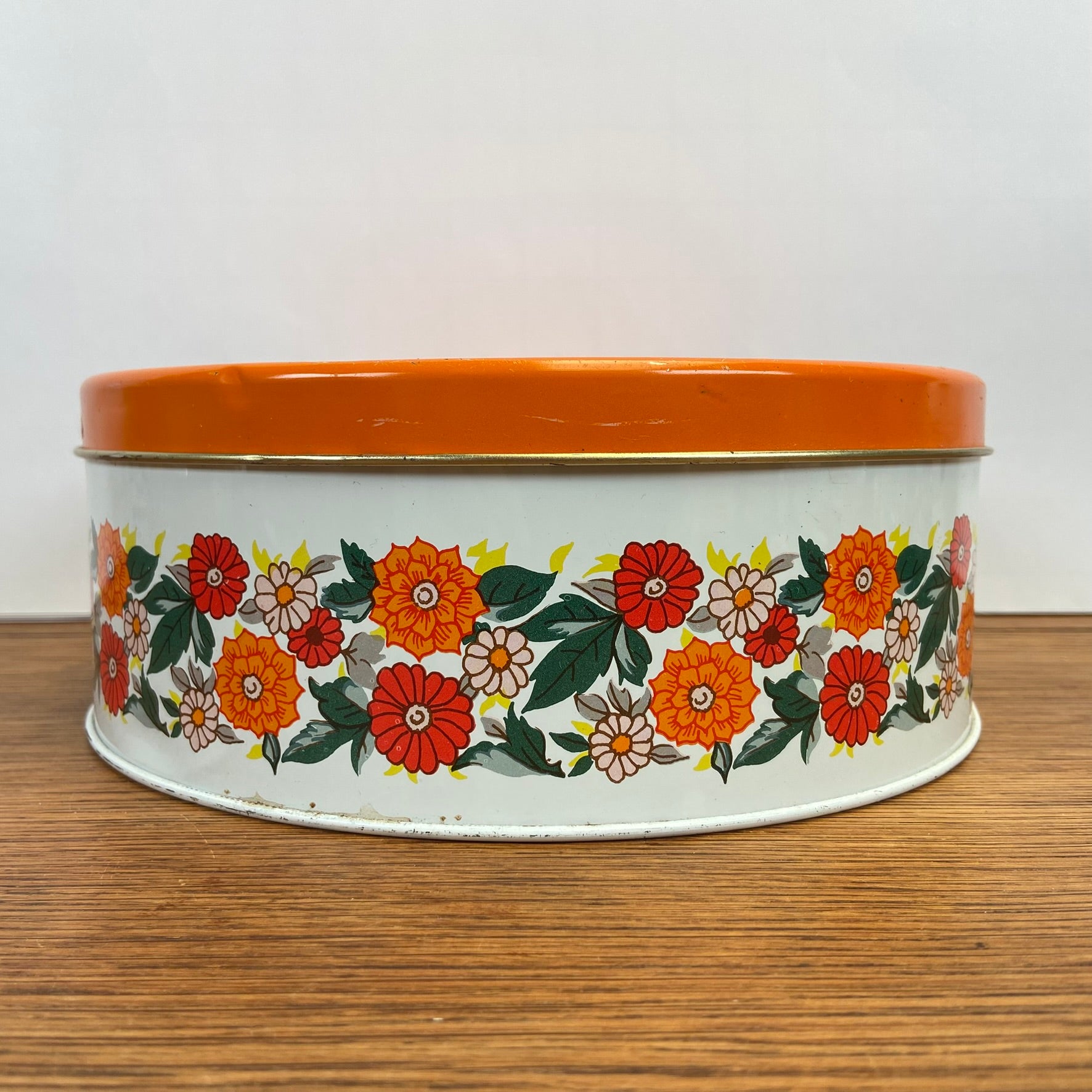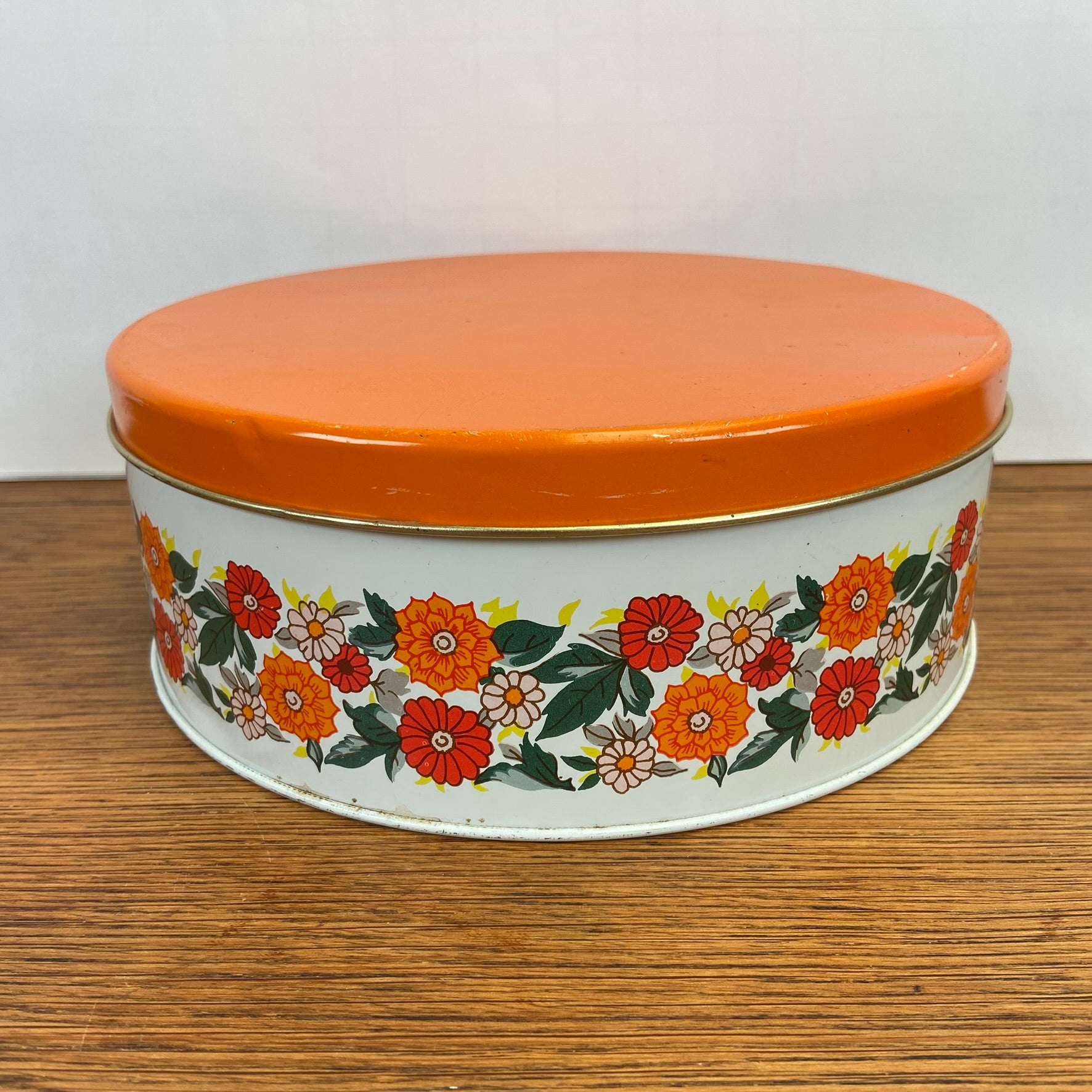 - Het blik heeft een oranje deksel, en heeft prachtige bloemen rondom.