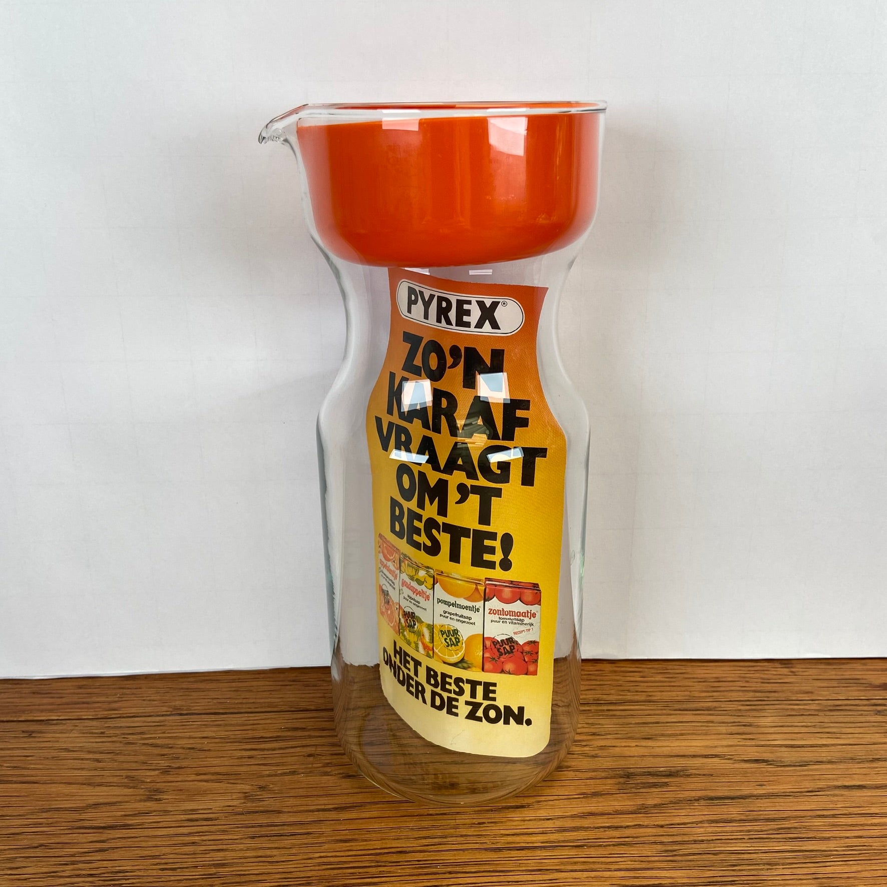 - Waterkan of sapkan van Pyrex met oranje dop.