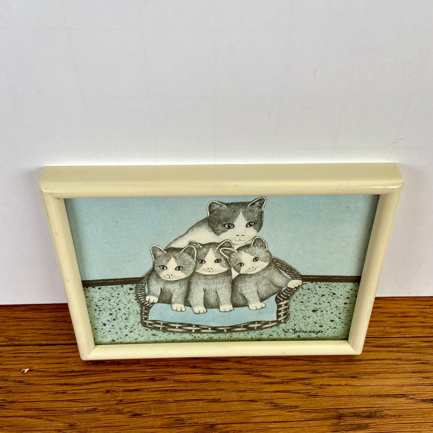 - Vintage schilderijtje van mama poes met haar kittens.